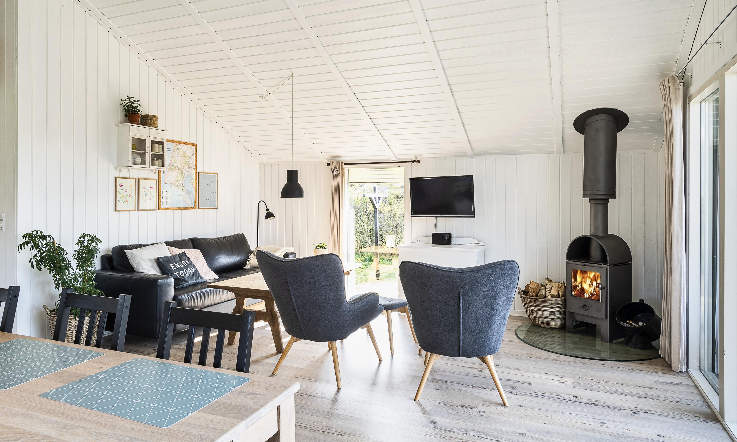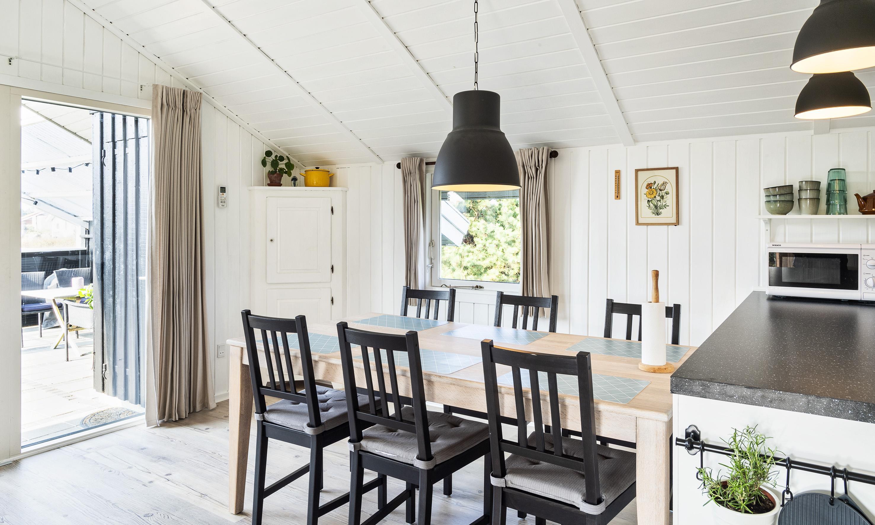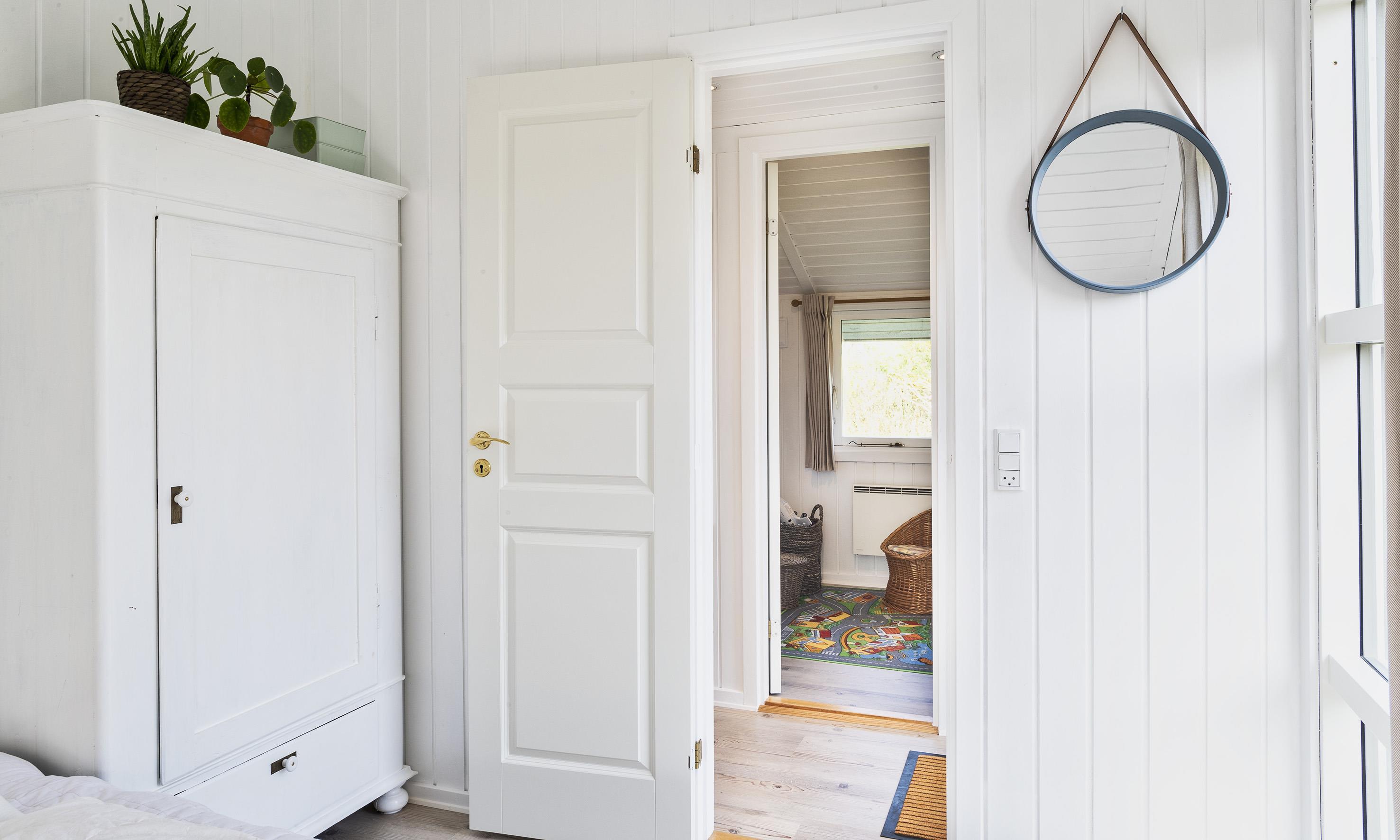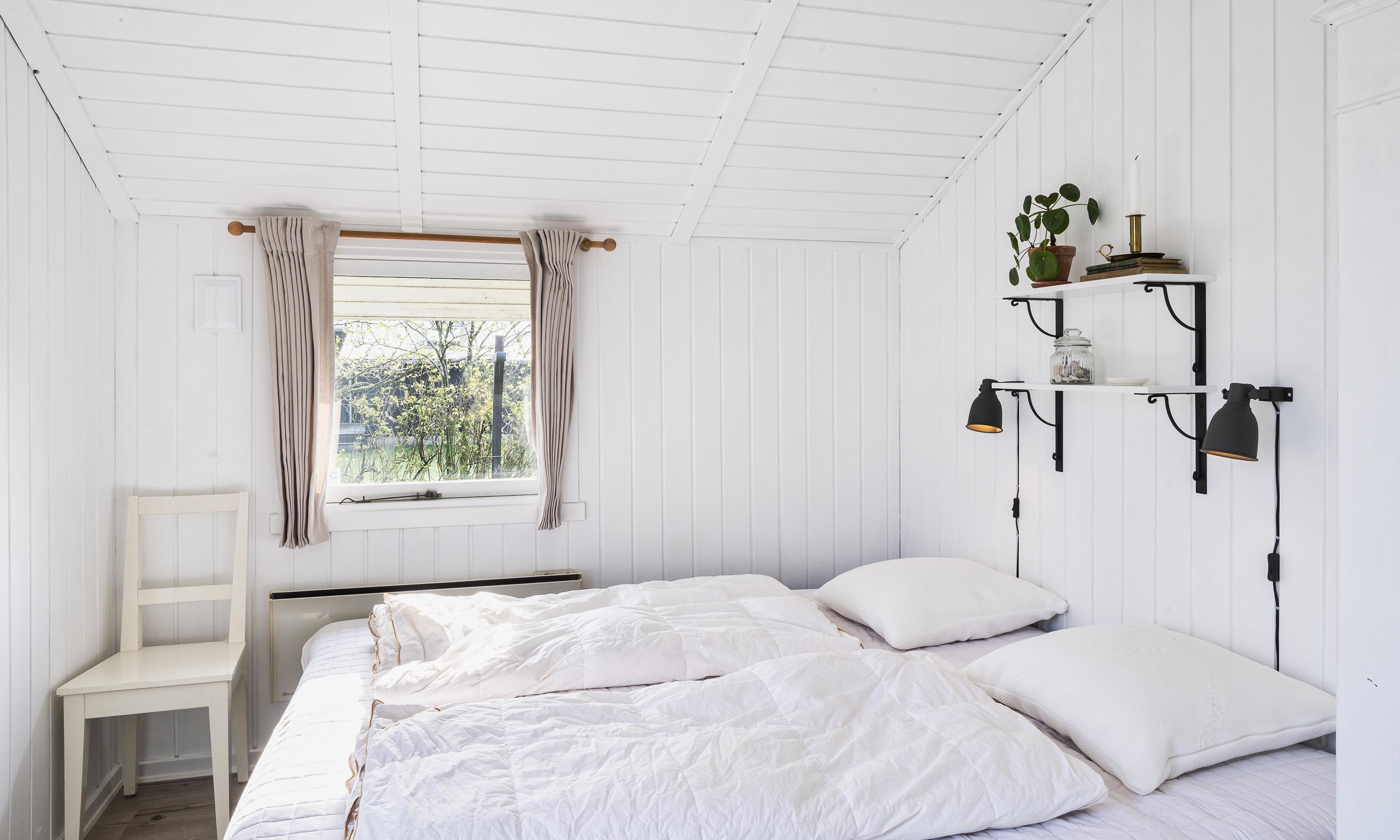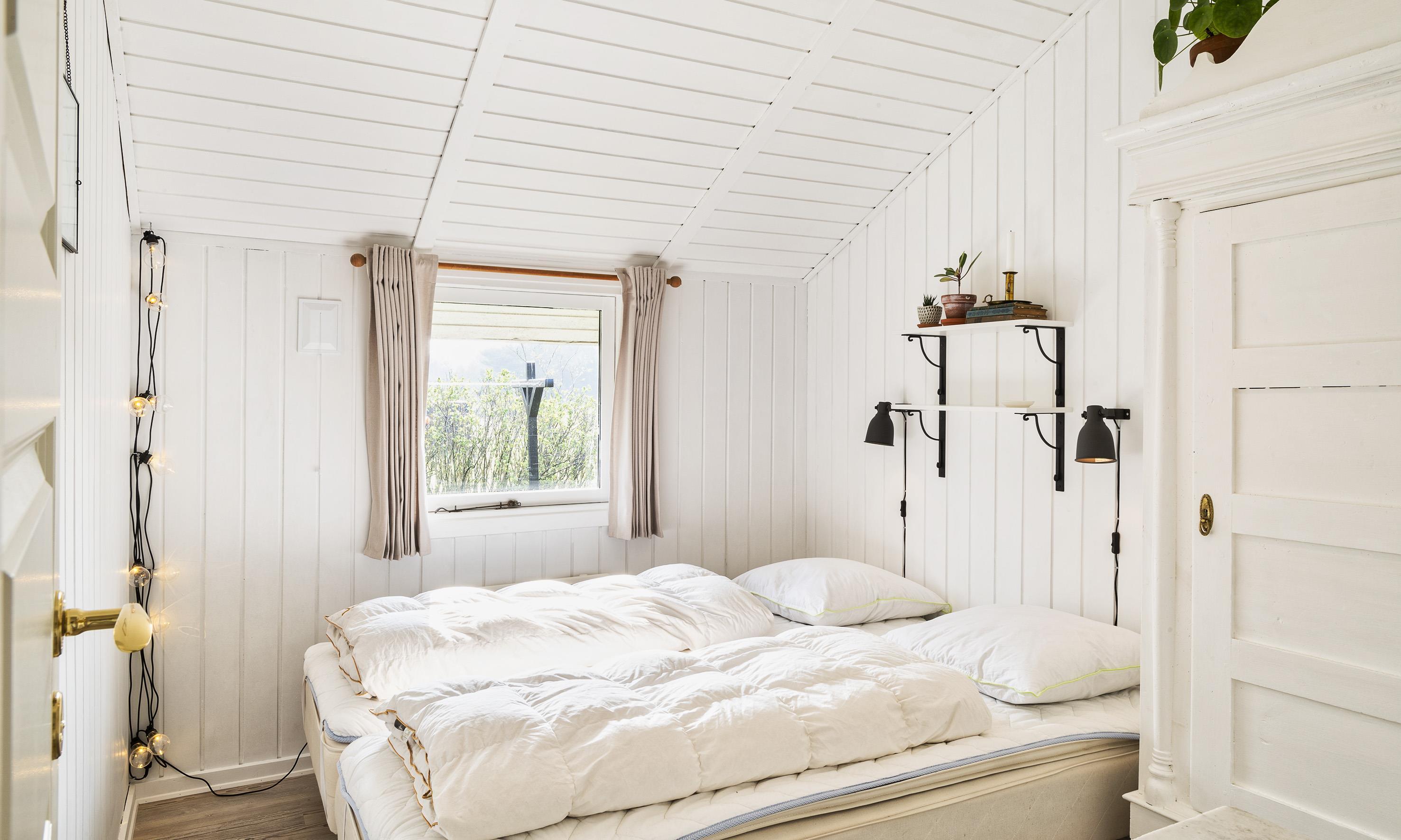 3 soveværelser. 1 med dobbeltseng 180x200 cm. 1 med 2 enkeltsenge (á 90x200 cm). 1 med køjeseng.