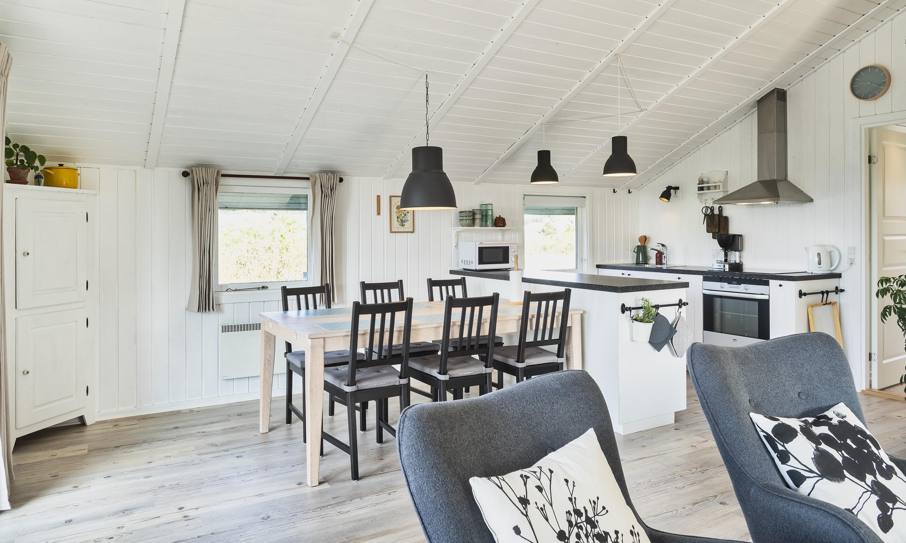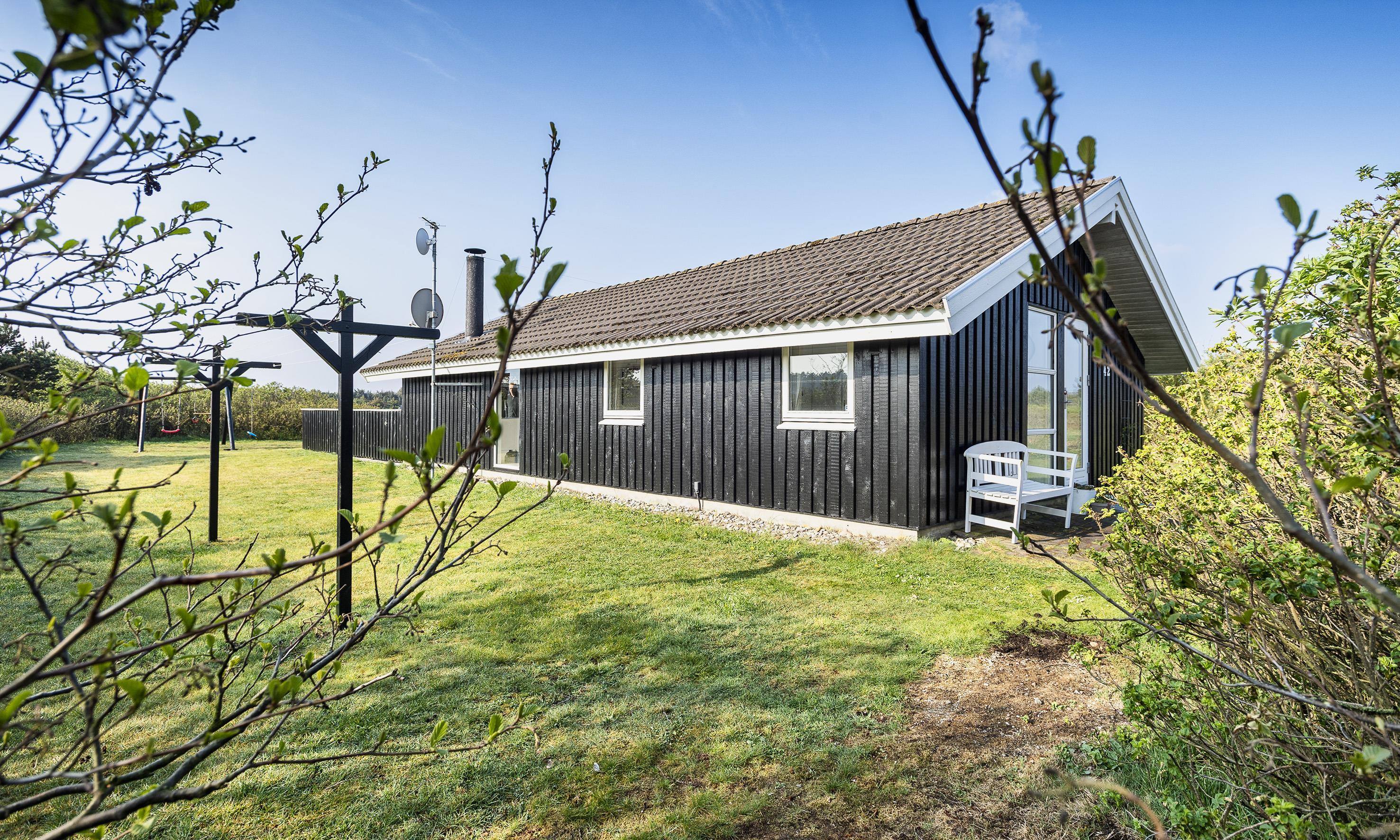 Smagfuldt sommerhus til 6 personer, beliggende på naturgrund, ca. 1.000 meter fra stranden. Nyt køkken med mikroovn, induktionskogeplade og opvaskemaskine. Stue med brændeovn, fjernsyn, parabol og DVD-afspiller. Danske DR-programmer. Nyt badeværelse med gulvvarme, bruser/wc og vaskemaskine. 3 soveværelser: DS + 2S + 2S. 1 soveværelse med 1 dobbeltseng, 1 soveværelse med 2 enkeltsenge og 1 soveværelse med 1 køjeseng. Varmepumpe. Lukket terrasse med kuglegrill (weber) samt gyngestativ. Trådløs internetadgang. Rygning er ikke tilladt. Max 2 hunde tilladt. Byggeår 1983.