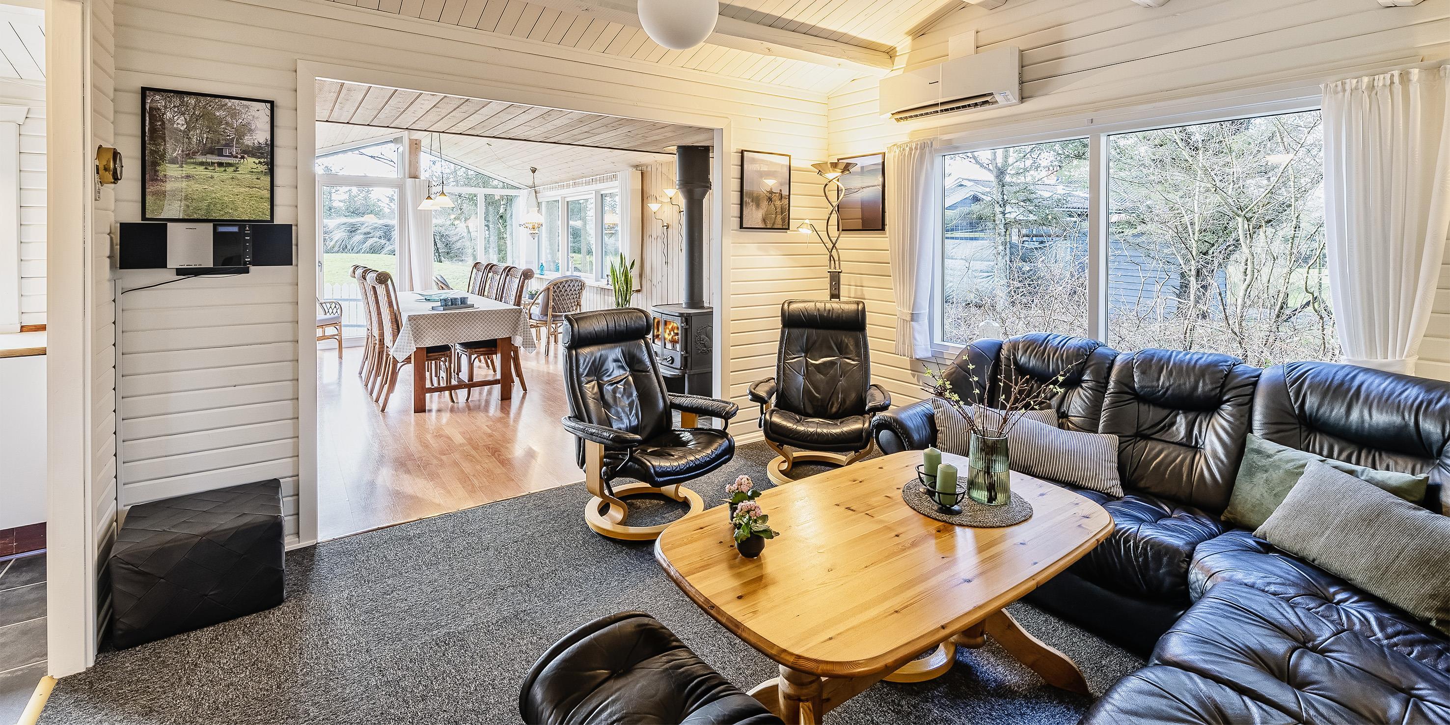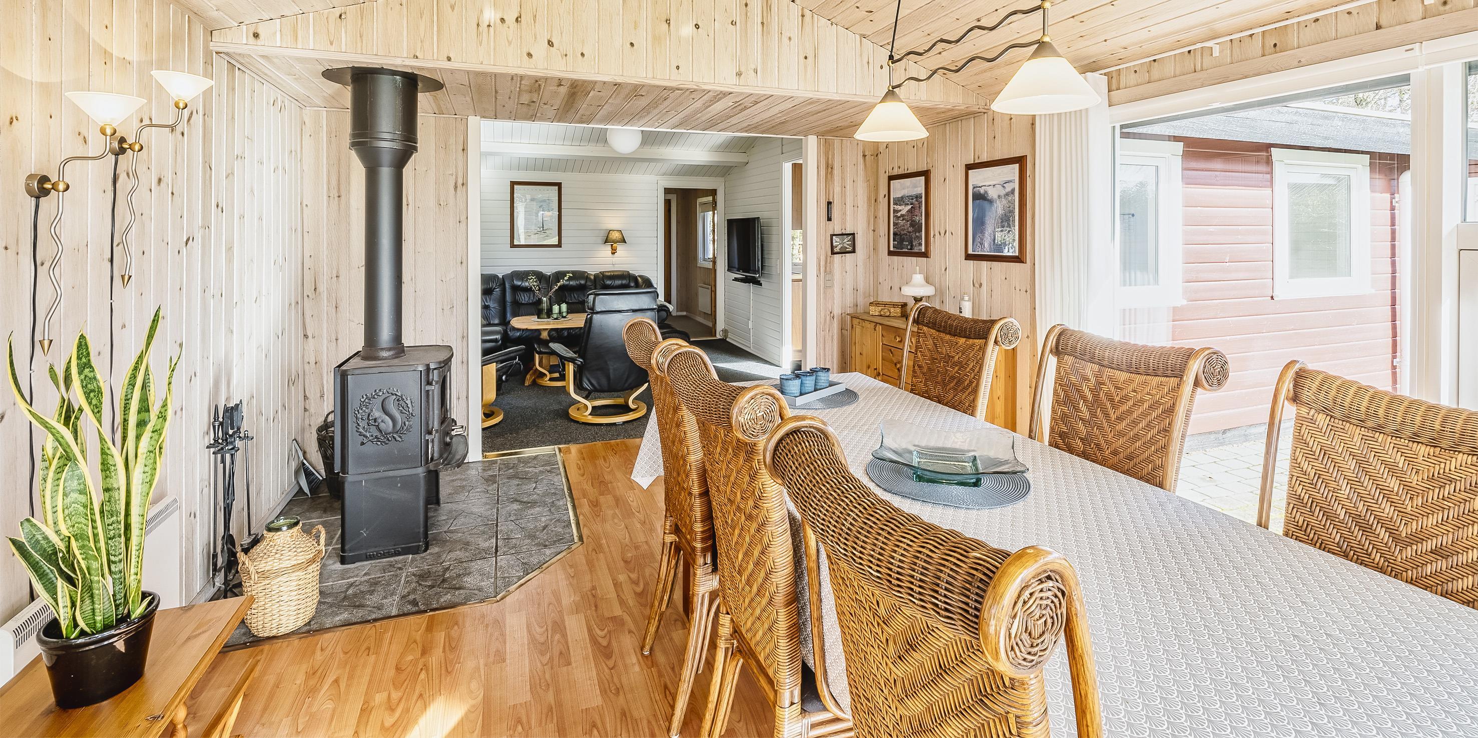 Hyggeligt sommerhus til 6 personer, beliggende på velholdt grund, ca. 1.200 meter fra stranden. Køkken med spisekrog, mikroovn og opvaskemaskine. Stue med brændeovn, fjernsyn med danske DR-programmer, parabol og Chrome Cast. Internetadgang. Varmepumpe. 3 soveværelser: DS + 2S + 2S. Badeværelse med bruser/wc. Udestue med spiseplads. Stor anneks med stort dejligt badeværelse med bruser/wc. Stort soveværelse med 1 dobbeltseng og med udgang til overdækket terrasse. Indgang med vaskemaskine og tørretumbler. Stort redskabsrum. 2 terrasser hvoraf det ene er lukket og delvis overdækket. Ugeneret terrasse på bagsiden af huset. Sandkasse. Husdyr er ikke tilladt - med undtagelse af én lille hund! Trådløs Internetadgang. Byggeår 1969, renoveret 2013.