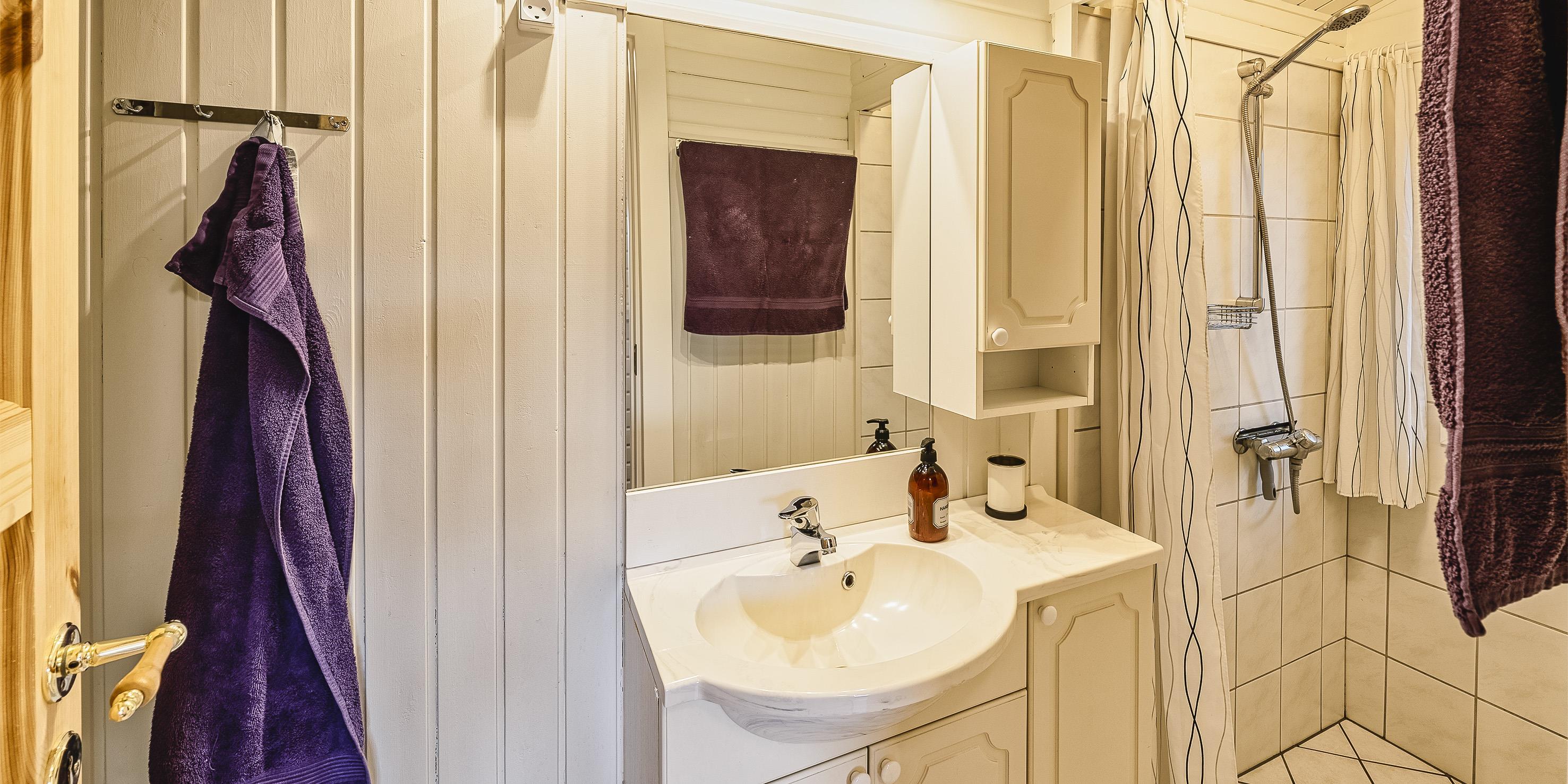 Bad med toilet, bruser og vask