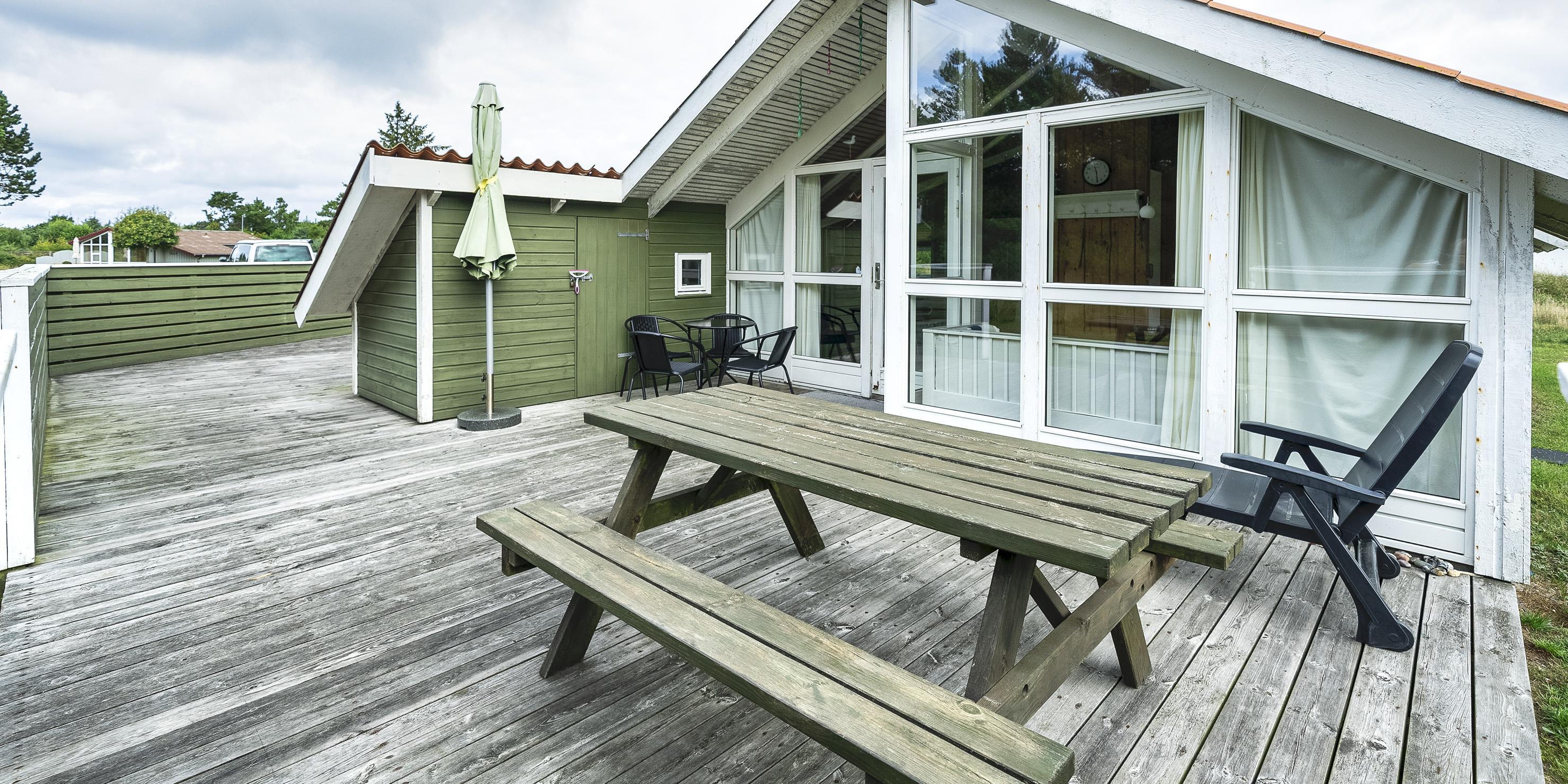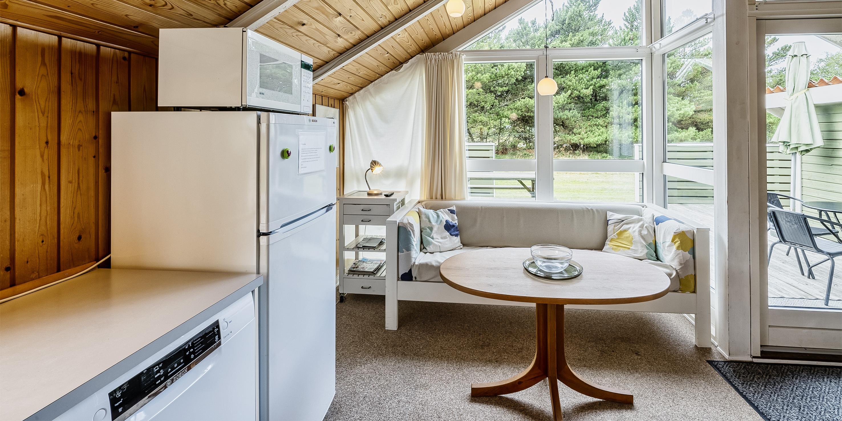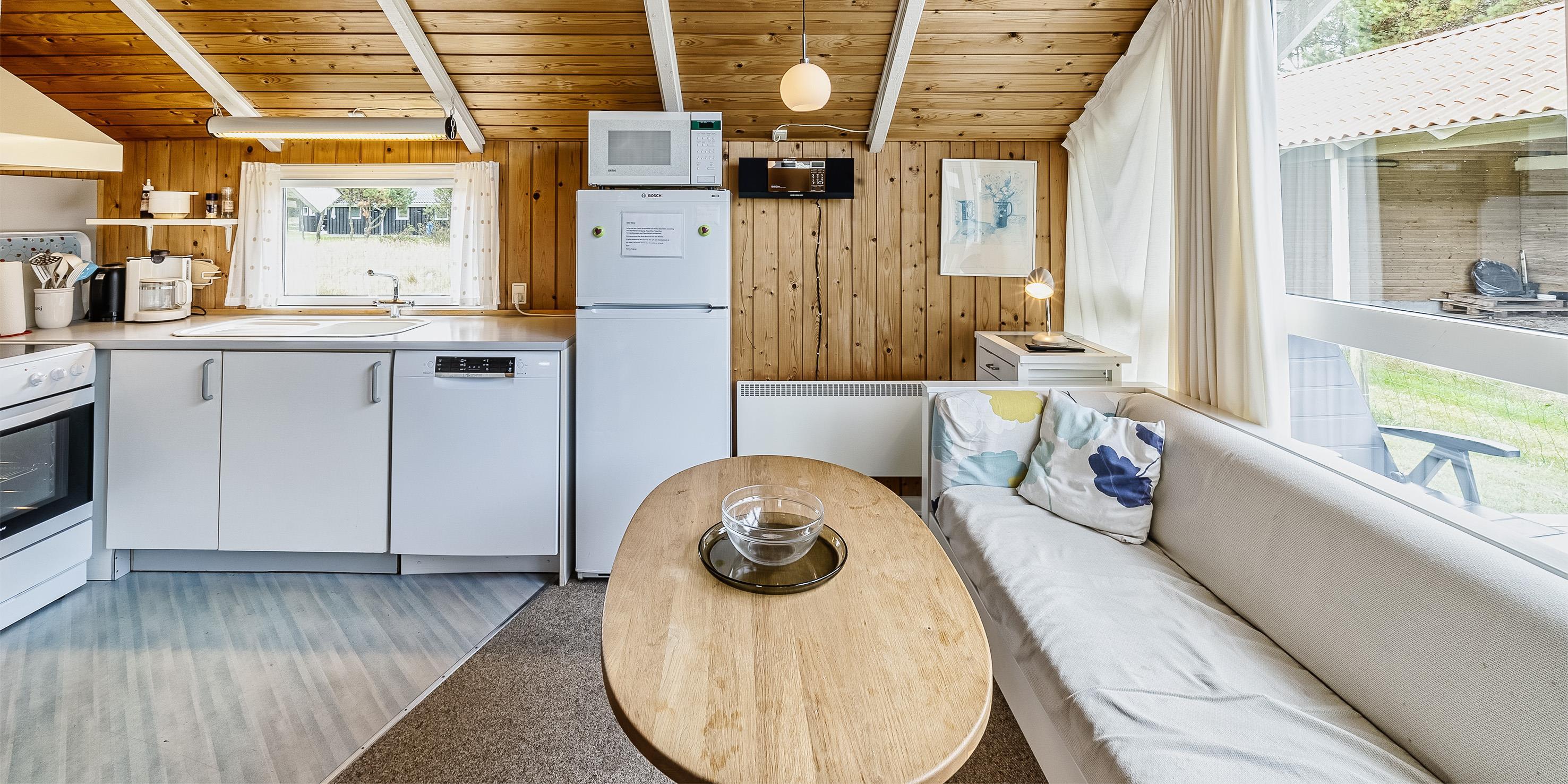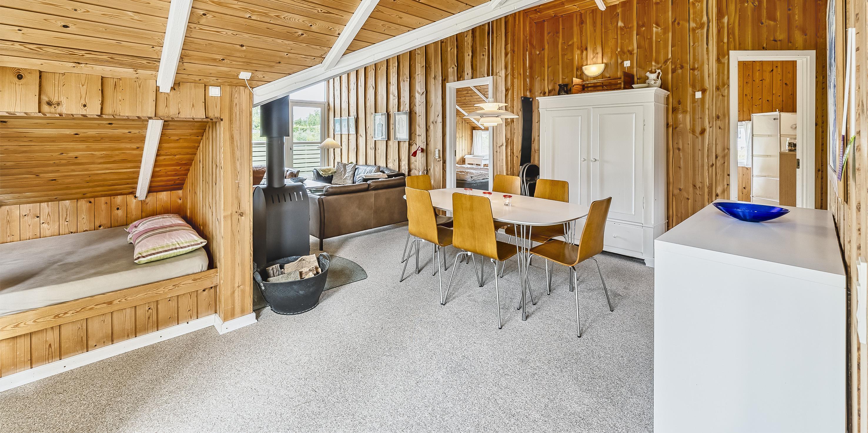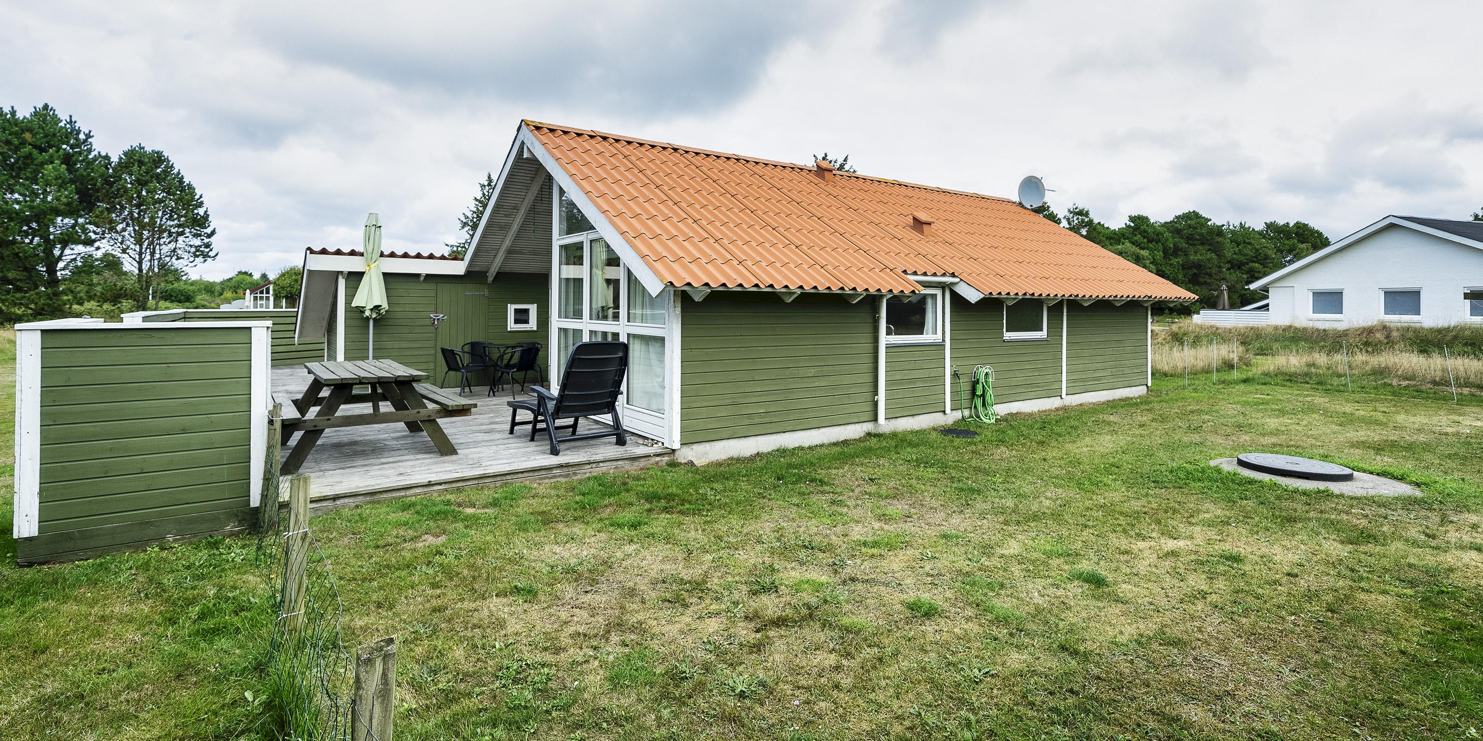 Lille og smagfuldt sommerhus til 6 personer, centralt beliggende på naturgrund, ca. 1.200 meter fra stranden. Sommerhuset indeholder: indgang til huset er ind til opholdstuen. Opholdstuen er hyggeligt indrettet med brændeovn, trådløs internetadgang, fjernsyn med DR-programmer eller udenlandske kanaler over parabol, DVD afspiller som en radio. Stuen er i åbent forbindelse med et velindrettet køkken. I forbindelse med køkkenet er der en lille spiseplads med god udsigt igennem et stort vinduesparti og med udgang til terrassen. Huset råder endvidere over 1 badeværelse med bruser/wc og vaskemaskine. 3 soveværelser: DS + DS + DS. Stor delvis lukket terrasse. Rygning samt katte er ikke tilladt! Carport. Der må medtages én lille hund! Byggeår 1991, renoveret i 2009.