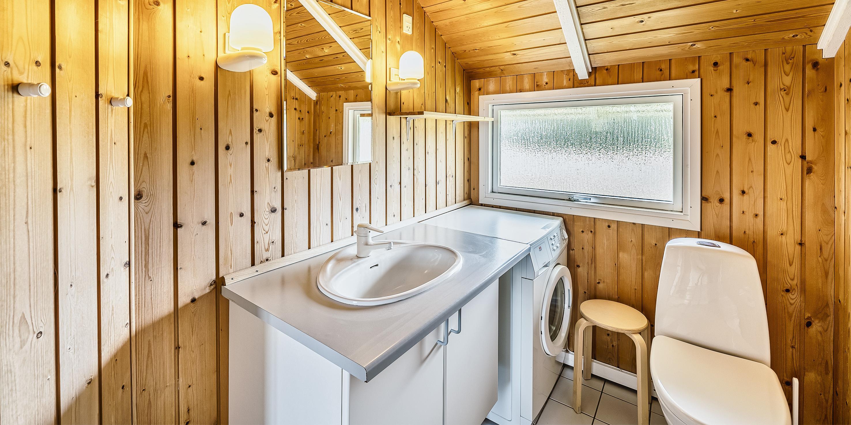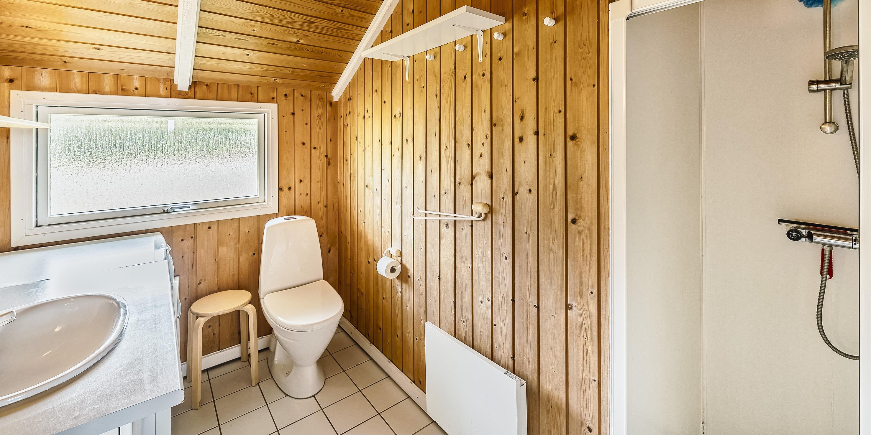 Bad med toilet, bruser og vask