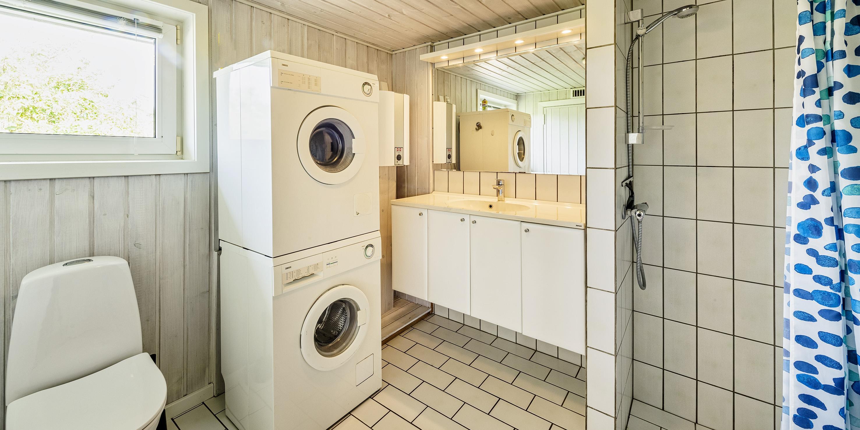 Bad med toilet, bruser og vask
