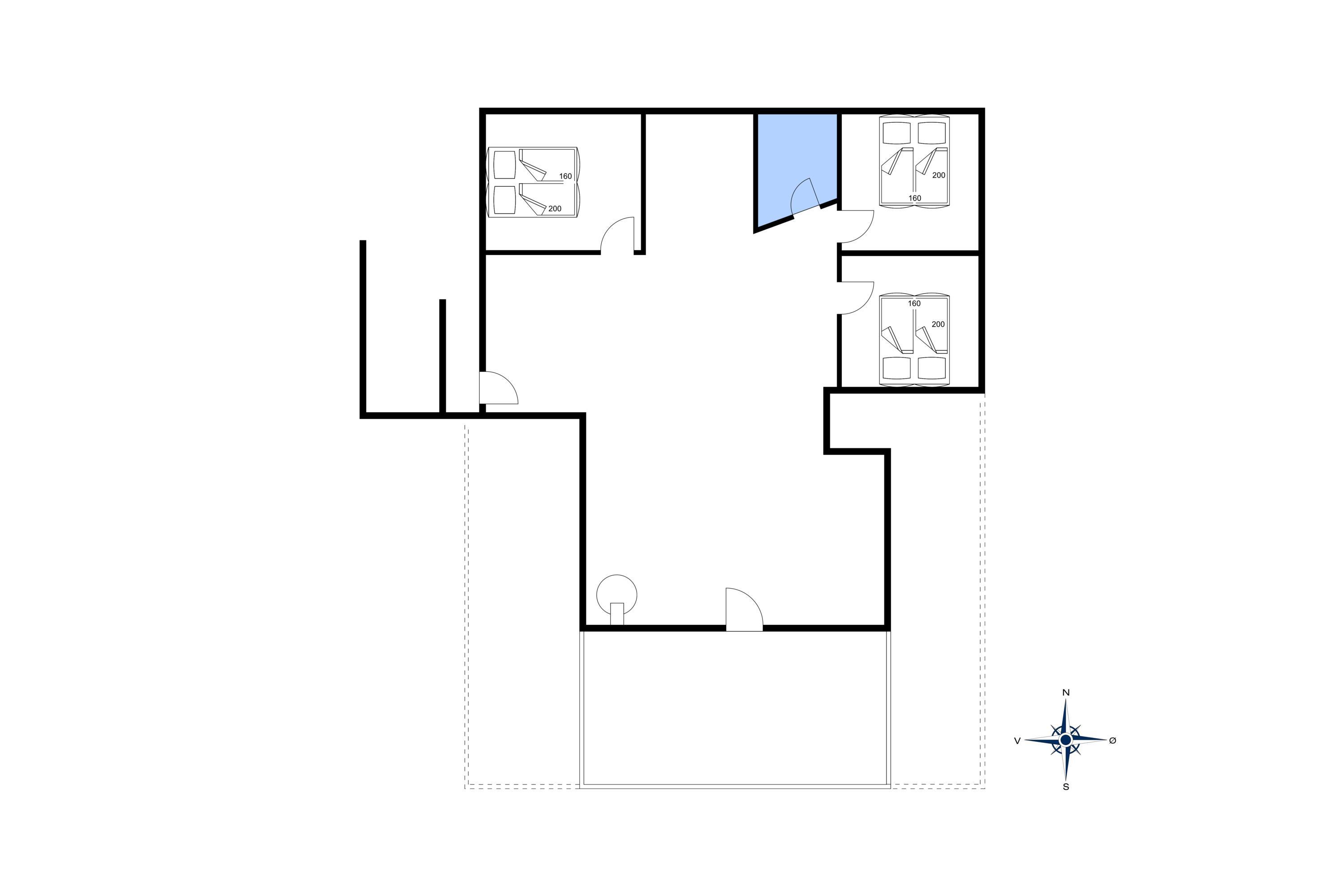 3 soveværelser med dobbeltseng 180x200 cm.