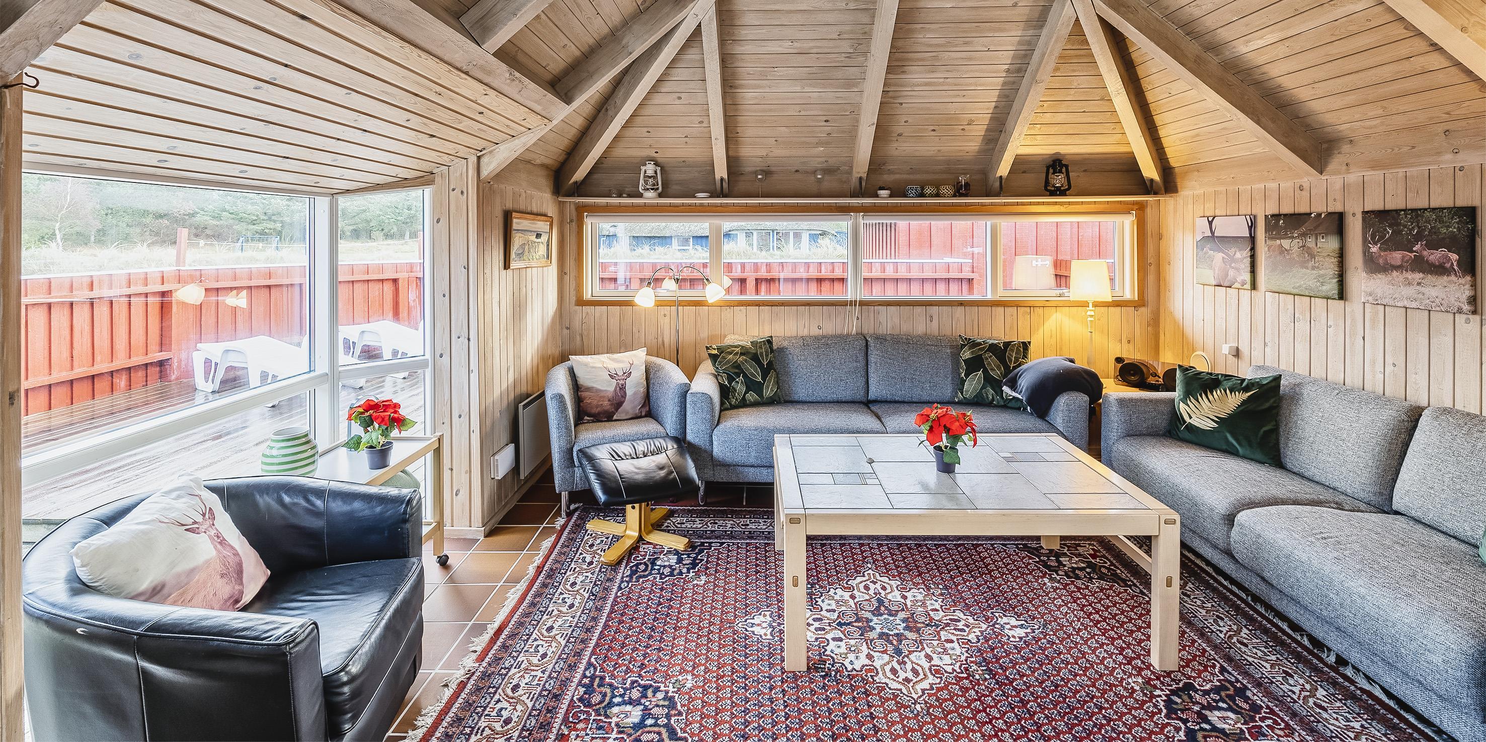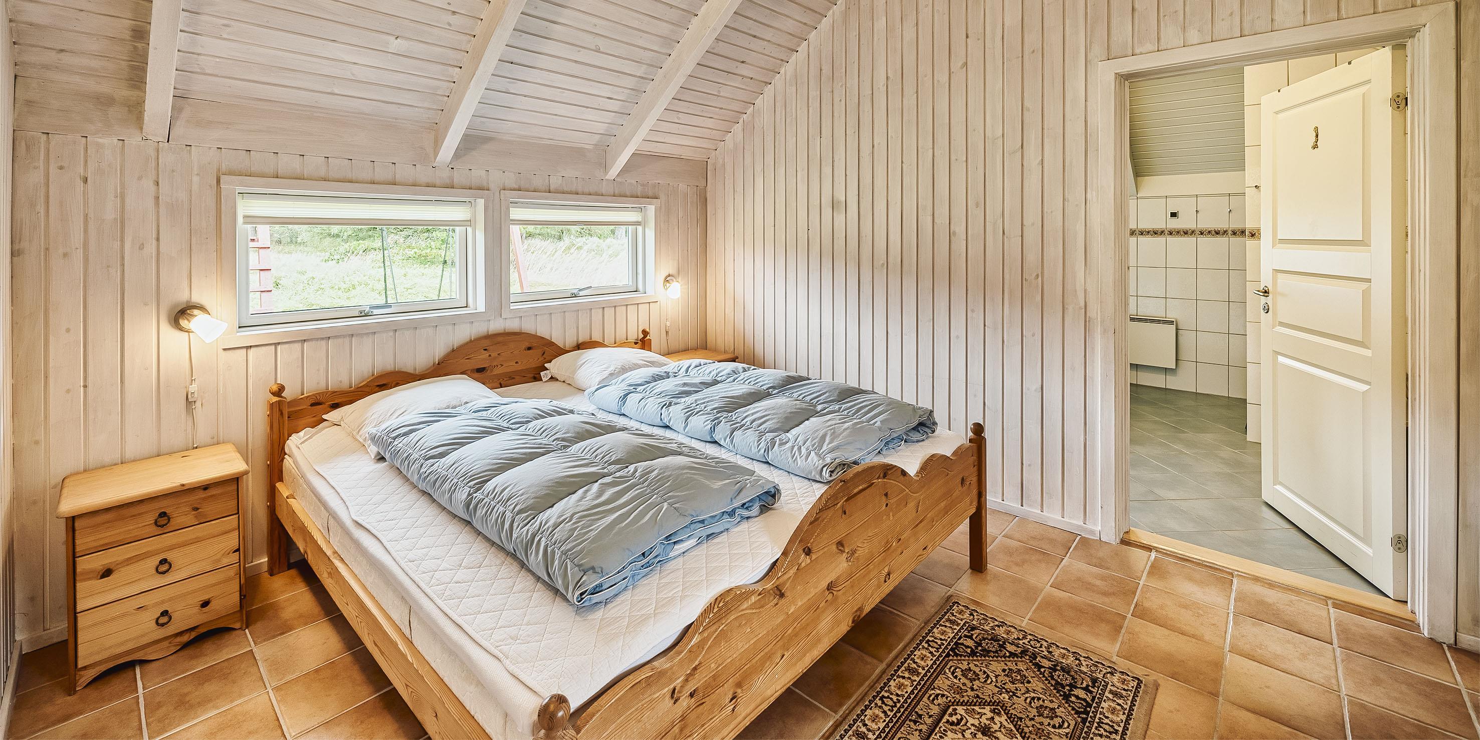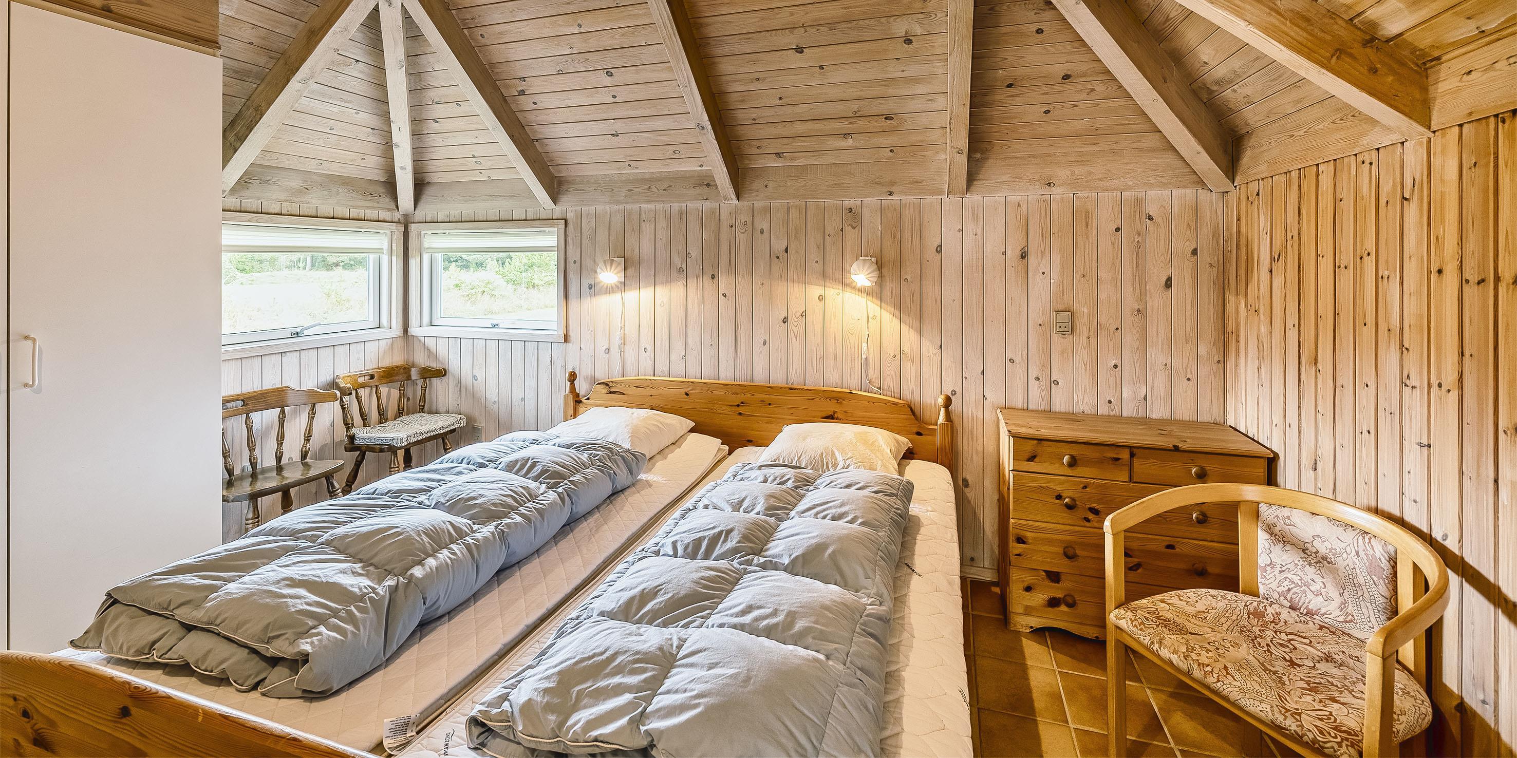 4 soveværelser - 3 soveværelser med dobbeltseng 180x200 cm. 1 med 1 enkeltsenge (á 90x200 cm) og 1 køjeseng.