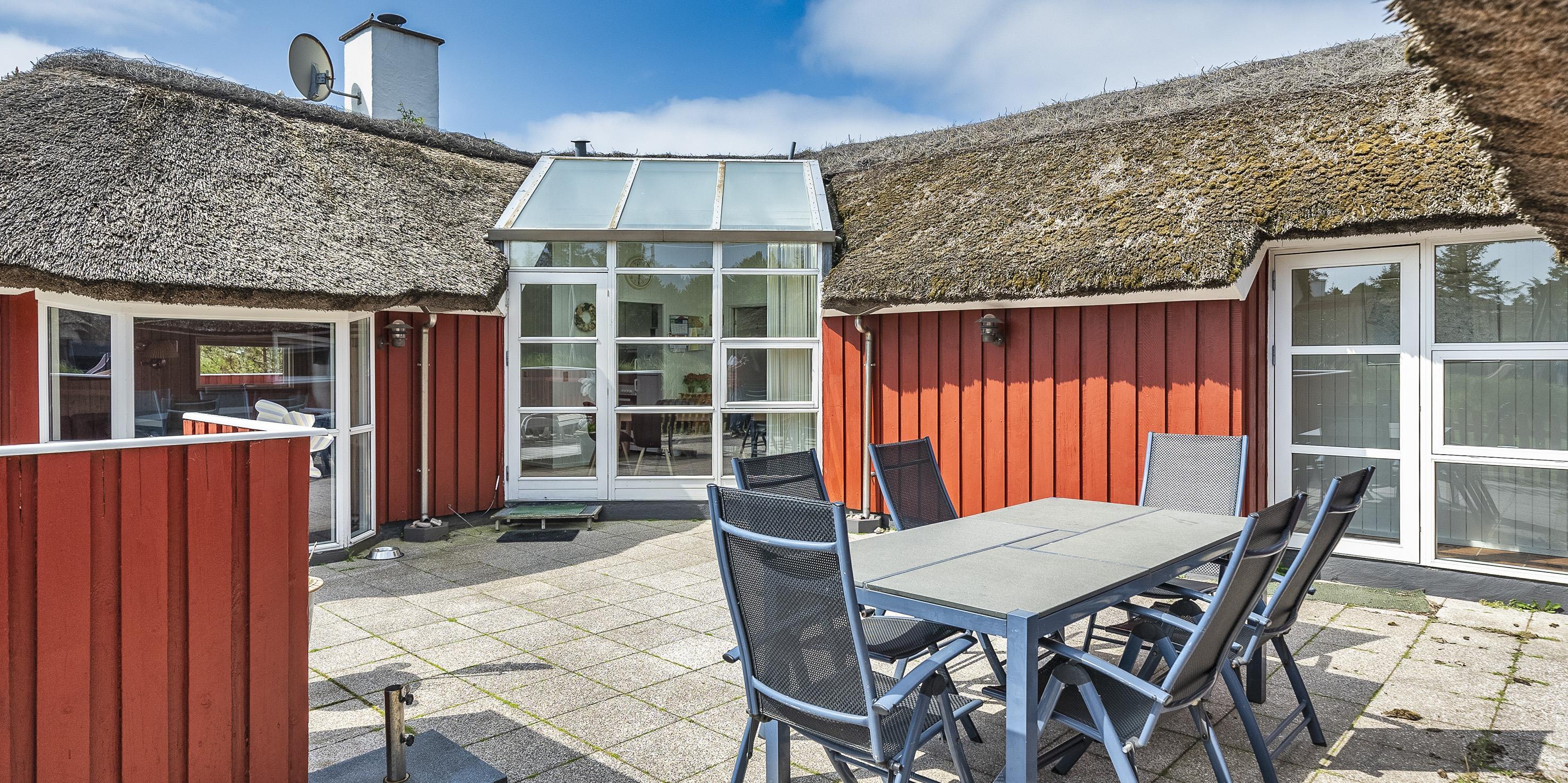 Smagfuldt sommerhus til 9 personer, beliggende på en naturgrund ca. 1.500 meter fra stranden.