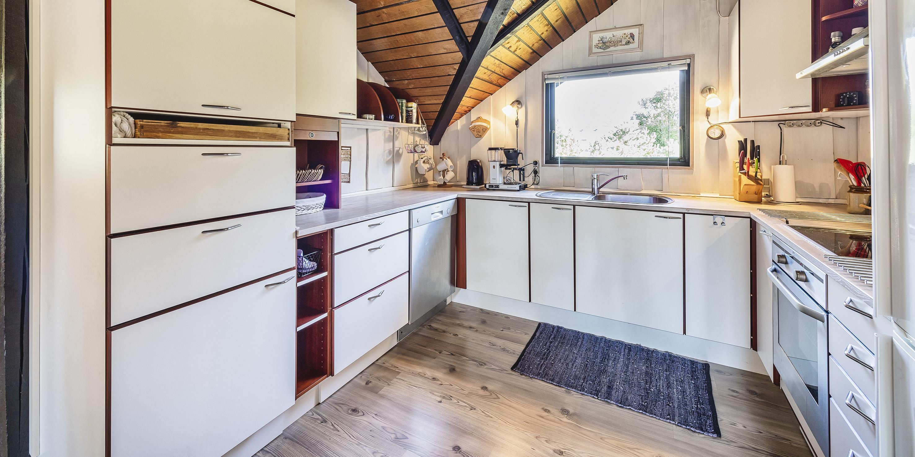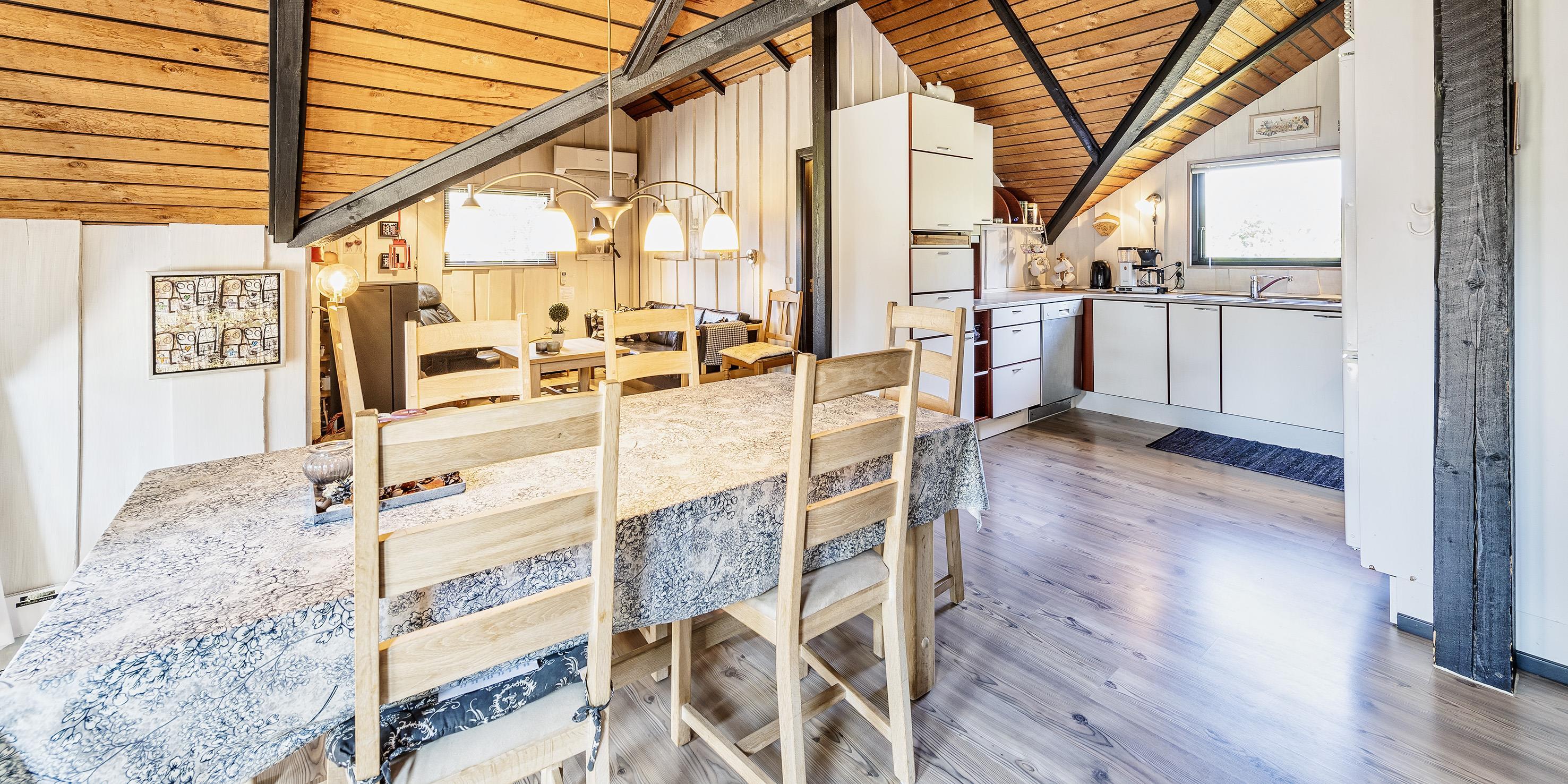 Smagfuldt sommerhus til 5 personer, beliggende på stor naturgrund grænsende op til skov, ca. 1.200 meter fra stranden. Stue med brændeovn, fjernsyn og parabol (Stofa sommerhuspakke). Åbent køkken med opvaskemaskine og mikroovn. Badeværelse med bruser/wc og sauna. Vaskemaskine. 3 soveværelser: 2S + 2S + 2S. Varmepumpe. Delvis overdækket terrasse og sandkasse. Trådløs internetadgang. Brænde ved huset kan købes, da forfindes en lille kasse i hus. Rygning er ikke tilladt. Byggeår 1978, renoveret 1988.