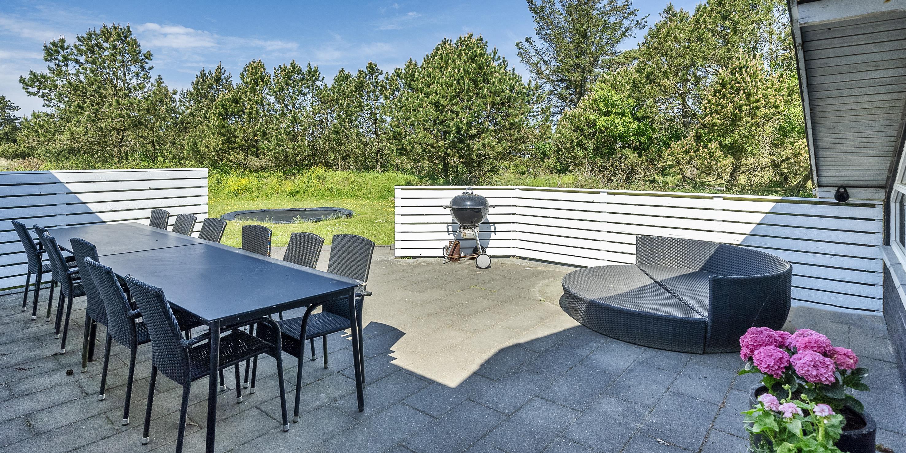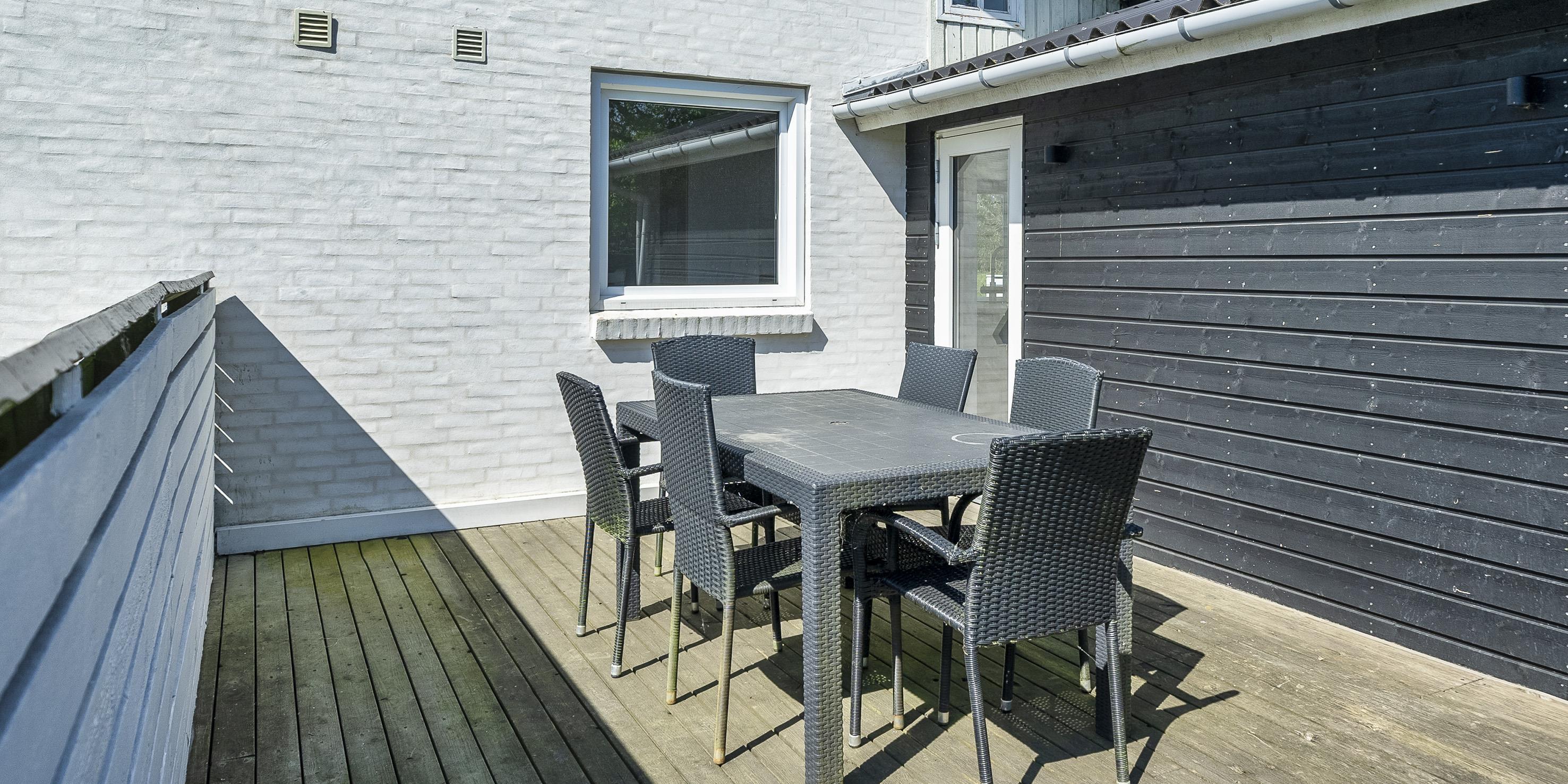 De udvendige faciliteter byder en dejlig afskærmet terrasse, hvor aftenerne kan forlænges og nydes til hen i foråret/efteråret. Sommerhuset ligger på en stor grund med gode parkeringsforhold.