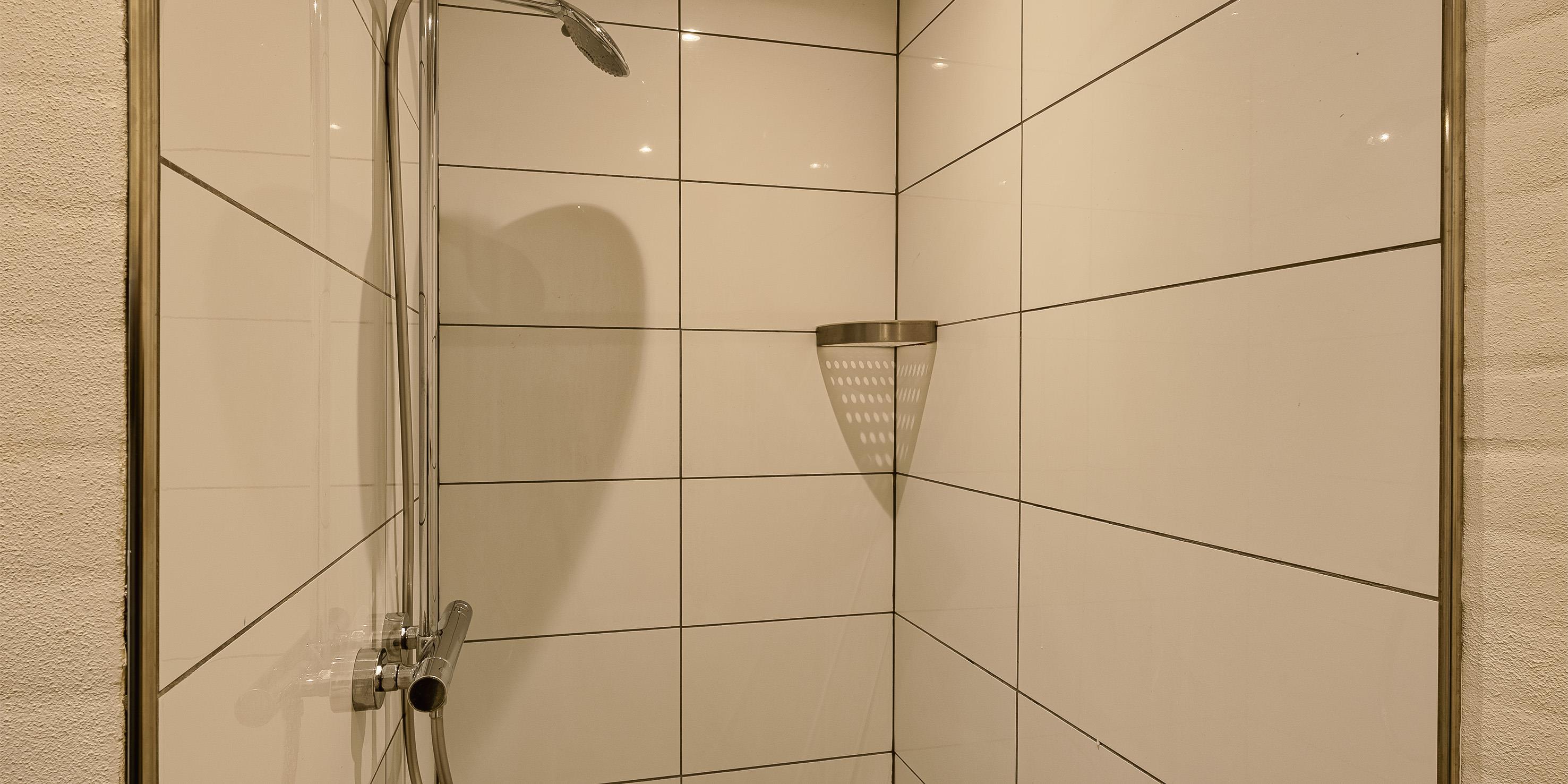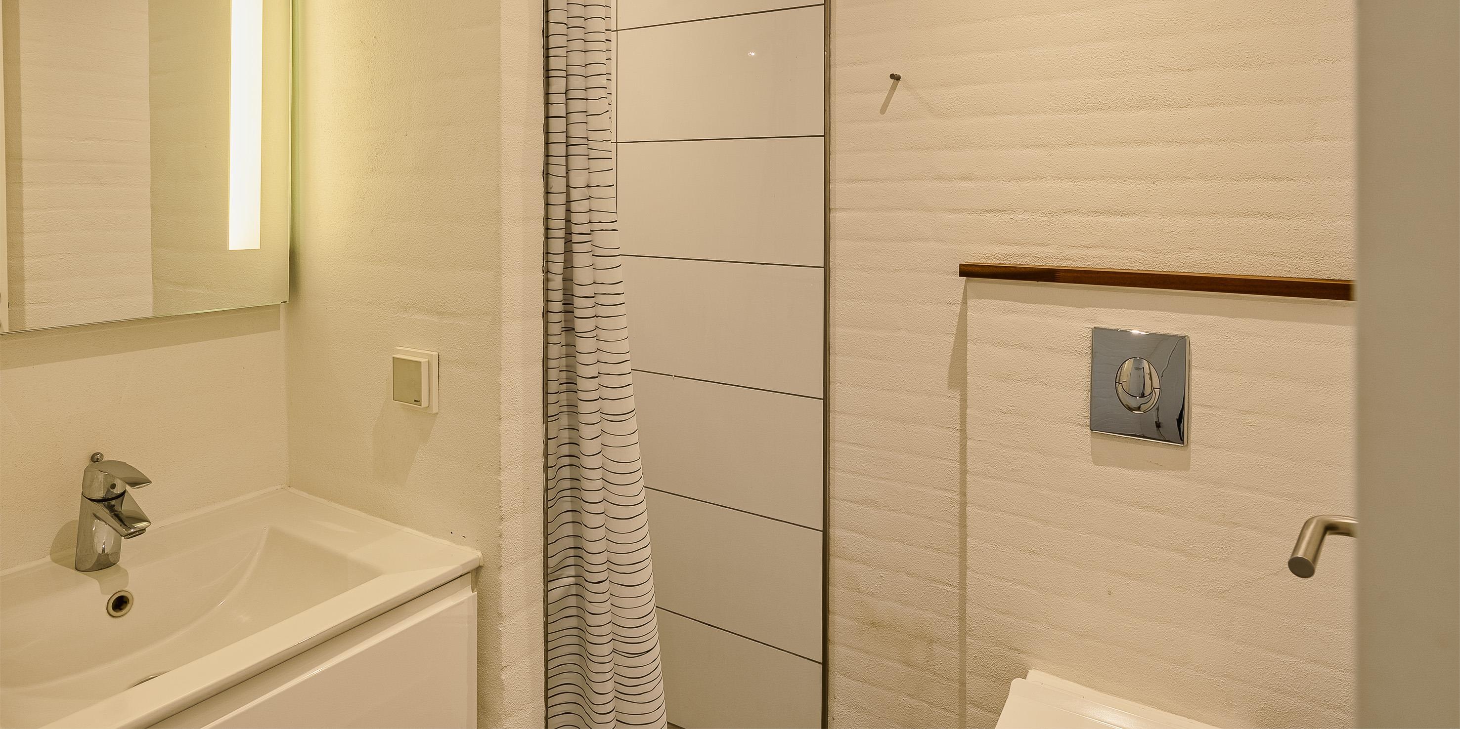 Bad med toilet, bruser og vask