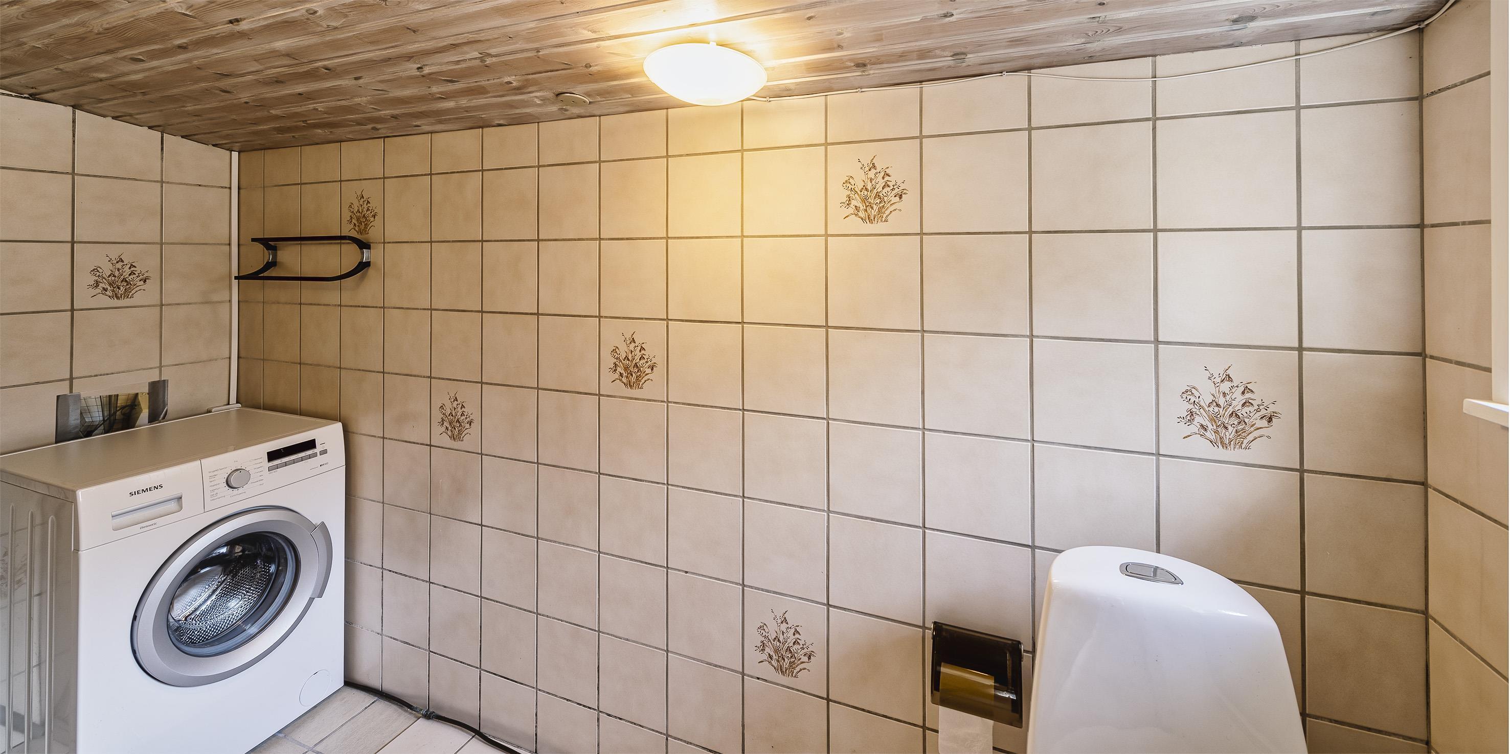 Bad med toilet, bruser og vask