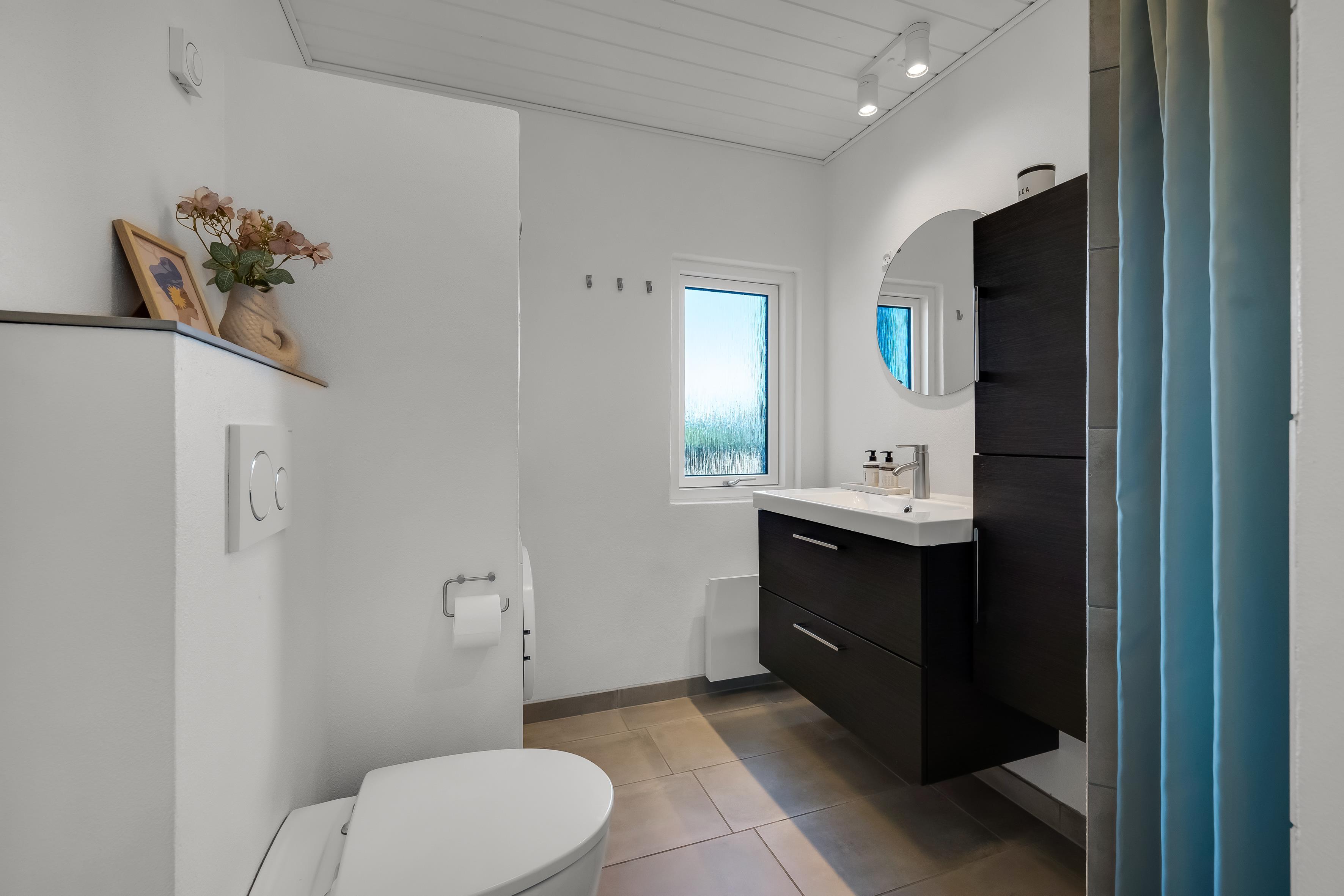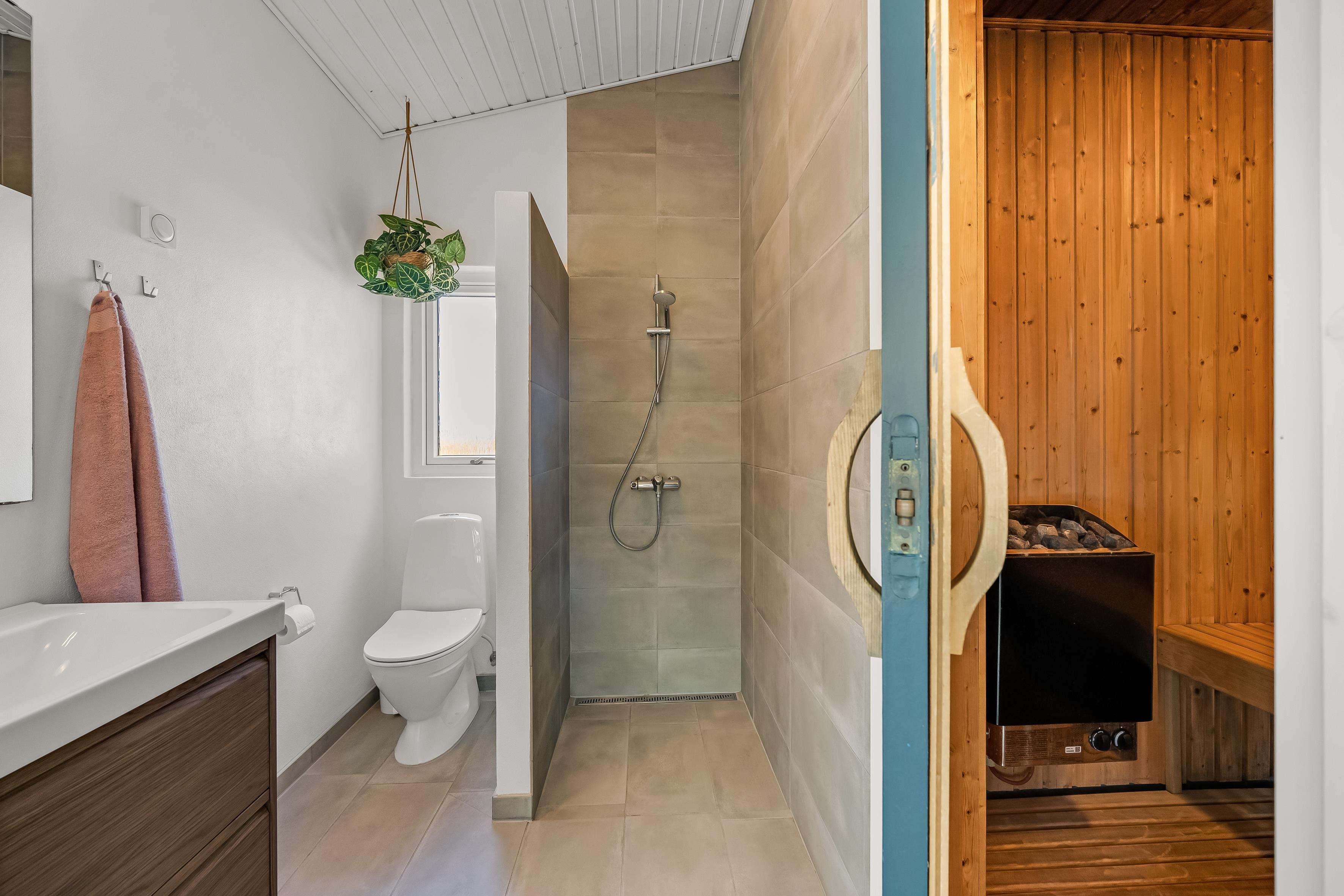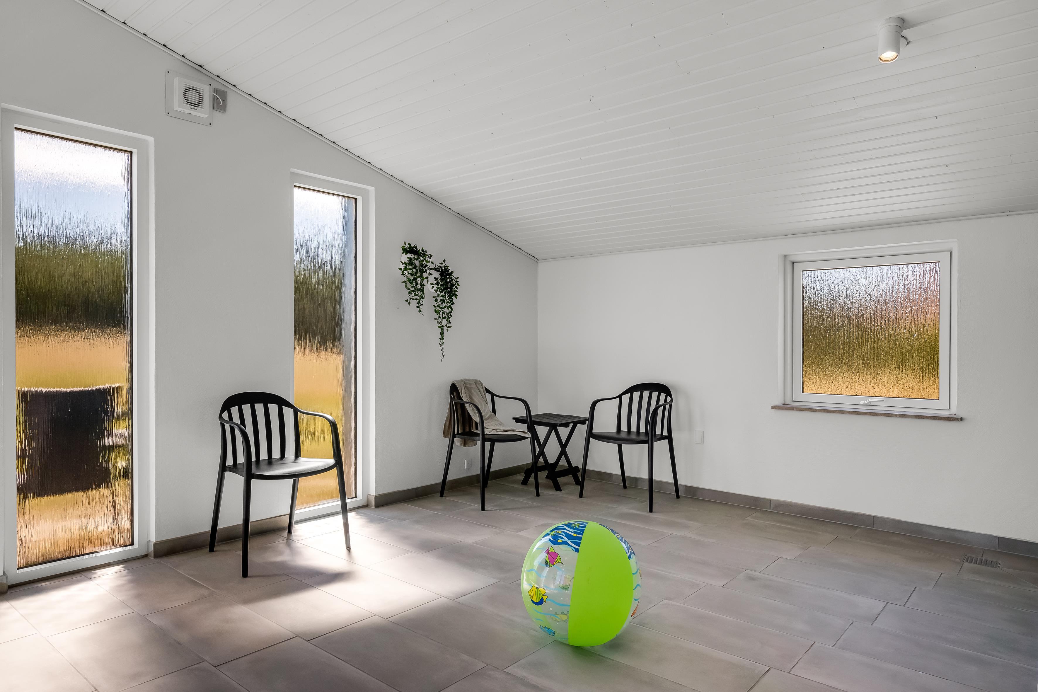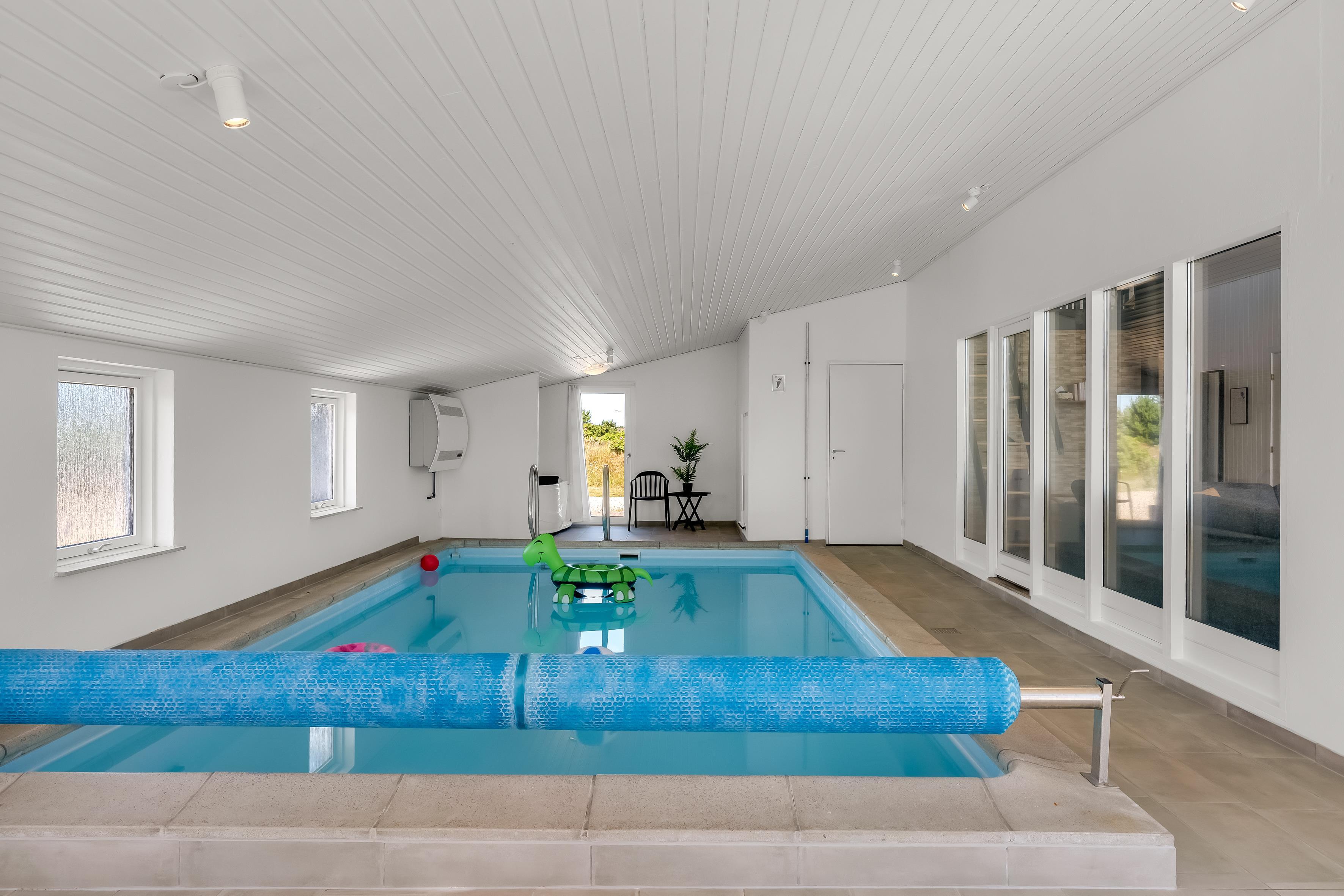Huset indeholder: Indgang/fordelingsgang med garderobe der ligger i åben forbindelse med opholdsrummet. Det store opholdsrum er med loft til kip og med et stort vinduesparti mod øst. Stuen er med en hjørnesofa, hvorfra udsigten over mod skov kan nydes fra det store vinduesparti. Stuen har Smart TV med parabolantenne og DR-programmer, trådløs internet (100/100), varmepumpe, brændeovn samt en hems, og er et godt opholdsrum for børnene for uforstyrret leg og hygge. Nyt køkken i åben forbindelse med stuen. Køkkenet har køleskab, indbygningsovn, induktionskogeplade, emhætte 80 L skabsfryse. I forbindelse med køkkenet, er der en åben spiseplads med kig til skoven, fra det store vinduesparti og udgang til den delvis overdækkede terrasse. Fra stuen er der adgang til det store poolrum, poolen er ca. 6,5 x 3,5 x 1,3 (længde x brede x dybde), der er et hjørnespa og flere hyggekroge med kurvemøbler, samt badeværelse med bruser/wc, vaskearrangement og sauna. Hele herligheden kan nydes fra stuen igennem det store vinduesparti. 5 soveværelser: DS + DS + 2S + 2S + 2S. Fra fordelingsgangen forefindes 4 gode soveværelser, 2 soveværelser med hver en dobbeltseng og garderobeskabe, samt 2 soveværelser med hver 2 enkeltsenge. Ydermere er der 2 enkeltsenge på hemsen, hvorfra der adgang via en trappe fra stuen. Badeværelse med bruser/wc og vaskearrangement samt vaskemaskine og tørretumbler. 2 terrasse med gode havemøbler, grill, og et gyngestativ. Grunden er udlagt i græs som giver rig mulighed for boldspil, kroket m.m. Husdyr og rygning er ikke tilladt. Ladestation til El biler, stick Type 2. Byggeår 1989. Renoveret 2020. Der afregnes ekstra for vand.