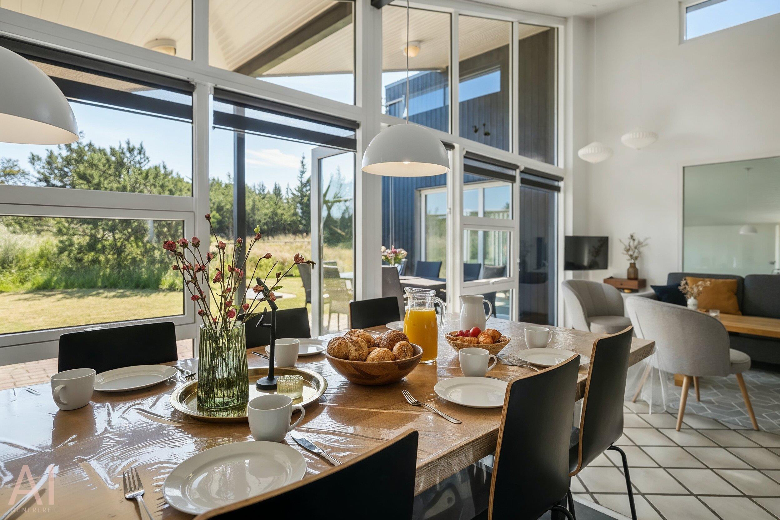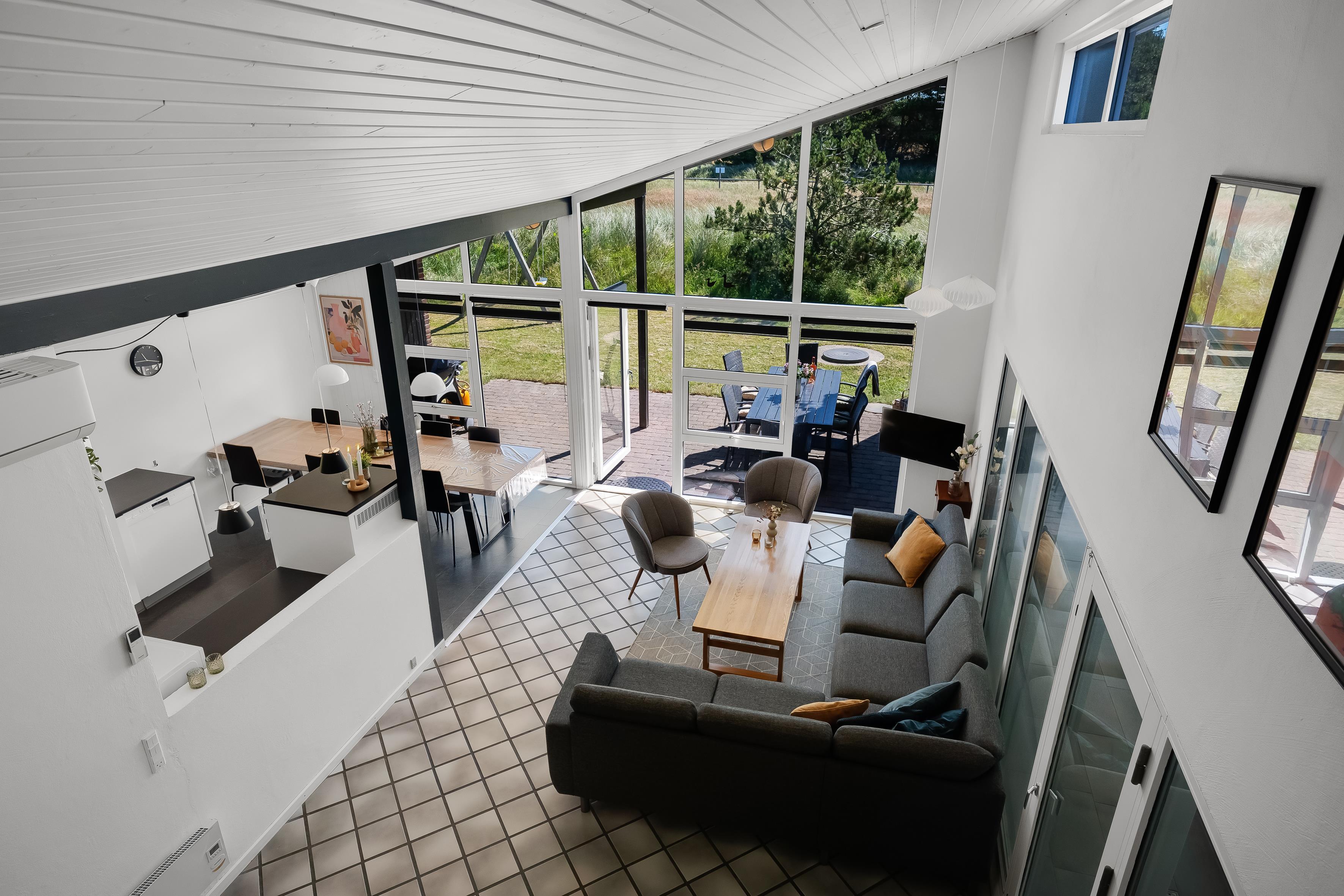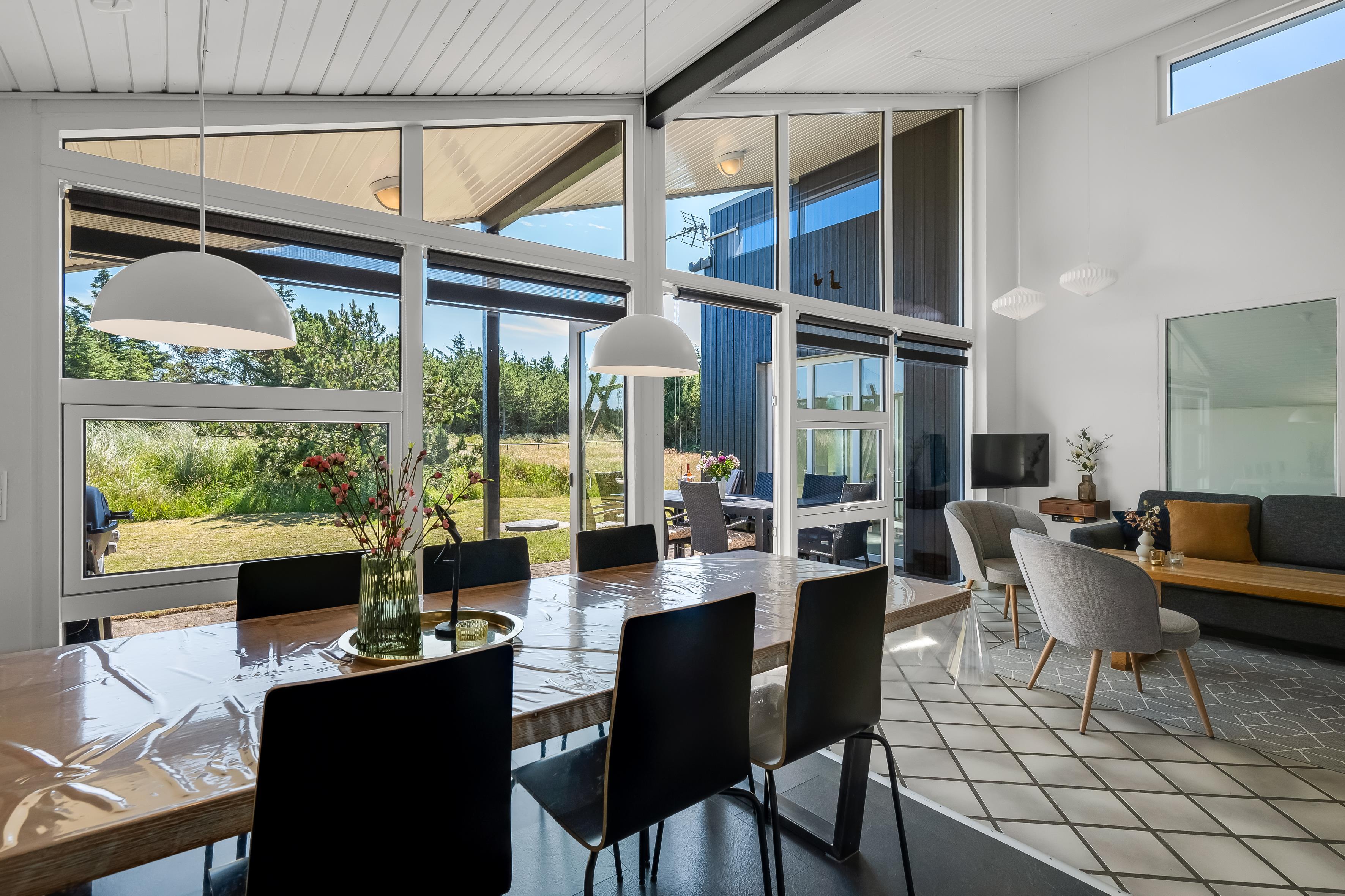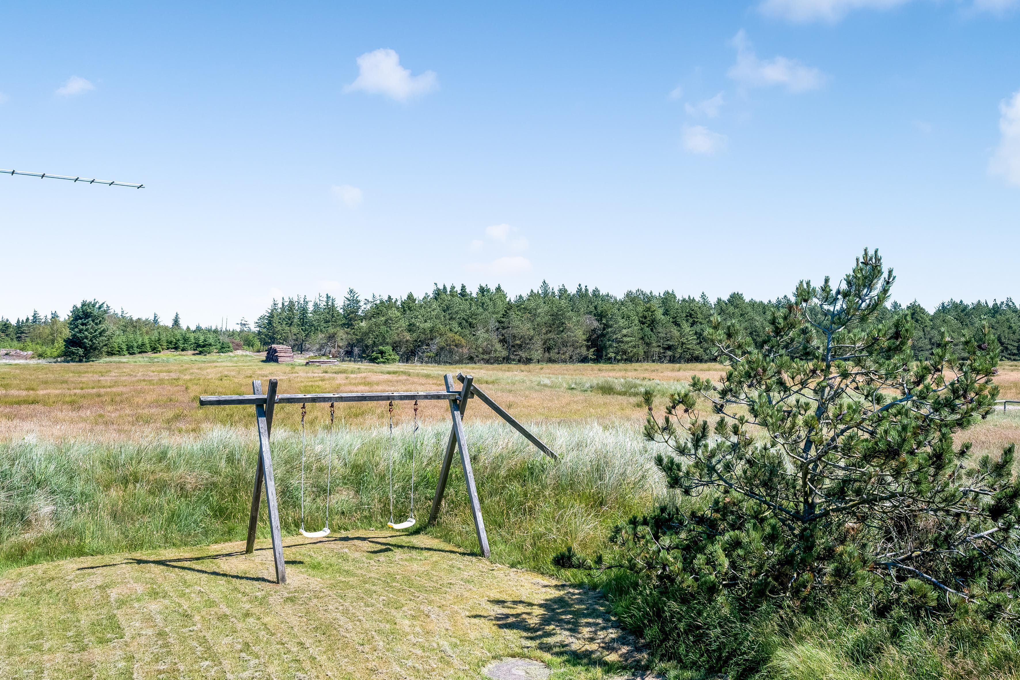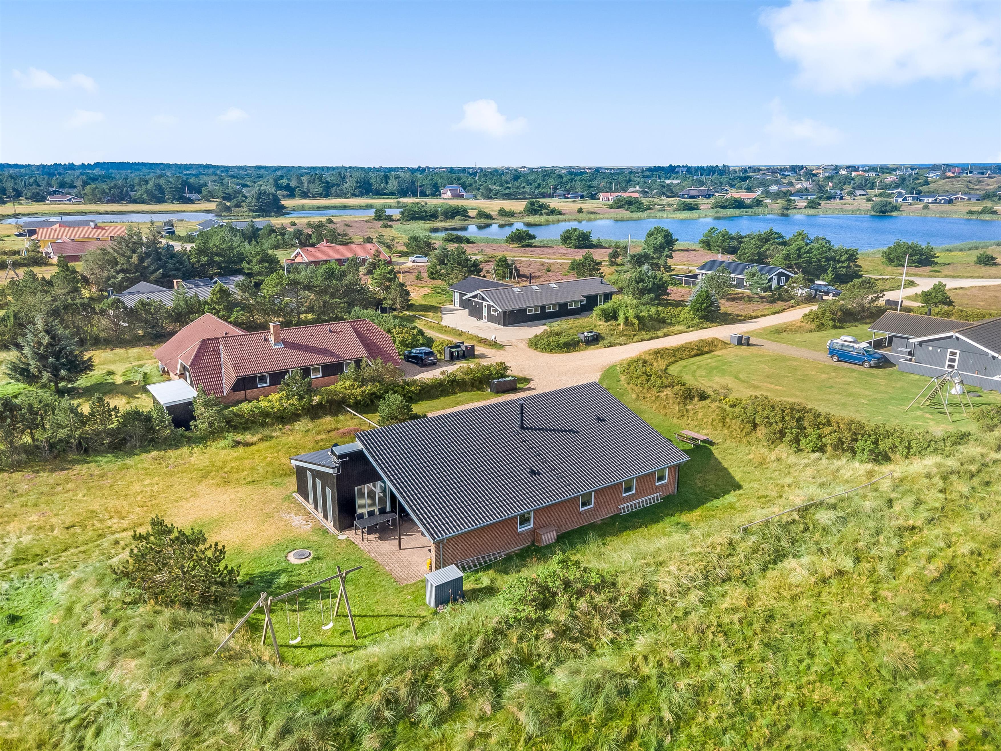 Lyst renoveret poolhus til 10 personer, beliggende i en lomme på en blind vej. Sommerhuset er placeret på en 2310 m2 stor naturgrund med ca. 1200 meter fra stranden. Grunden er op grænsende til skoven og cykelsti mod Filsø og Henne Strand. Bagved huset er der en stor græsmark hvor kronvildtet ofte græsser.