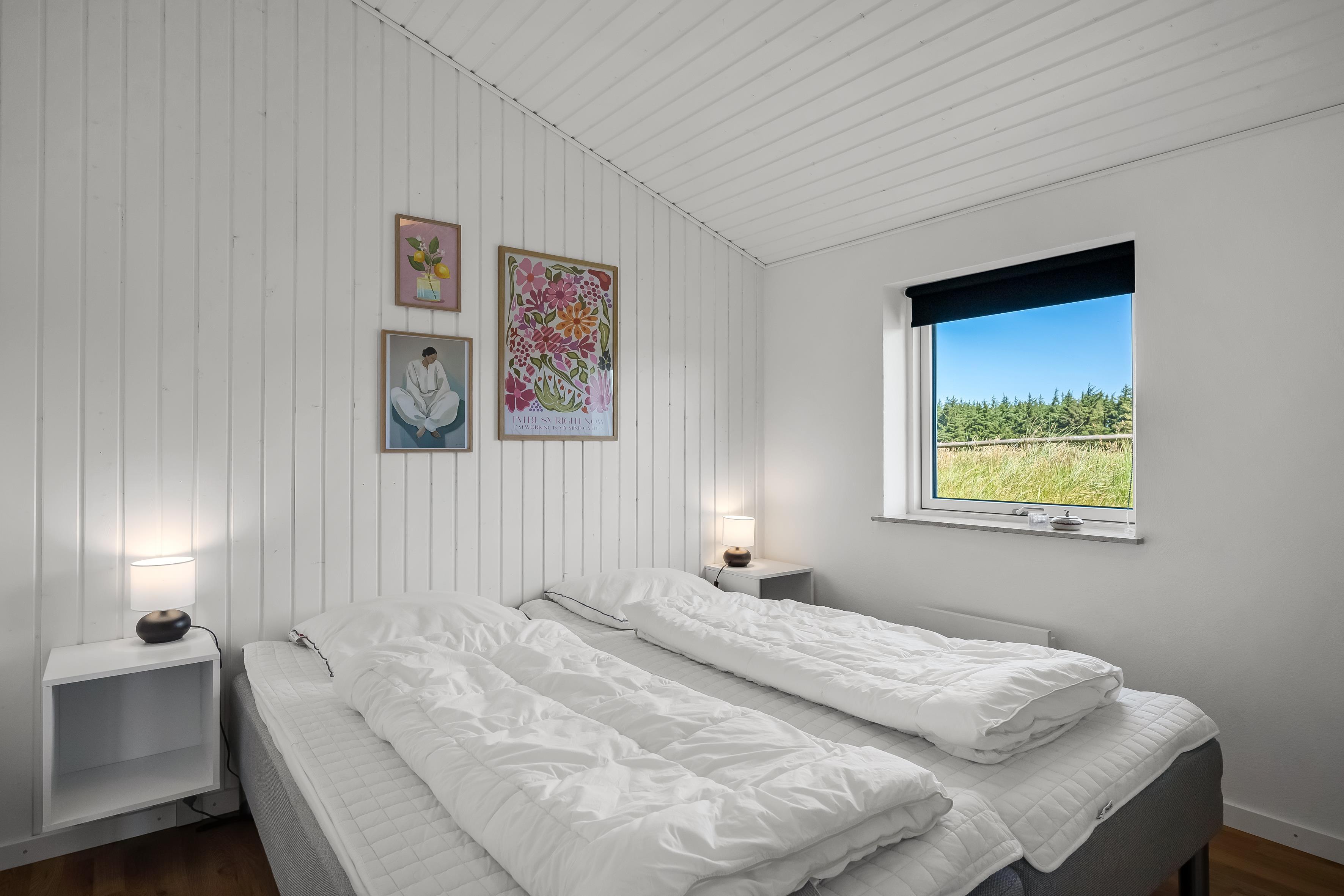 5 soveværelser. 2 med dobbeltseng 180x200 cm. 3 hver med 2 enkeltsenge (á 90x200 cm)