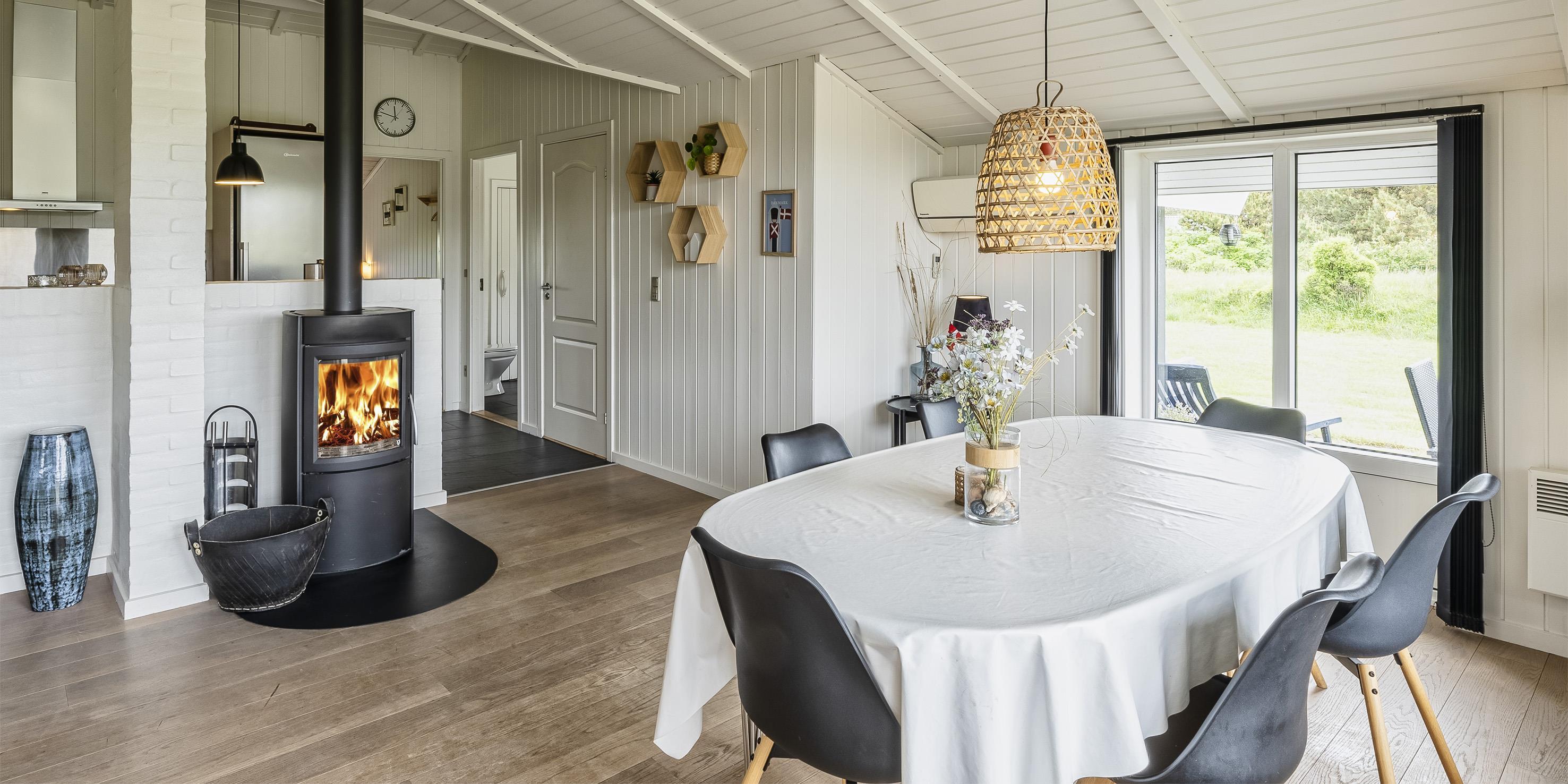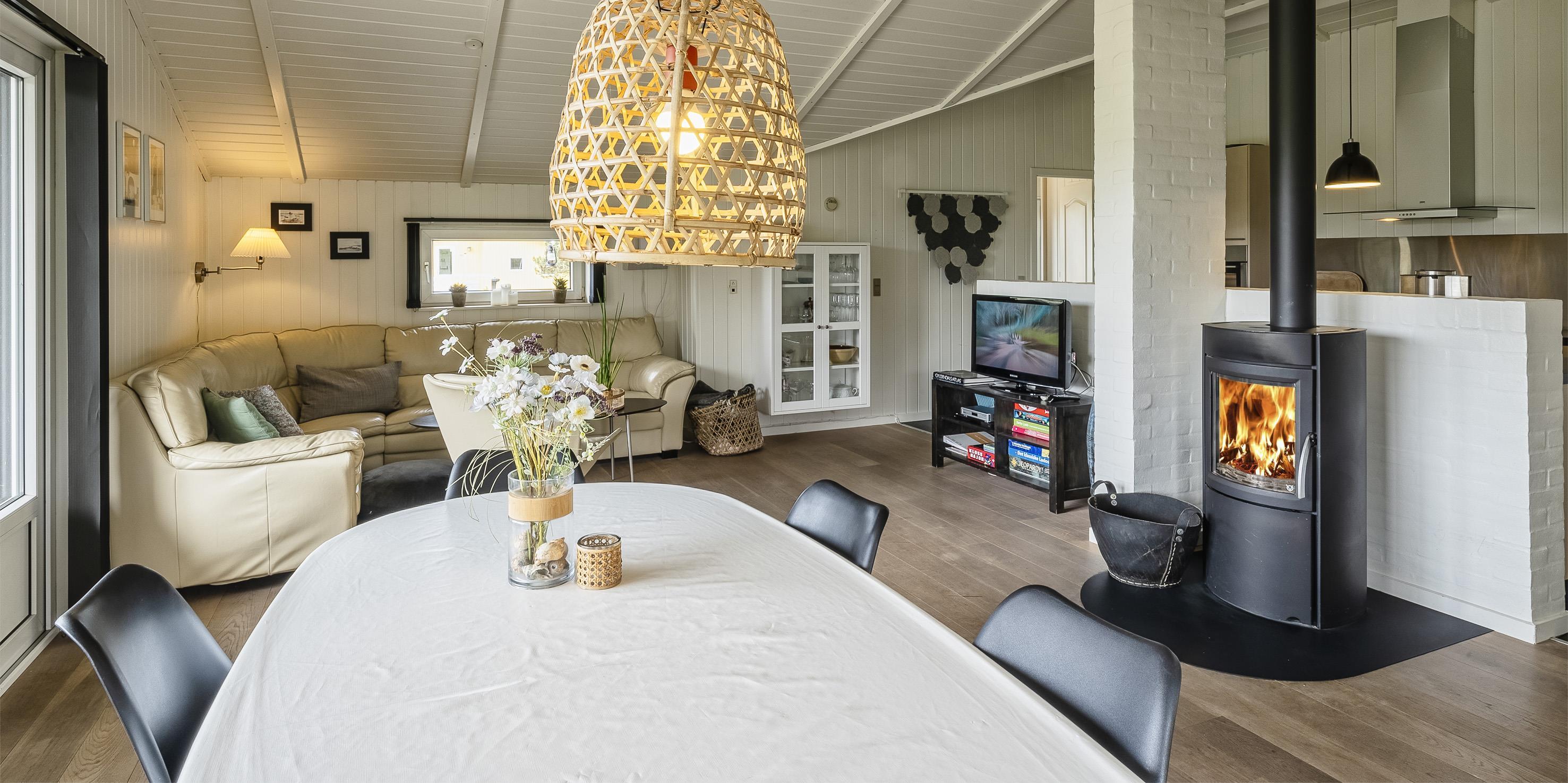 Sommerhuset byder på 111 m2 skøn atmosfære ude som inde, med god komfort for hele familien store som små året rundt. Huset ligger omkring 1000 meter fra stranden.