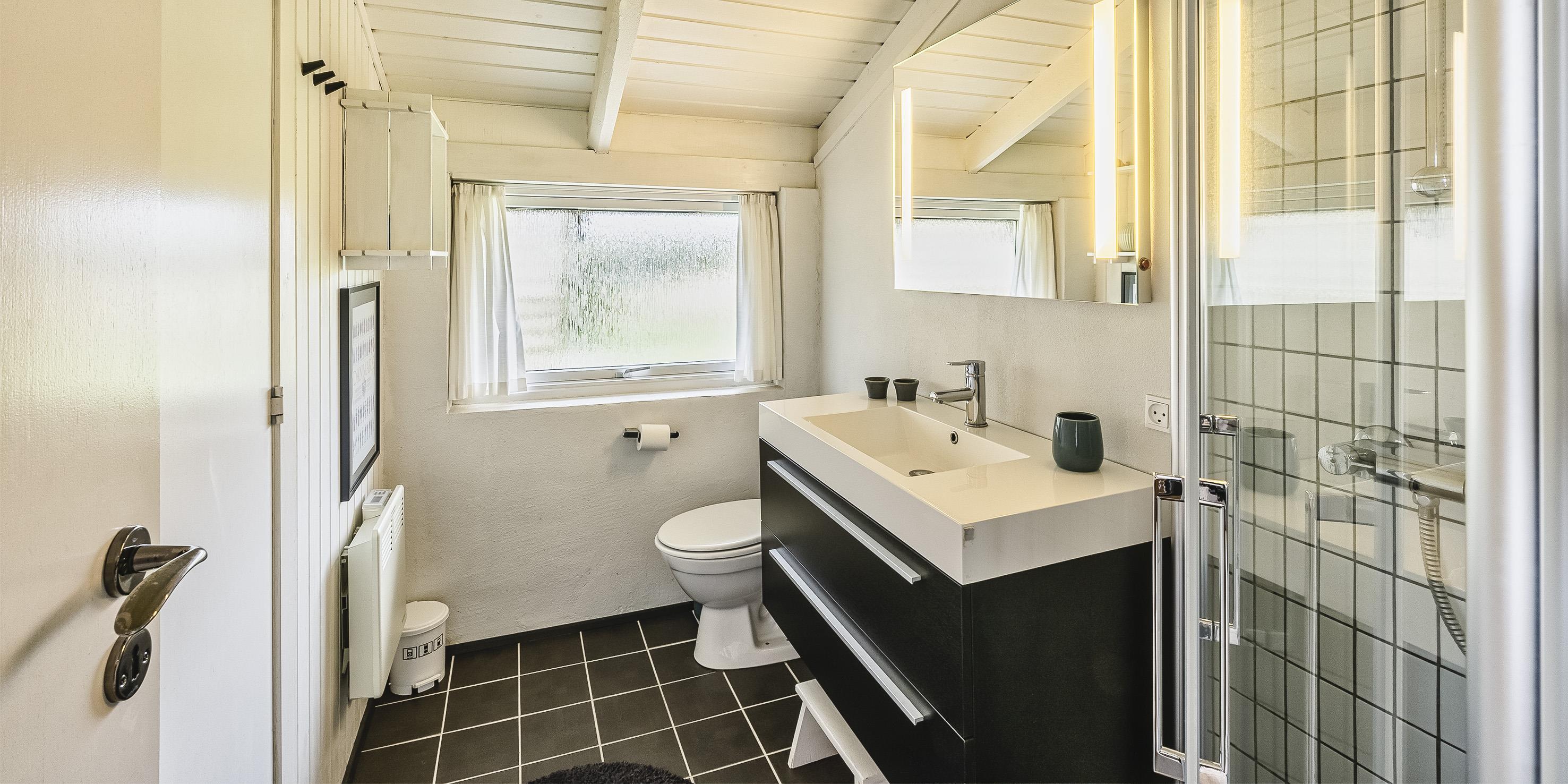 Bad med toilet, bruser og vask