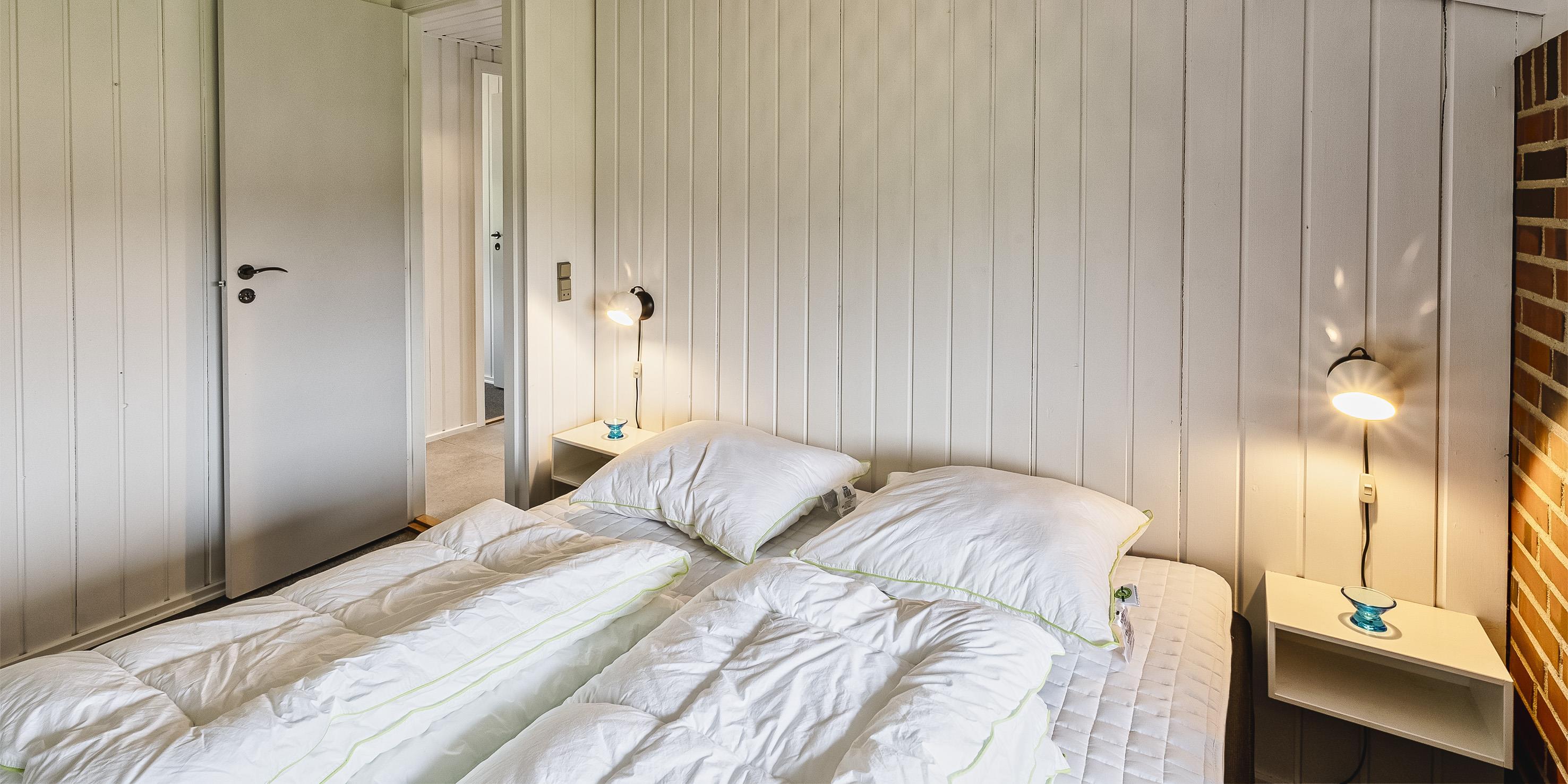 3 soveværelser. 2 med dobbeltseng 160x200 cm. 1 med 1 enkeltseng (á 90x200 cm)