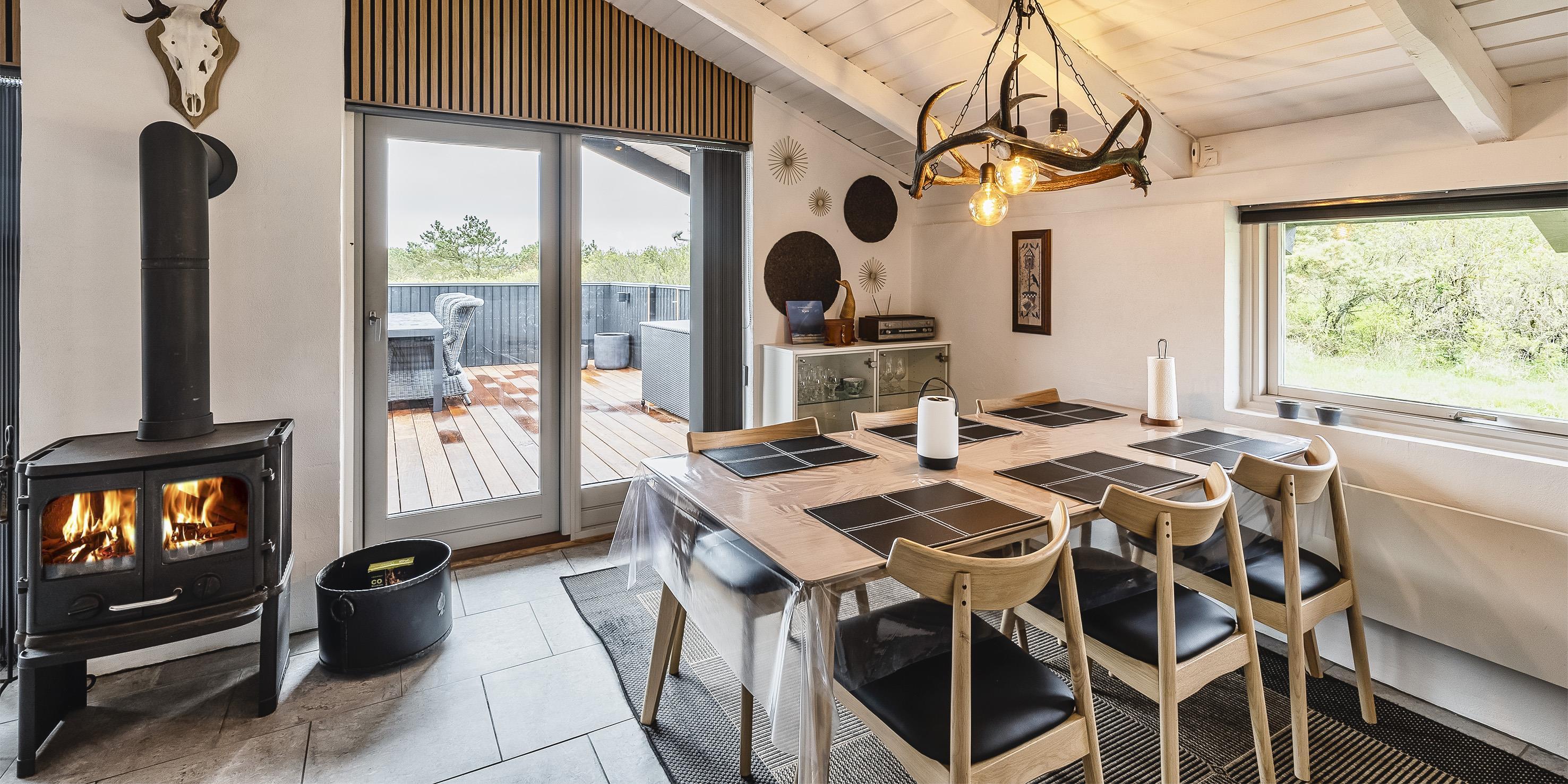 Huset indeholder: Entre / fordelingsgang med god garderobeplads. Fra entreen kommer man direkte ind i huset køkken-alrum som er renoveret i 2021. Køkkenet er med opvaskemaskine, indbygningsovn, keramisk kogeplade, emhætte, køle-/fryseskab. I forbindelse med køkkenet er der en dejlig spiseplads med kig til brændeovnen og med god udsigt til haven, hvor områdets dyreliv kan betragtes. Hyggelig stue med hjørnesofa hvorfra der er kig til brændeovnen, fjernsyn med Stofa-TV (sommerhuspakken) og parabol. Trådløs internetadgang. Dejligt badeværelse (fra 2015) med bruser/wc, bruseniche og ekstra rum med vaskemaskine. 3 soveværelser: DS + DS + ES. Ny sydvendt træterrasse. Carport og skur med plads til cykler. Varmepumpe. Husdyr 1 hund er tilladt. og Rygning er ikke tilladt! Ekstra udgift for vandforbrug. Byggeår 1983, renoveret 2021.
