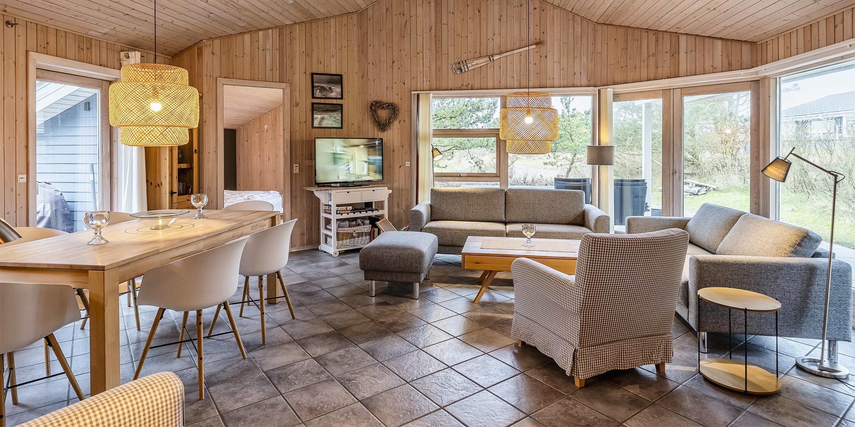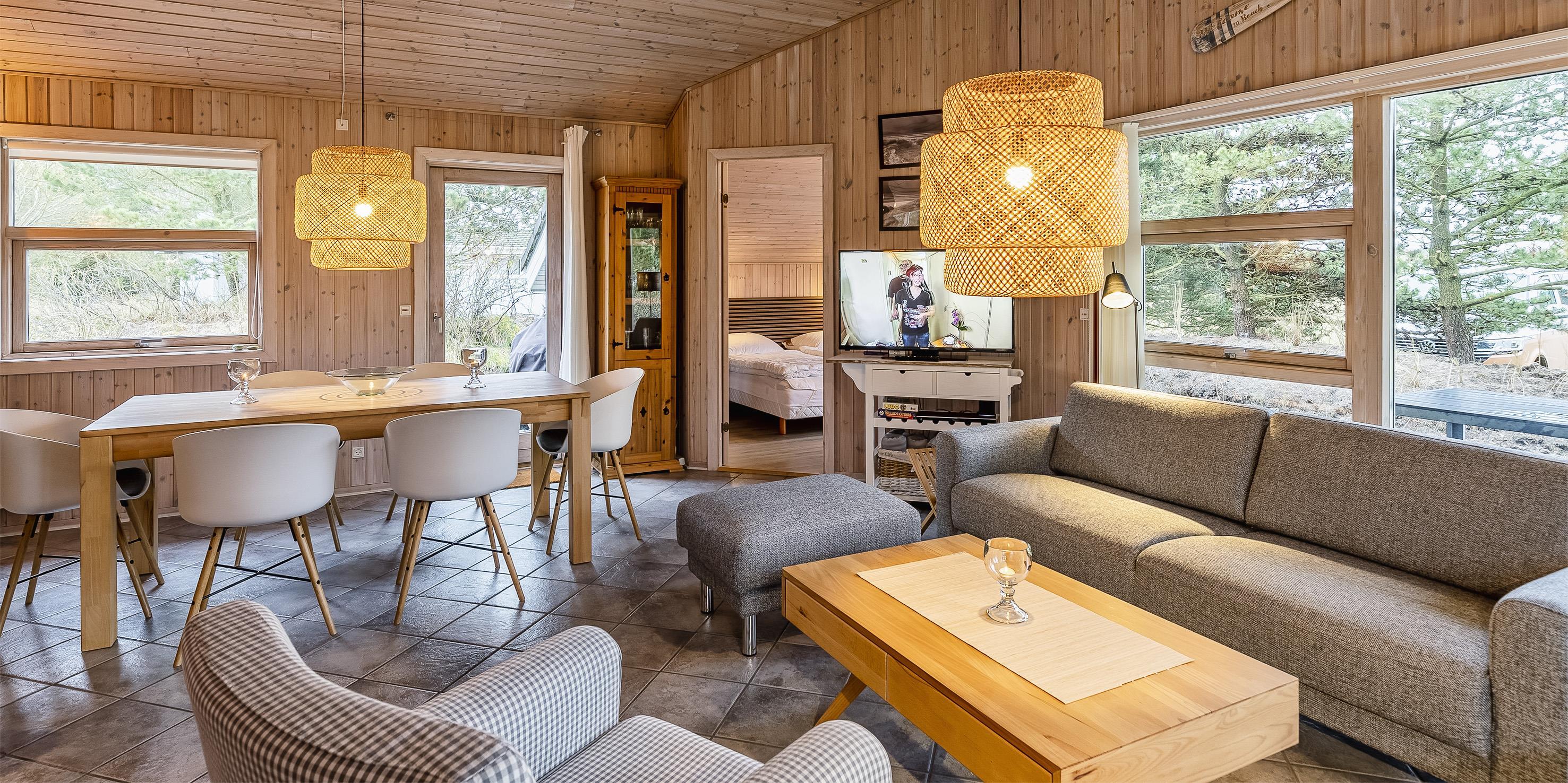 Smagfuldt og flot velholdt sommerhus til 6 personer, beliggende på en 1.515 m2 stor naturgrund, ca. 500 meter fra stranden. Stor lys stue med brændeovn, fjernsyn med parabol (tyske programmer). Der er ingen danske Tv-programmer. Åben køkkenalrum med køle-/frysekombination og opvaskemaskine. Varmepumpe. Masterbadeværelse med bruser/wc, spa og sauna. Entre med vaskemaskine og tørretumbler. Gæstetoilet med bruser. 3 soveværelser: DS + DS + 2S. Der er en dejlig flisebelagt terrasse hvor man kan nyde de skønne aftner. Det er tilladt at medbringe en hund. Rygning ikke tilladt! Trådløs internet (30 Mbit). Byggeår 2003 og renoveret i 2017.
