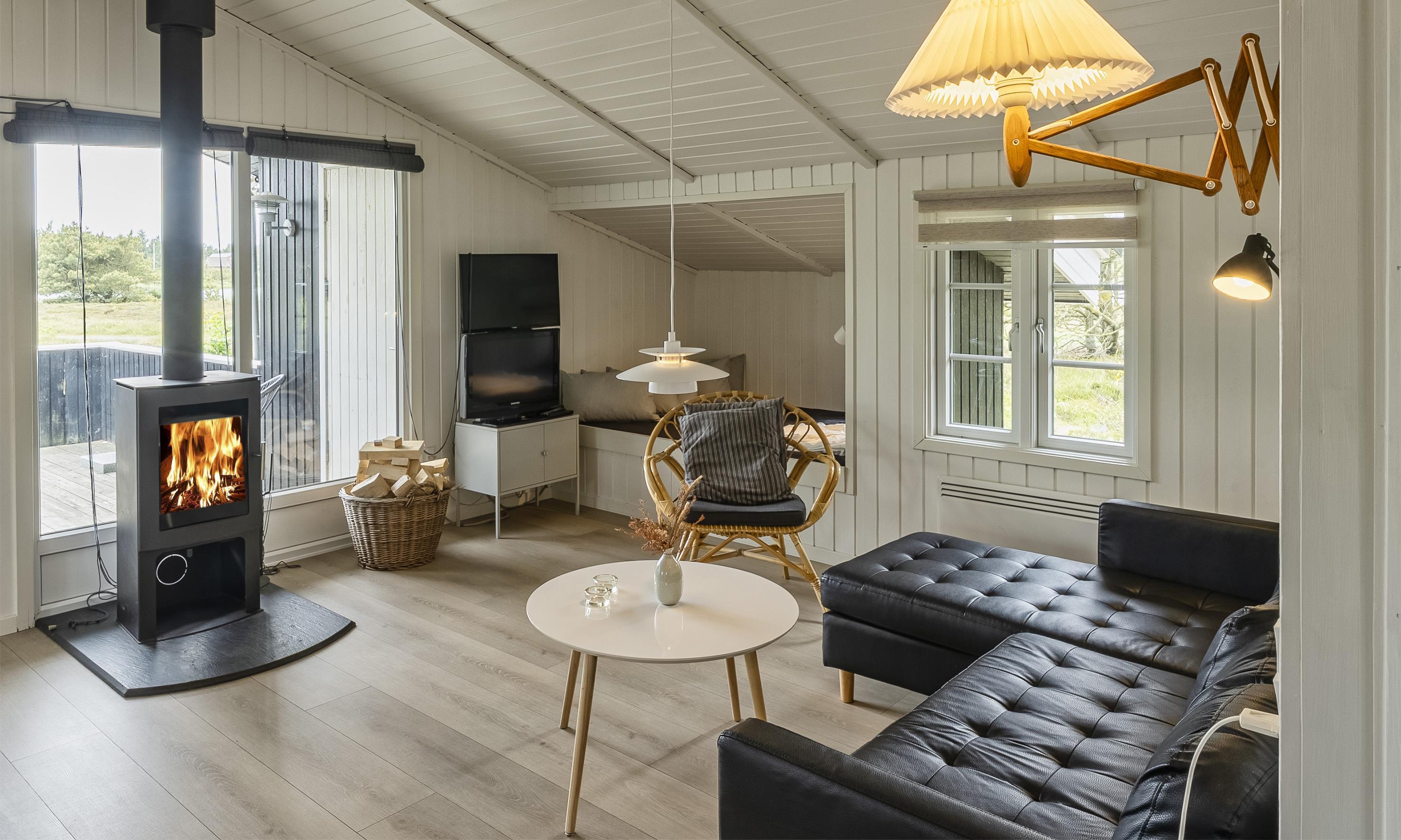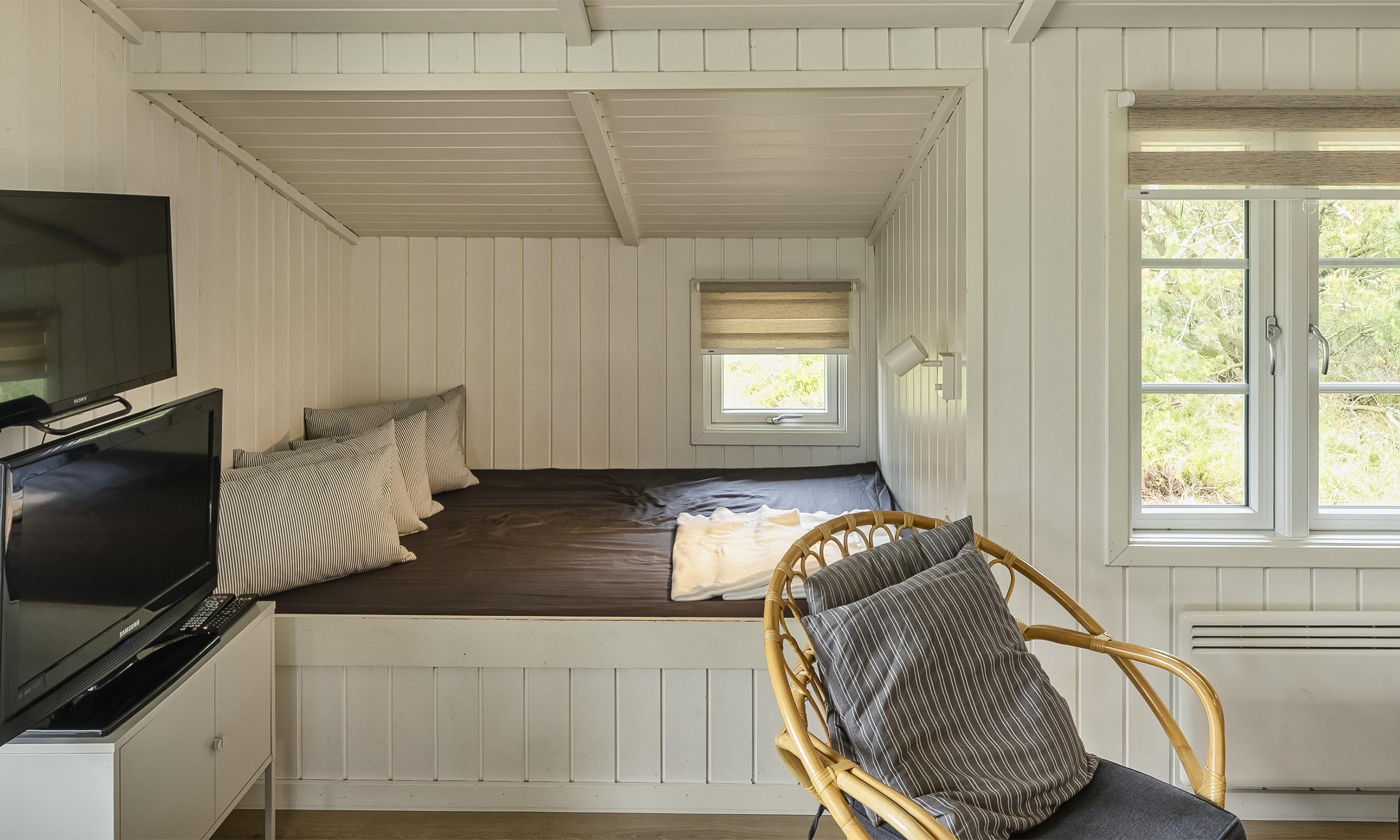 Hyggeligt sommerhus til 4-5 personer, beliggende ned til sø, ca. 1.200 meter fra stranden. Stue med fjernsyn, parabol, brændeovn og alkove (ingen danske programmer). Køkken med opvaskemaskine. 2 soveværelser: DS + DS. Badeværelse med bruser/wc og vaskemaskine. Stor lukket terrasse samt gynge. Trådløs internetadgang. Rygning er ikke tilladt. Byggeår 1988.