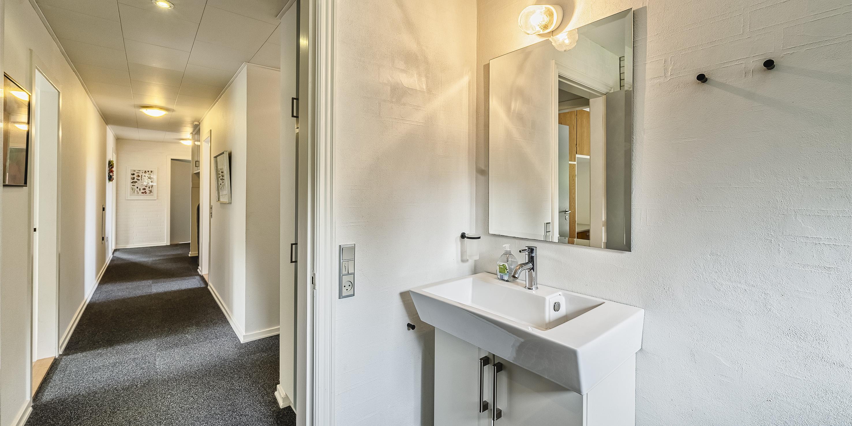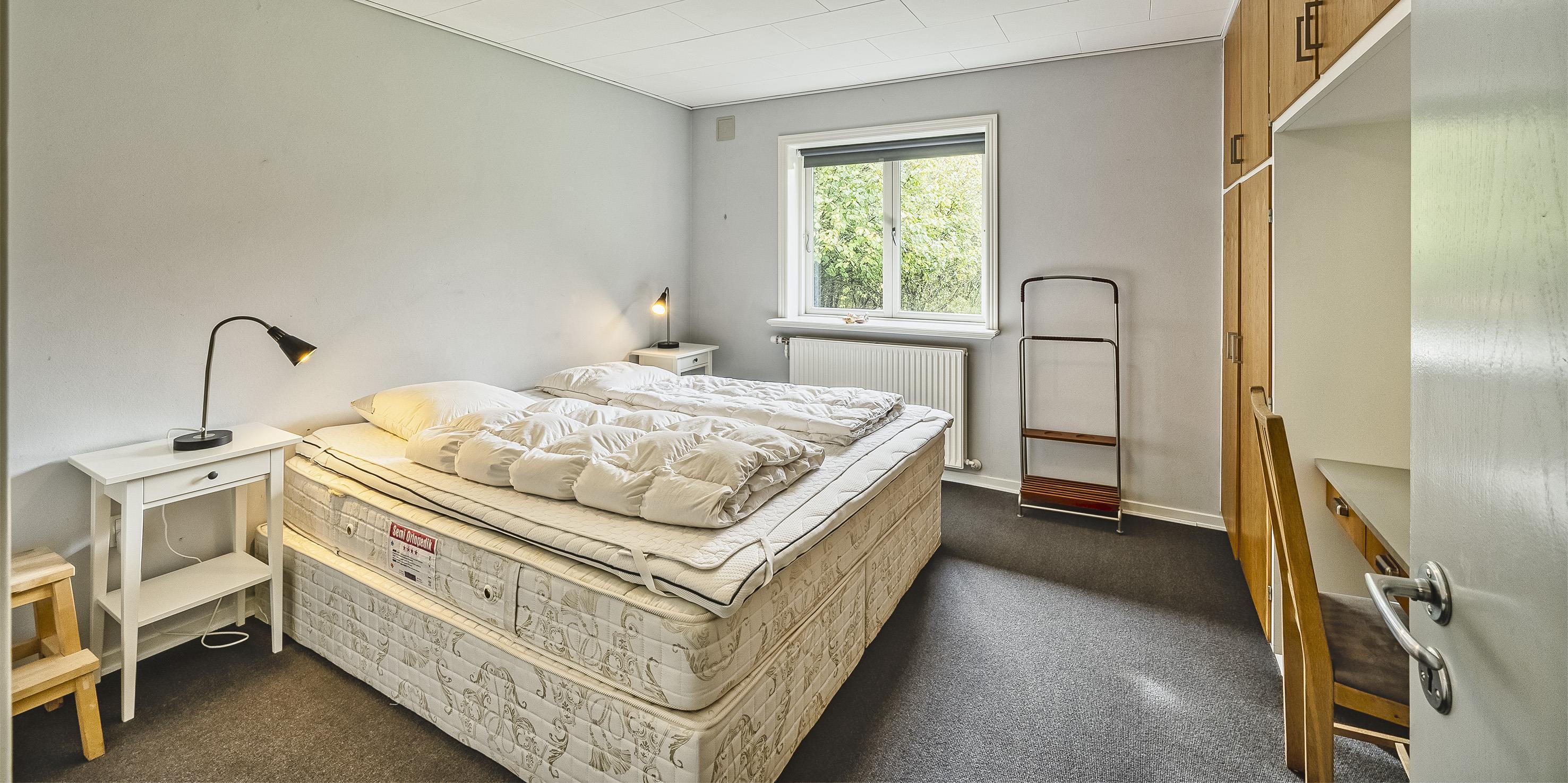 4 soveværelser. 3 med dobbeltseng 180x200 cm. 1 med 2 enkeltsenge (á 90x200 cm)