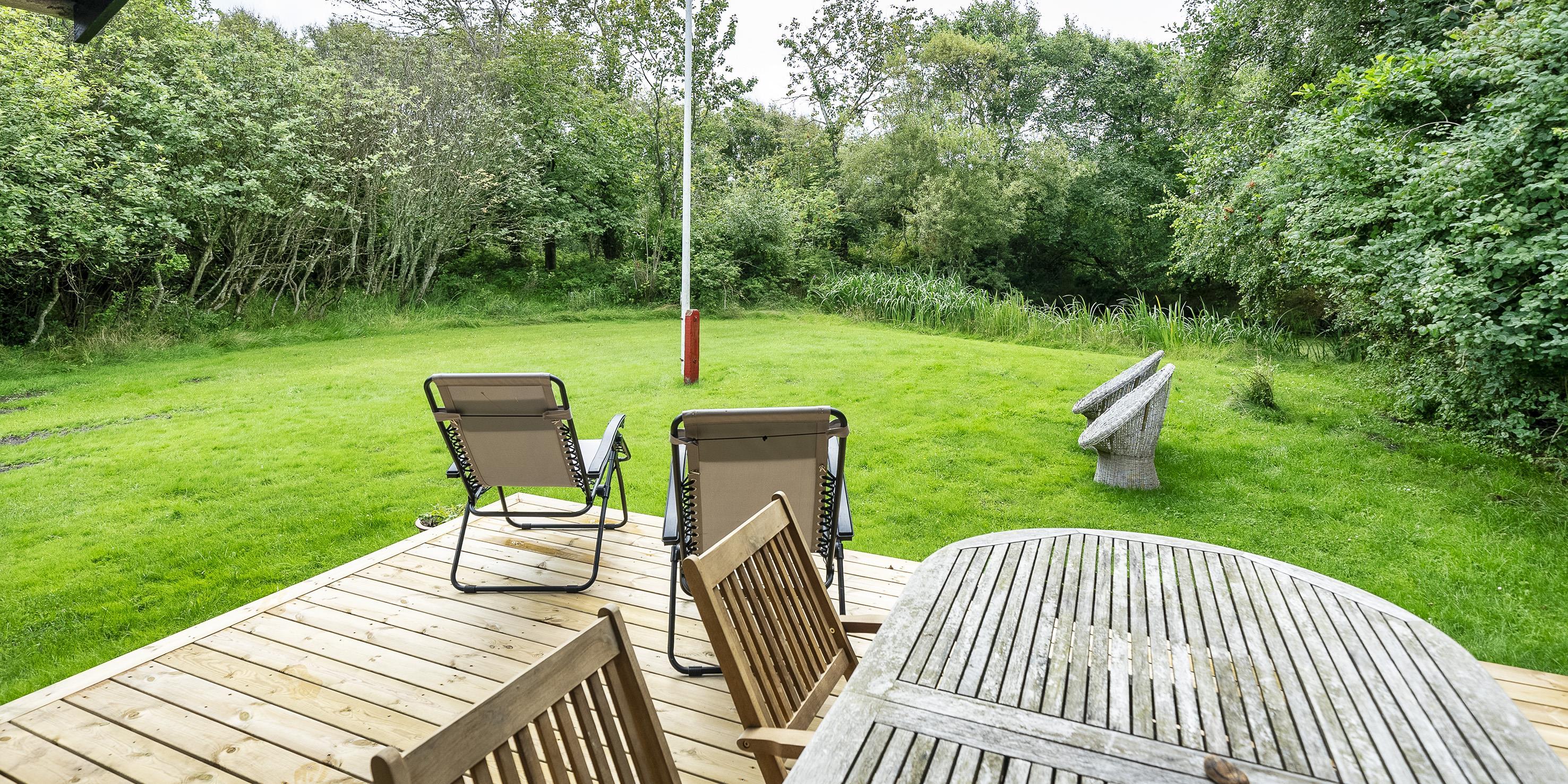 Smagfuldt sommerhus til 7 personer, beliggende på en stor lukket grund, ca. 700 meter fra stranden. Dejlig stue med brændeovn, fjernsyn, danske programmer og parabol (DR programmer). Åbent køkken med opvaskemaskine og køle-/frysekombination. 4 soveværelser: DS + DS + DS + 1 sovesofa. 2 Badeværelser med bruser/wc. Vaskemaskine. Stor overdækket terrasse, samt stor sydvendt terrasse. Der er i alt 3 terrasser ved huset. På grunden er der en dejlig lille sø, hvor der næsten dagligt er besøg af krondyr. Husdyr er ikke tilladt - dog med undtagelse af en lille hund! Trådløs Internet. Rygning er ikke tilladt.