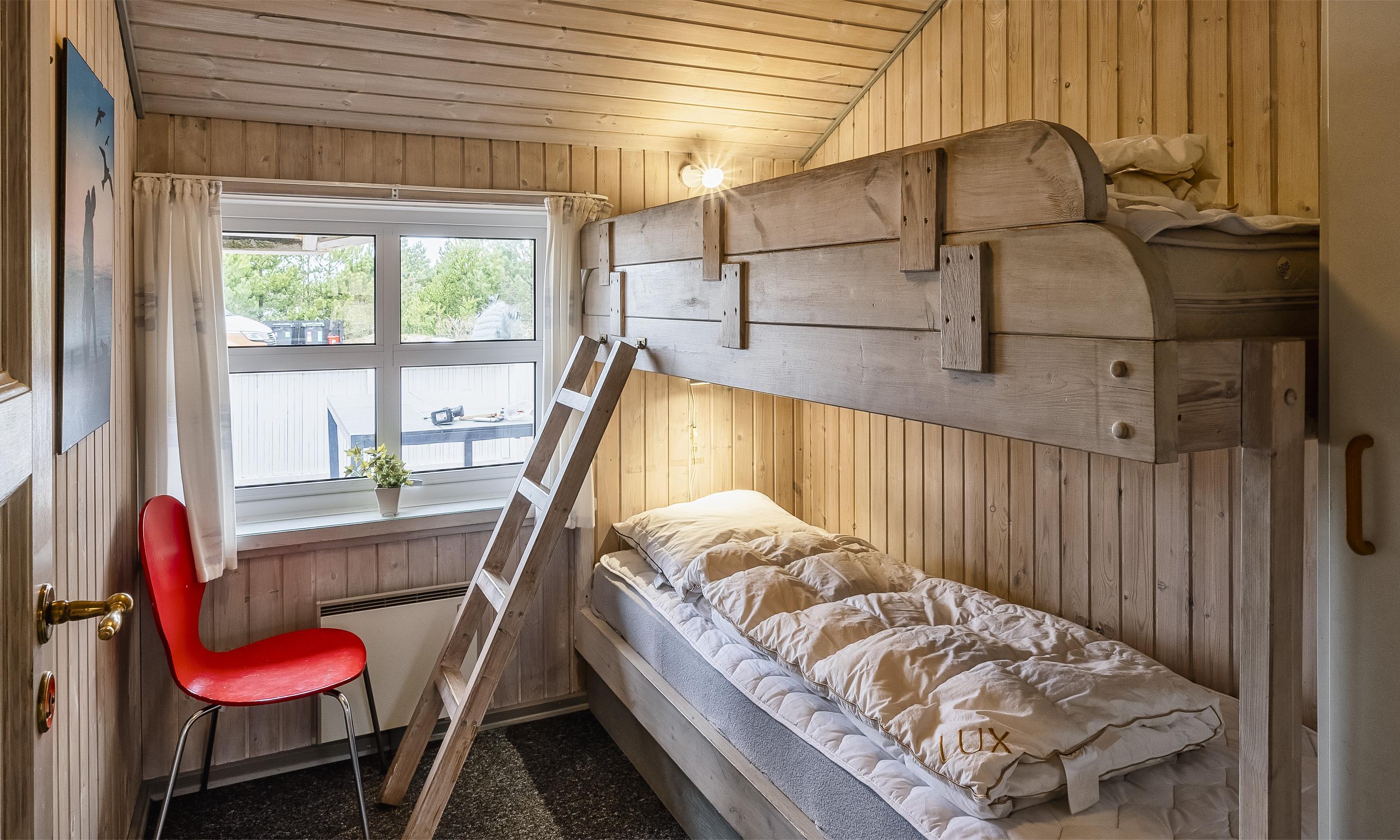 4 soveværelser. 2 med dobbeltseng 180x200 cm. 1 med small dobbeltseng 120x200 cm. 1 med køjeseng.