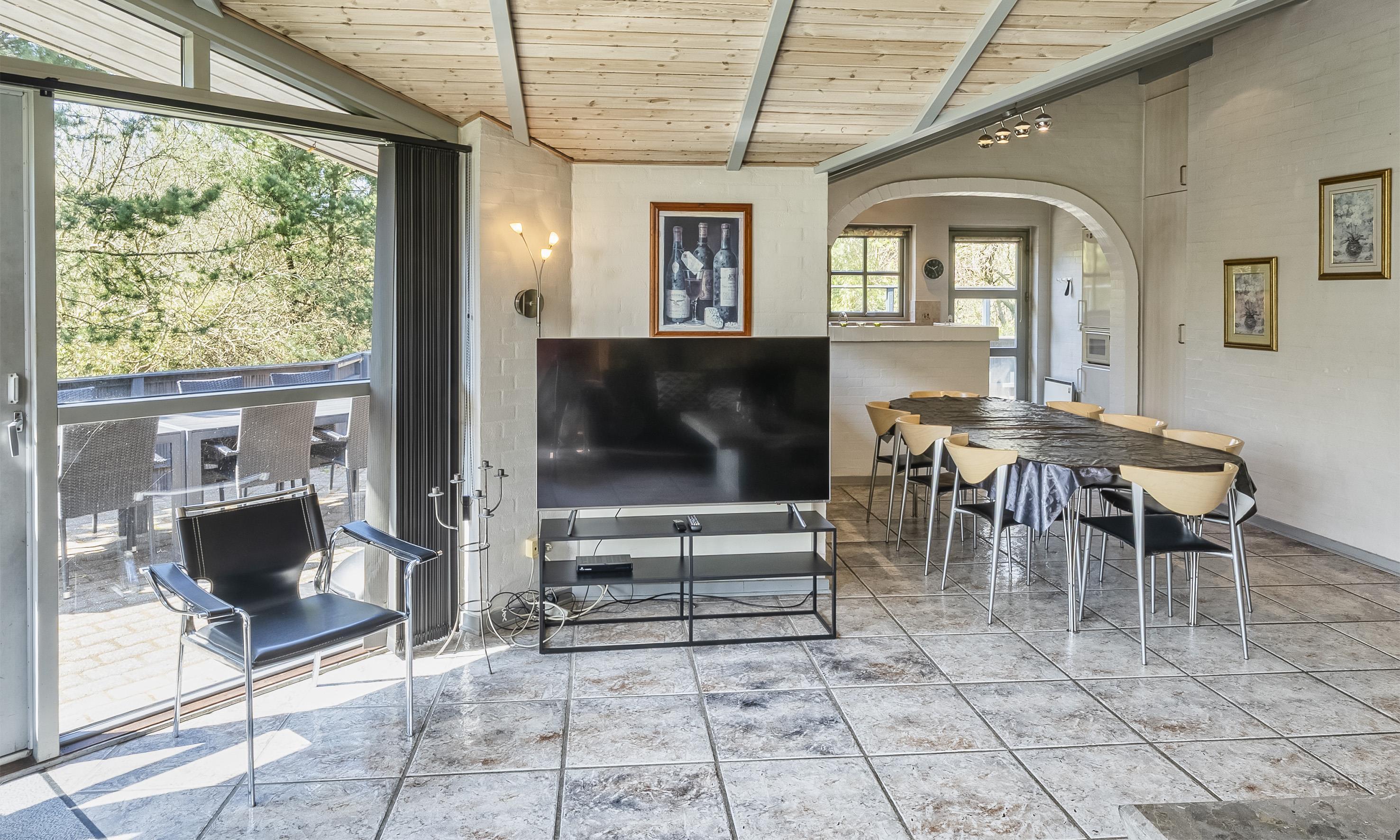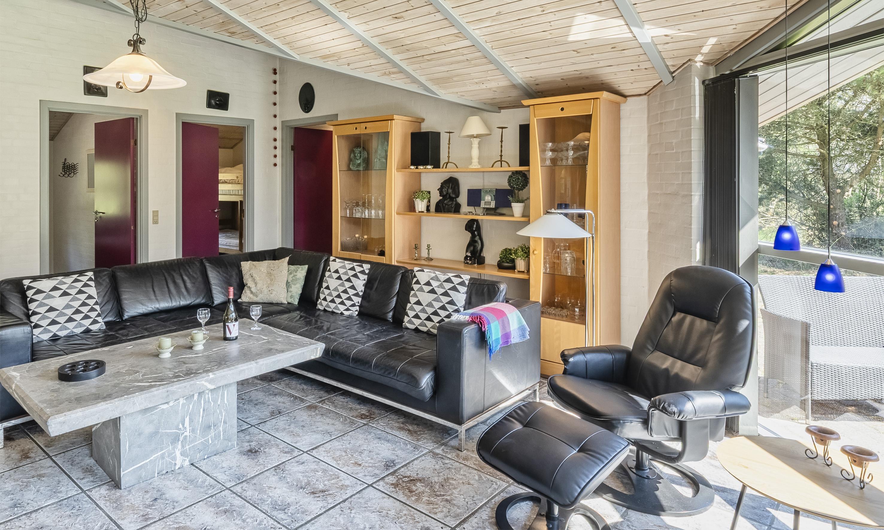 Smagfuldt sommerhus til 8 personer, beliggende på stor naturgrund, ca. 1.000 meter fra stranden. Åbent køkken med opvaskemaskine. Stue med brændeovn og fjernsyn (DR programmer). Badeværelse med bruser/wc og spa. Gæstetoilet med bruser. Sauna, vaskemaskine og tørretumbler. 4 soveværelser: DS + DS + DS + 2S. 2 soveværelser med hver 1 dobbeltseng, 1 soveværelse med smal dobbeltseng og 1 soveværelse med 1 køjeseng (90 x 200). Stor lukket terrasse. Husdyr er ikke tilladt! Varmepumpe. Trådløs internet. Byggeår 1995.
