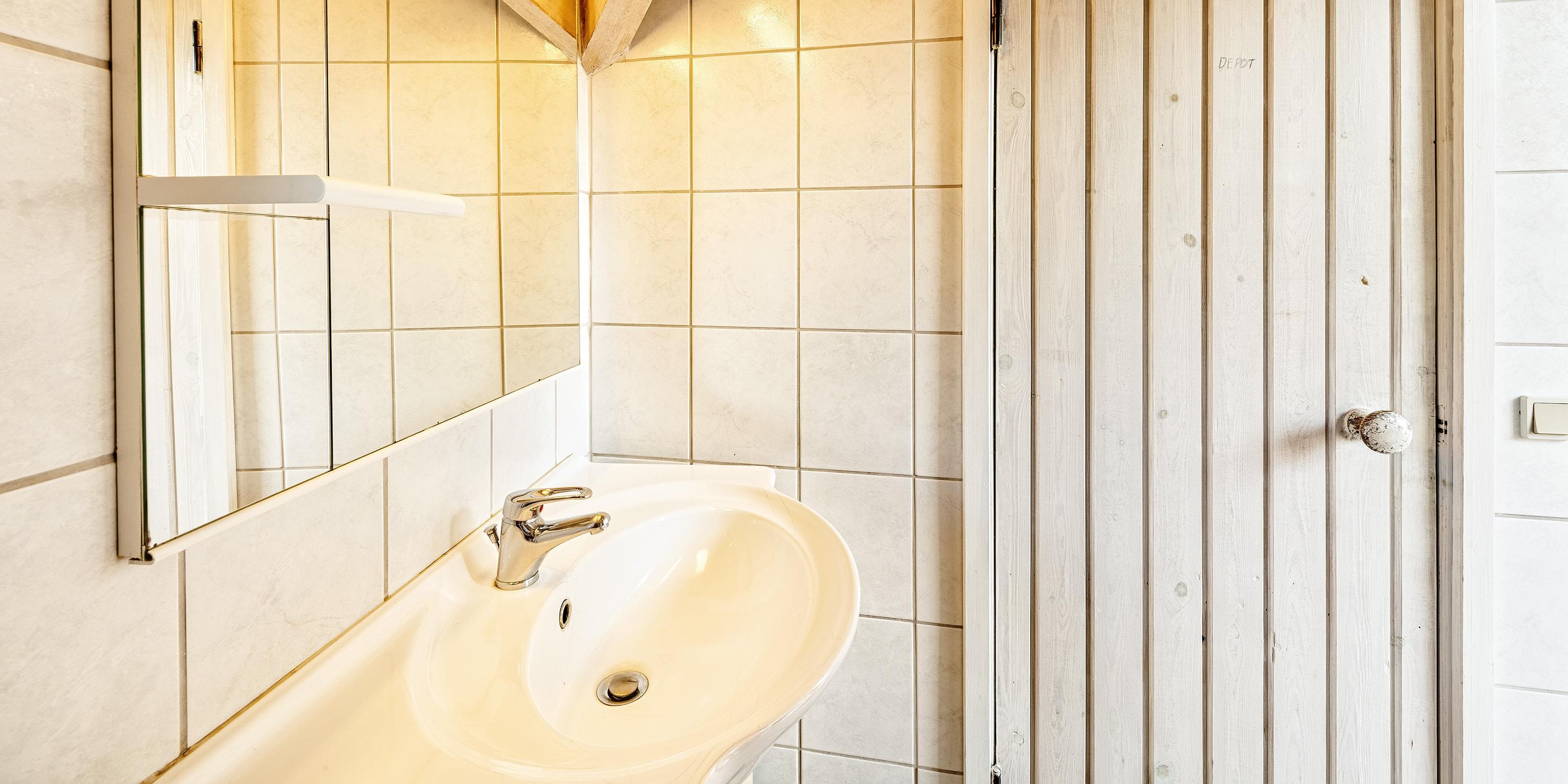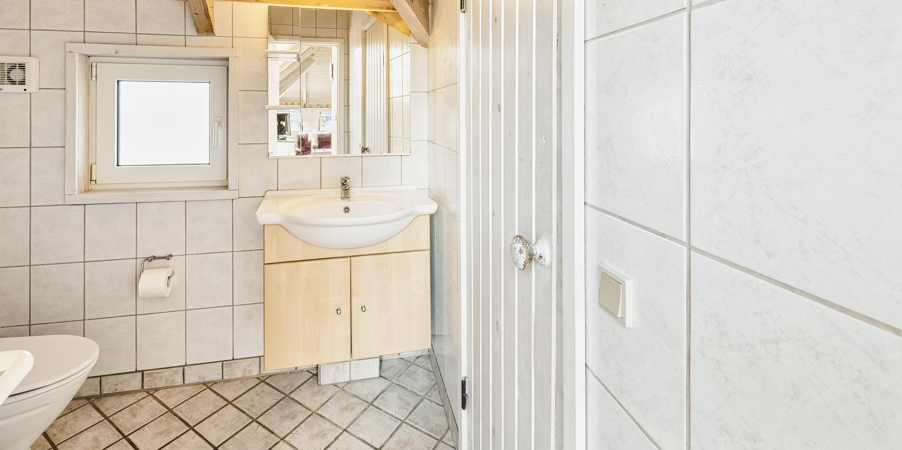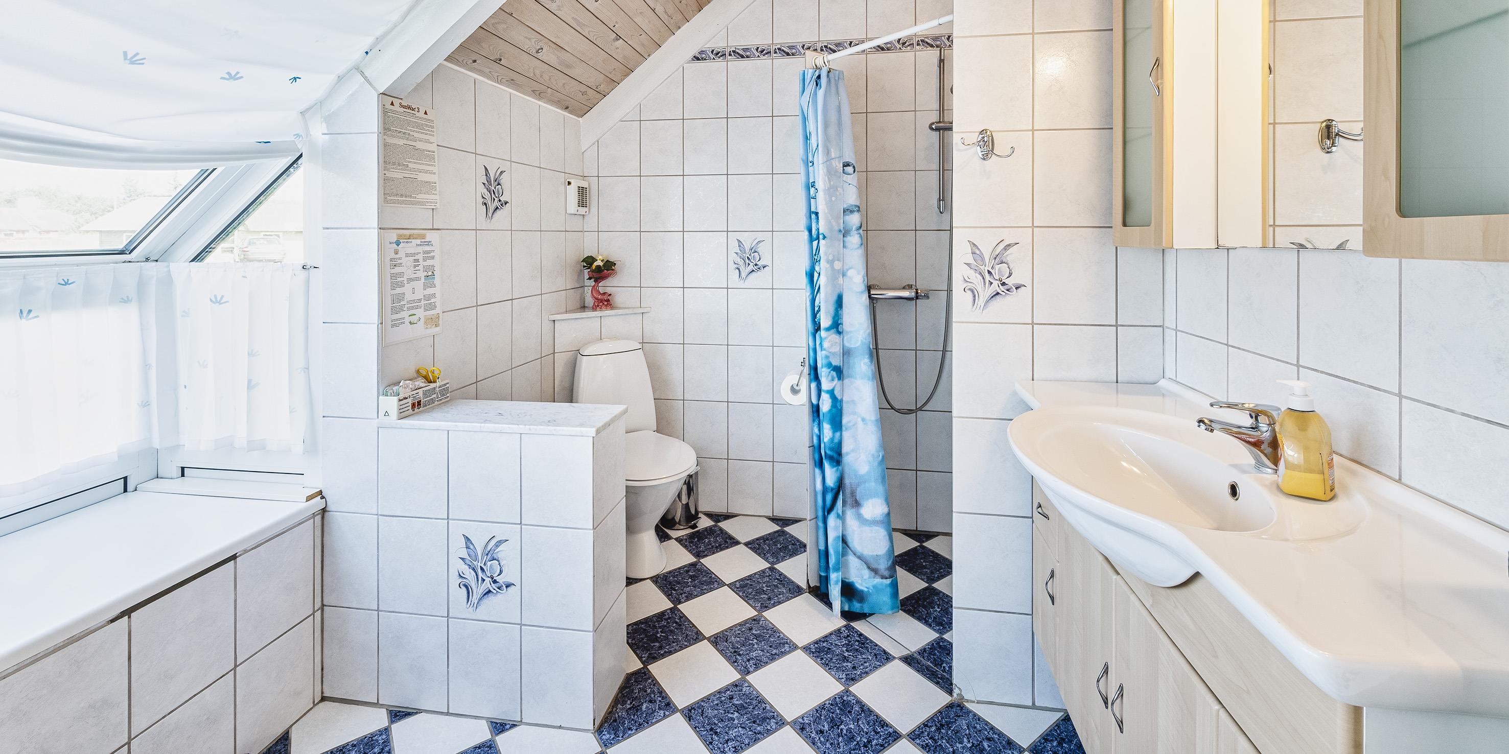 Bad med toilet, bruser og vask