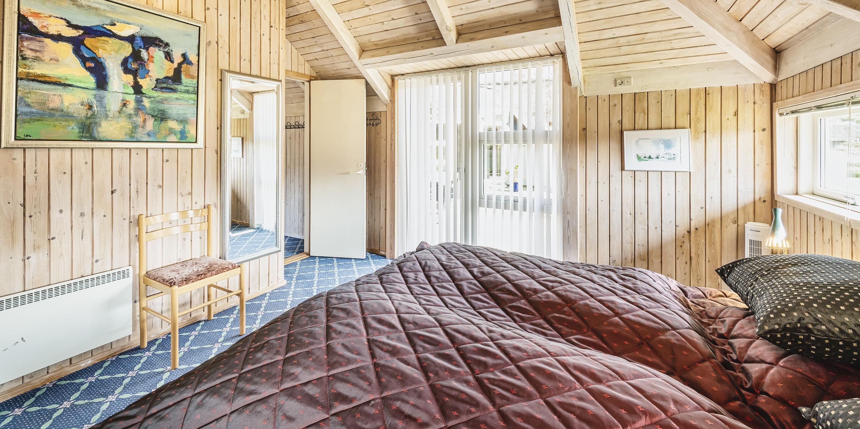 5 soveværelser. 2 med dobbeltseng 180x200 cm. 3 med 2 enkeltsenge (á 90x200 cm)