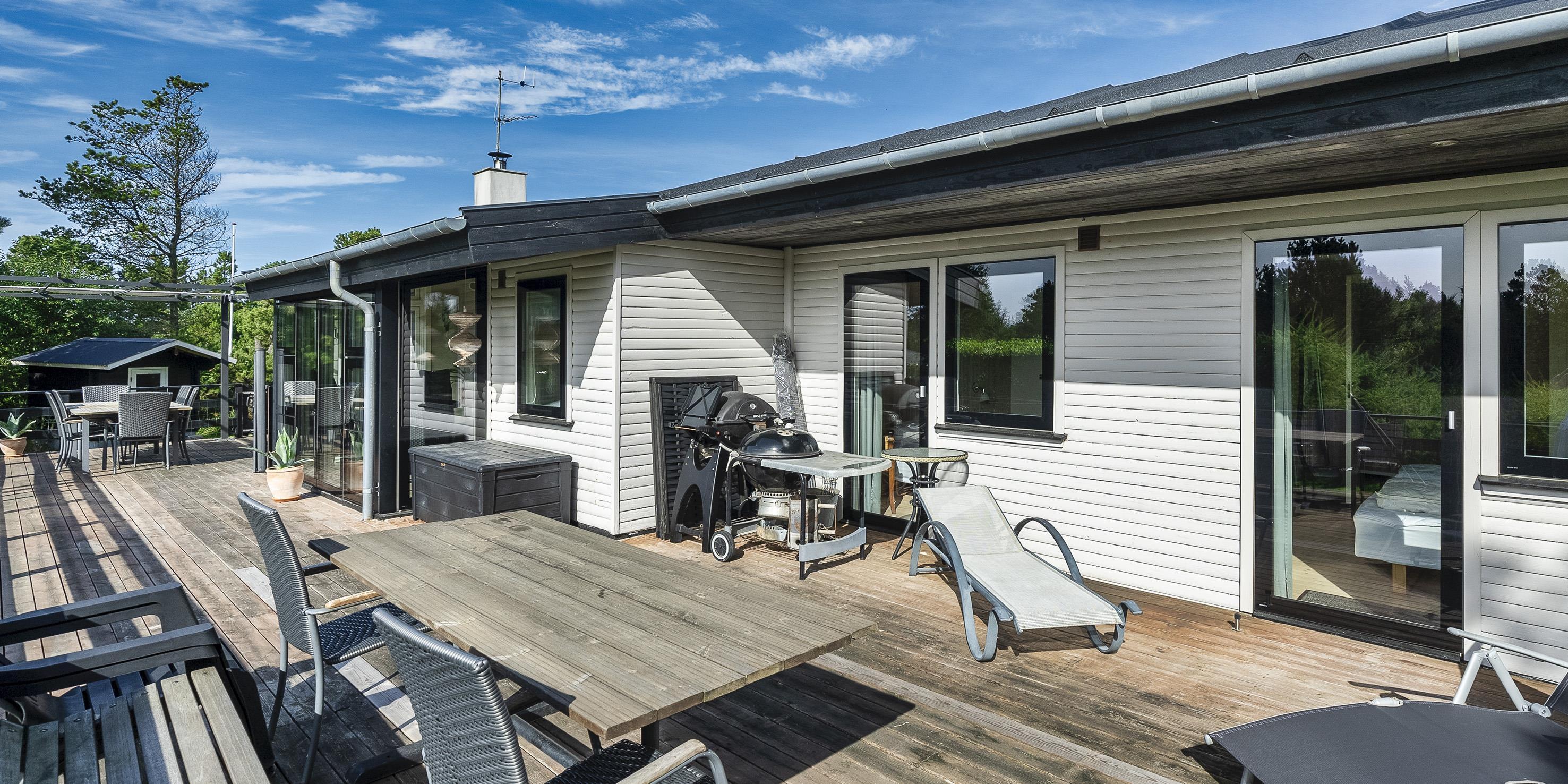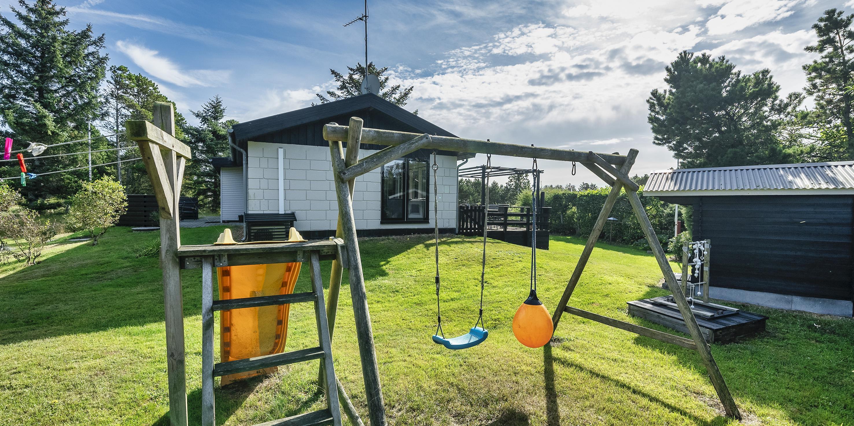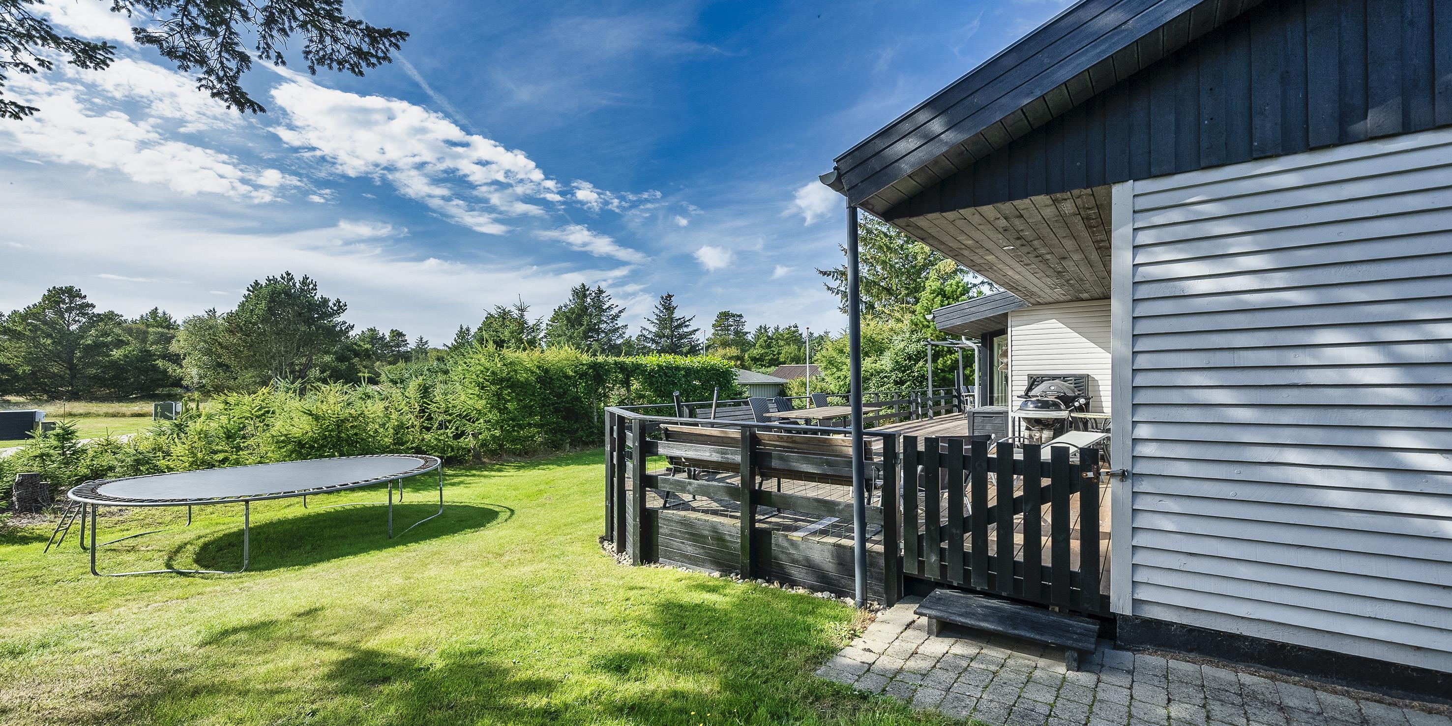 Hyggeligt sommerhus til 6 personer, beliggende på naturskøn grund, ca. 1.200 meter fra stranden. Stue med brændeovn, fjernsyn, Chromecast og parabol (DR programmer). Køkken med opvaskemaskine, mikroovn og fryser. 3 soveværelser: DS + DS + DS. Badeværelse med bruser/wc og gulvvarme. Vaskemaskine og tørretumbler. Trådløs Internetadgang. Varmepumpe. Rygning er ikke tilladt. Legeplads til børn. o nye terrasser, den ene stor samt lukket. Trampolin. Kulgrill og legehus til rådighed. Pergola/pavillion. Byggeår 1964, renoveret 1995.