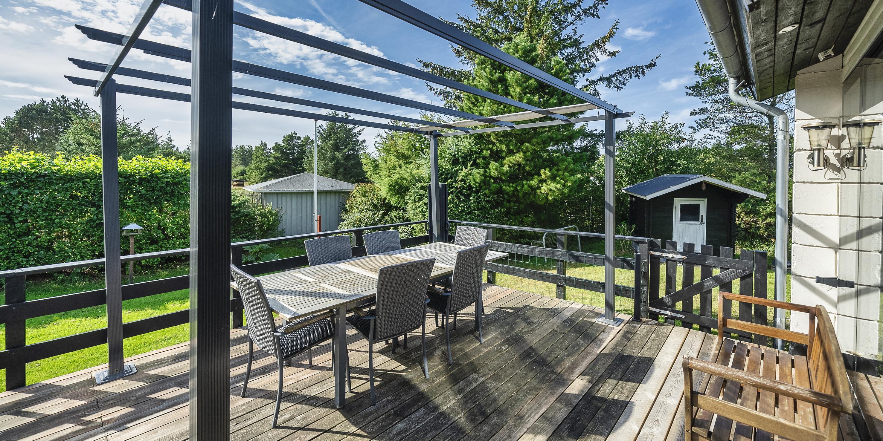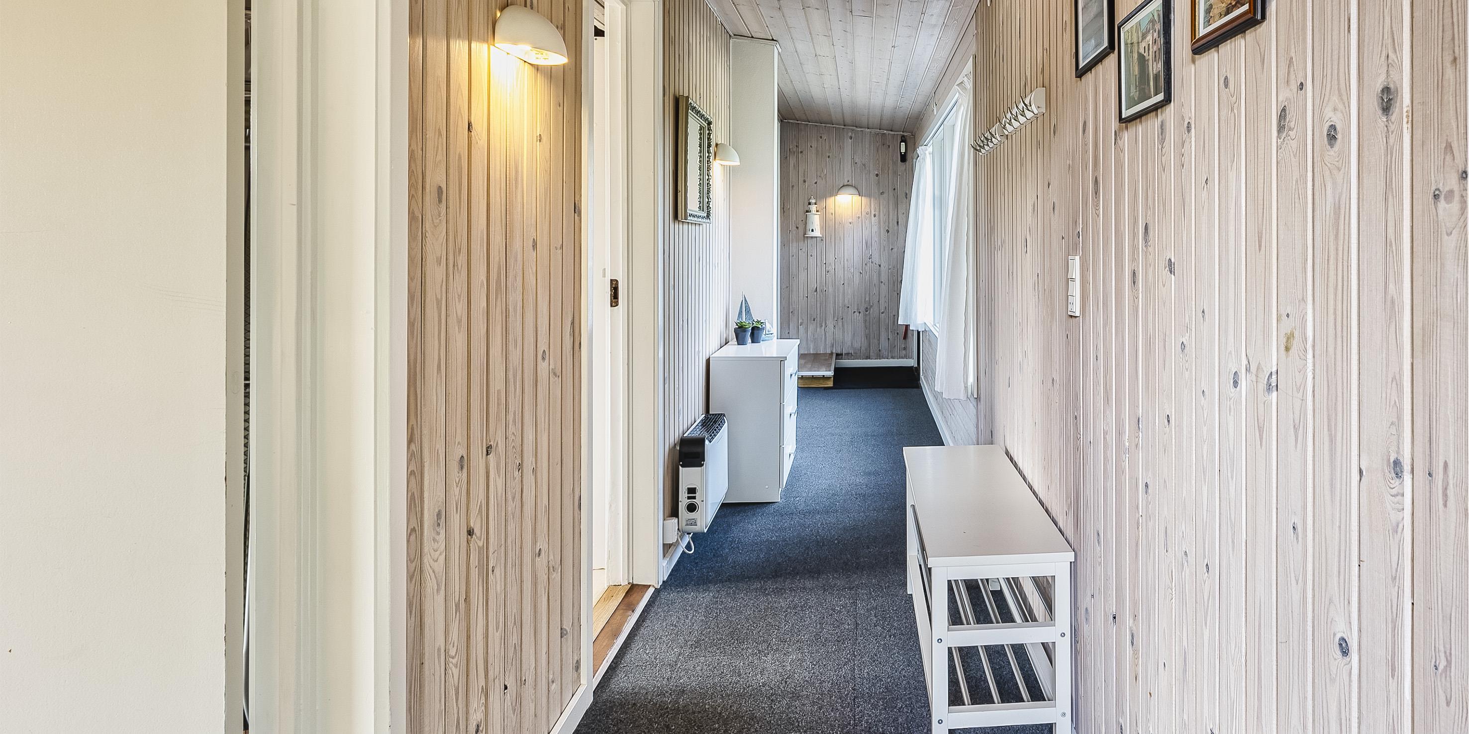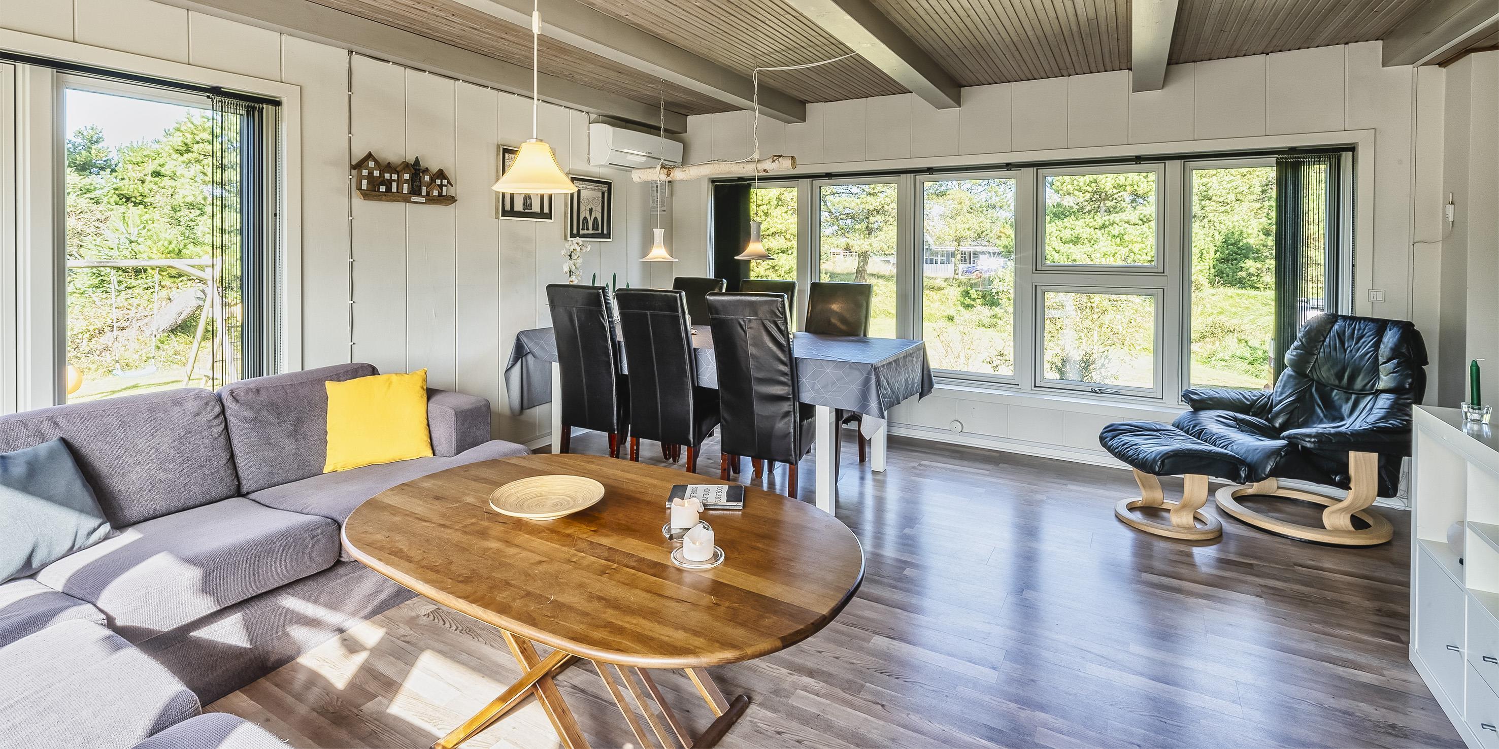Hyggeligt sommerhus til 6 personer, beliggende på naturskøn grund, ca. 1.200 meter fra stranden. Stue med brændeovn, fjernsyn, Chromecast og parabol (DR programmer). Køkken med opvaskemaskine, mikroovn og fryser. 3 soveværelser: DS + DS + DS. Badeværelse med bruser/wc og gulvvarme. Vaskemaskine og tørretumbler. Trådløs Internetadgang. Varmepumpe. Rygning er ikke tilladt. Legeplads til børn. o nye terrasser, den ene stor samt lukket. Trampolin. Kulgrill og legehus til rådighed. Pergola/pavillion. Byggeår 1964, renoveret 1995.