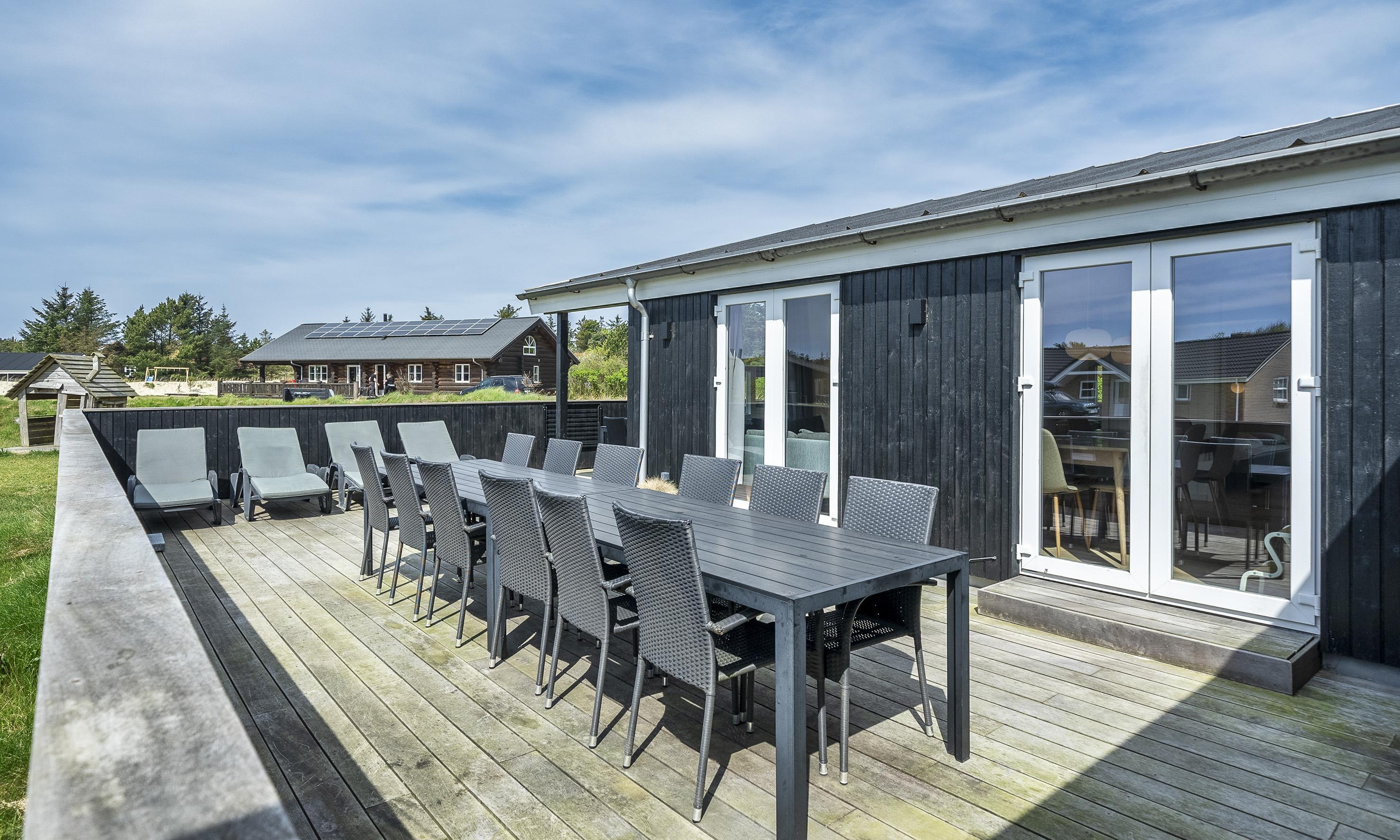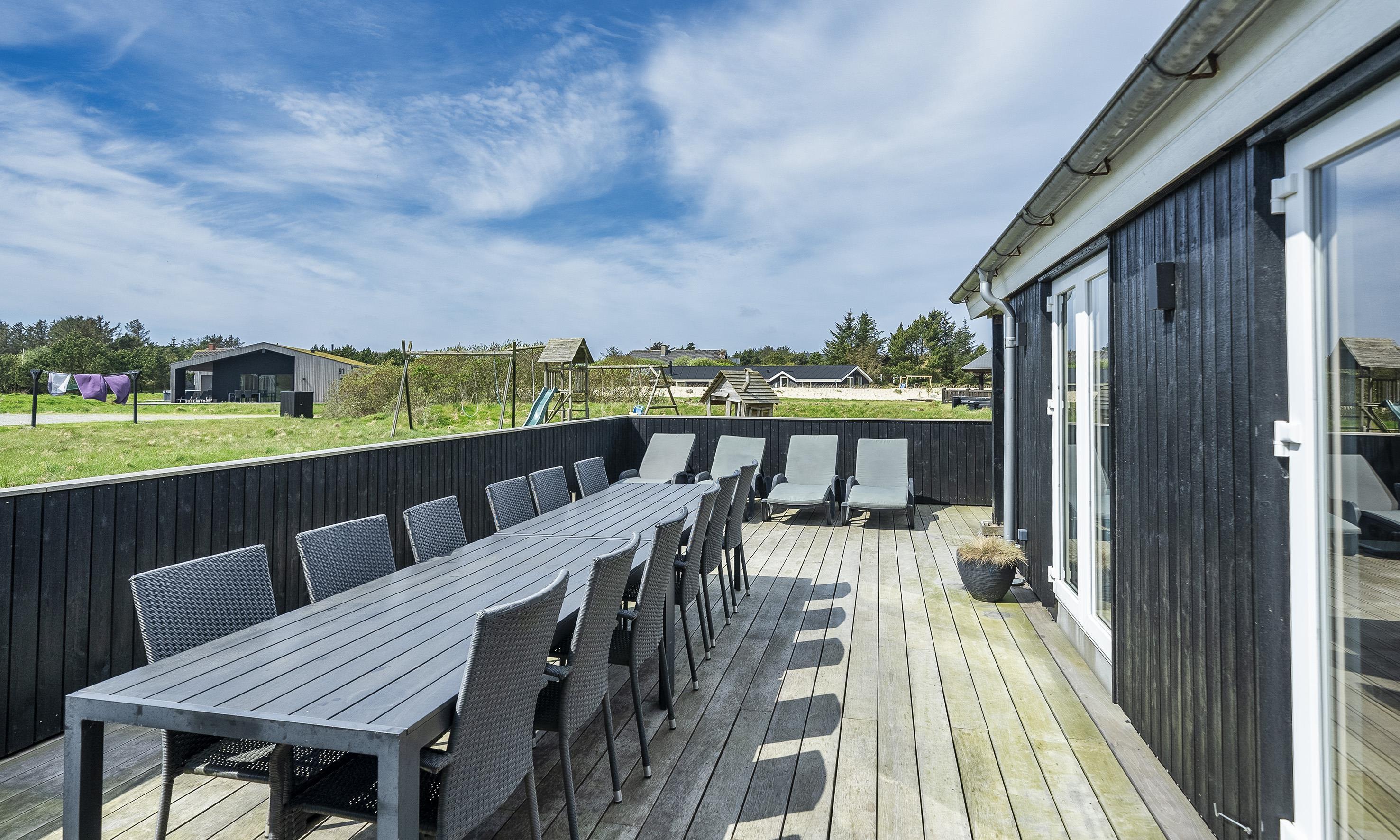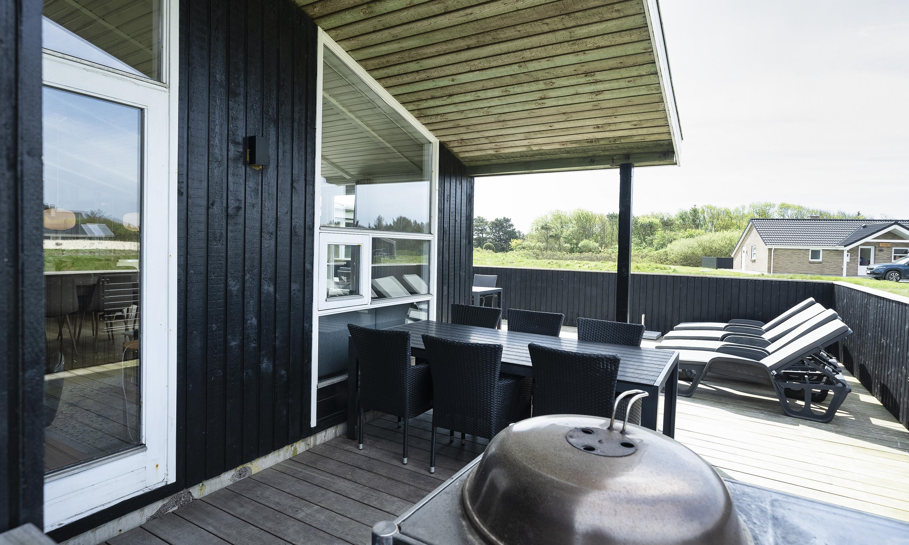 Dejlig stor lukket træterasse med mulighed for at sidde ude om sommeren og spise og grille på husets gasgrill.