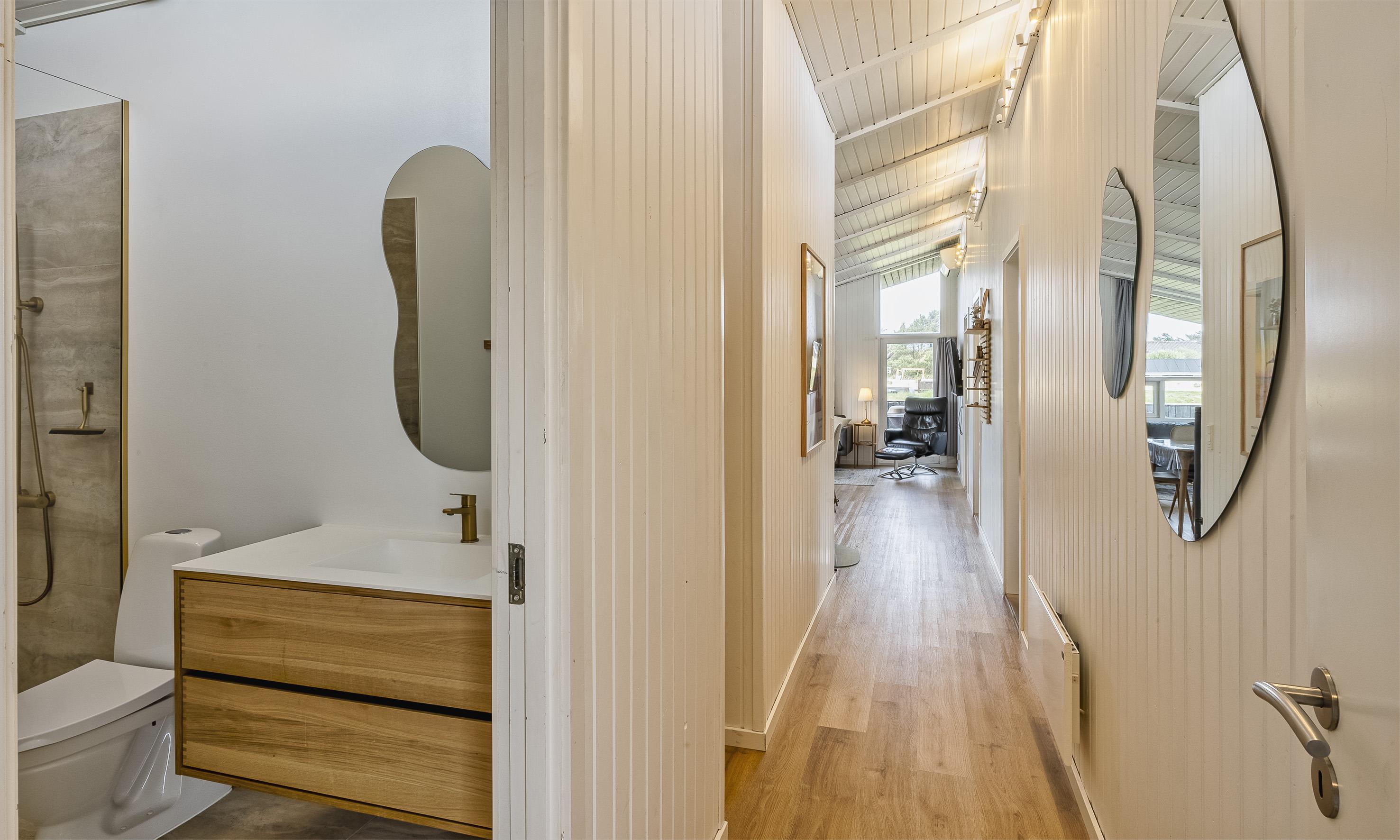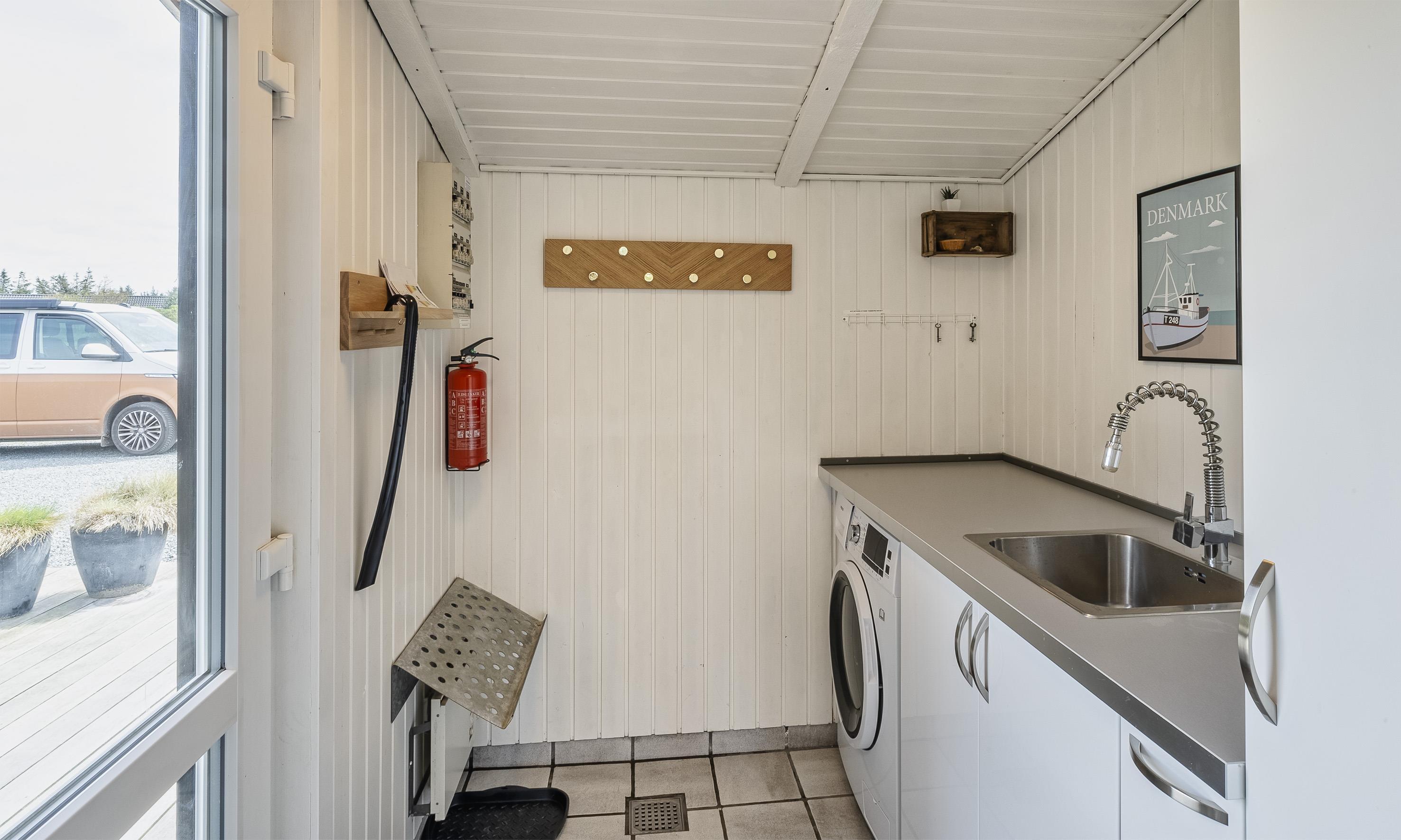 Huset rummer i alt 2 badeværelser med wc og bruser samt vaskemaskine og tørretumbler.