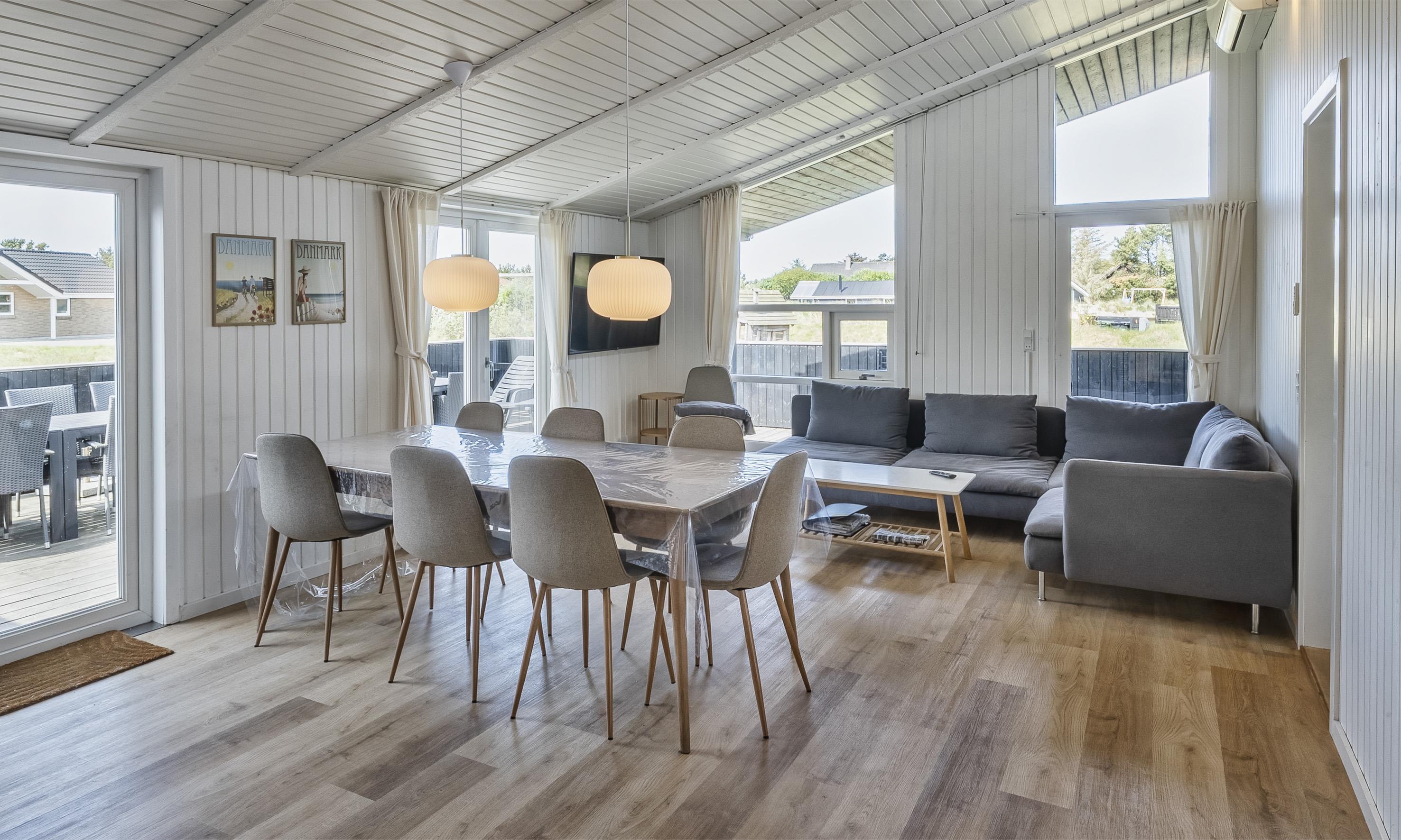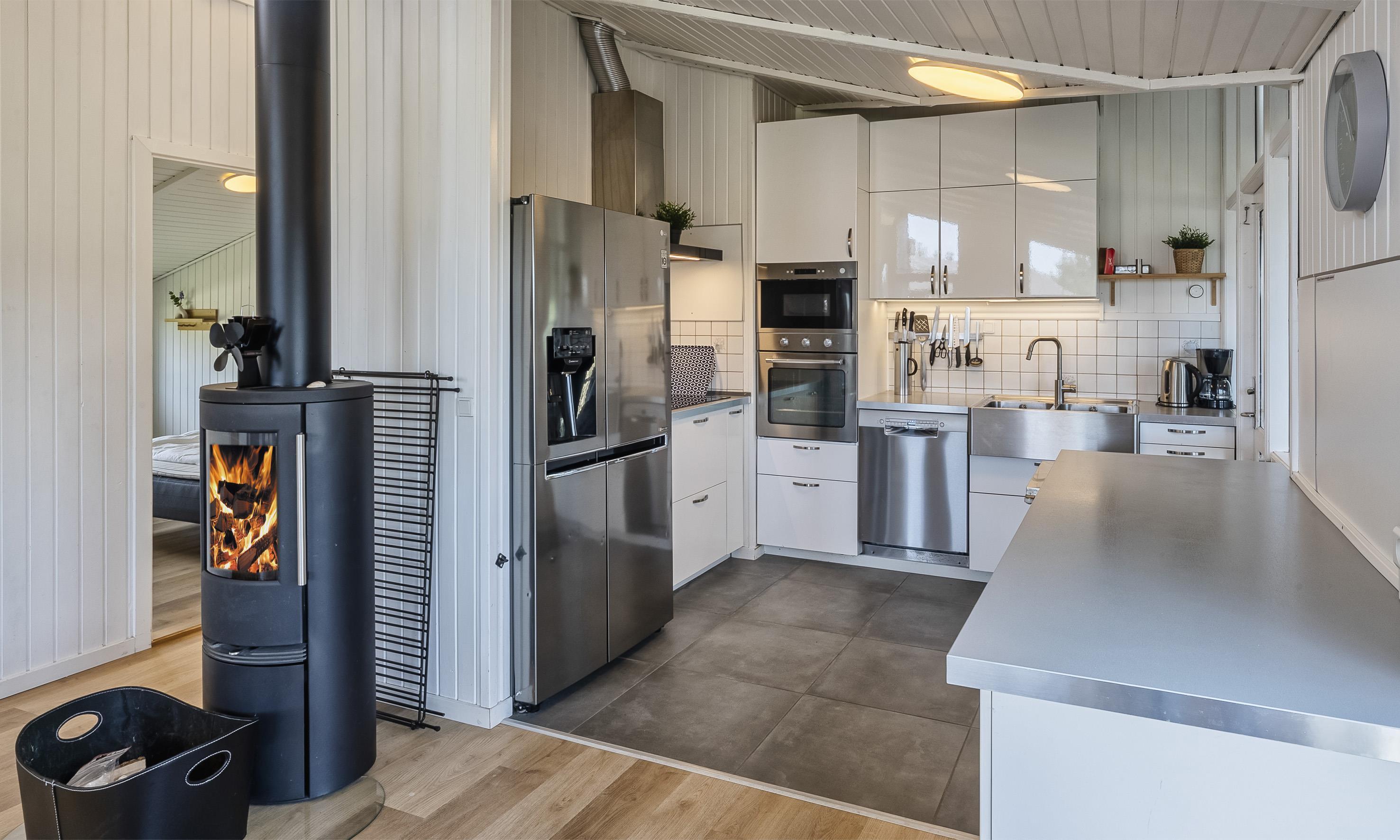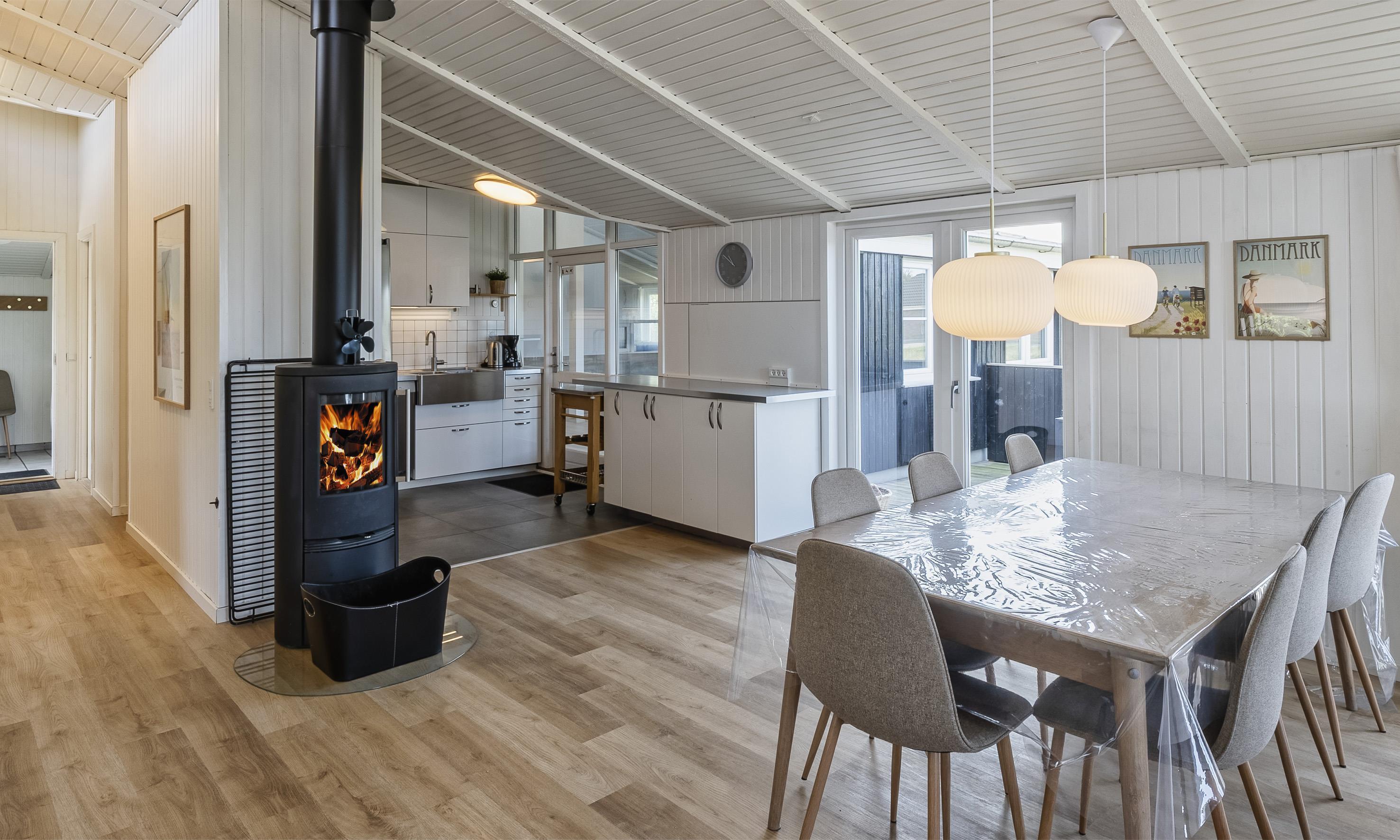 Huset indeholder: 5 soverum med DS+DS+DS+2S+2S. Dejligt lyst køkken med Microovn, opvaskemaskine, køleskab og fryser. Den velindrettede stue er i åbent forbindelse med køkken og indeholder brændeovn, smart-v med danske og tyske kanaler samt der er mulighed for streming. Der er internetadgang. Der er varmepumpe i huset.