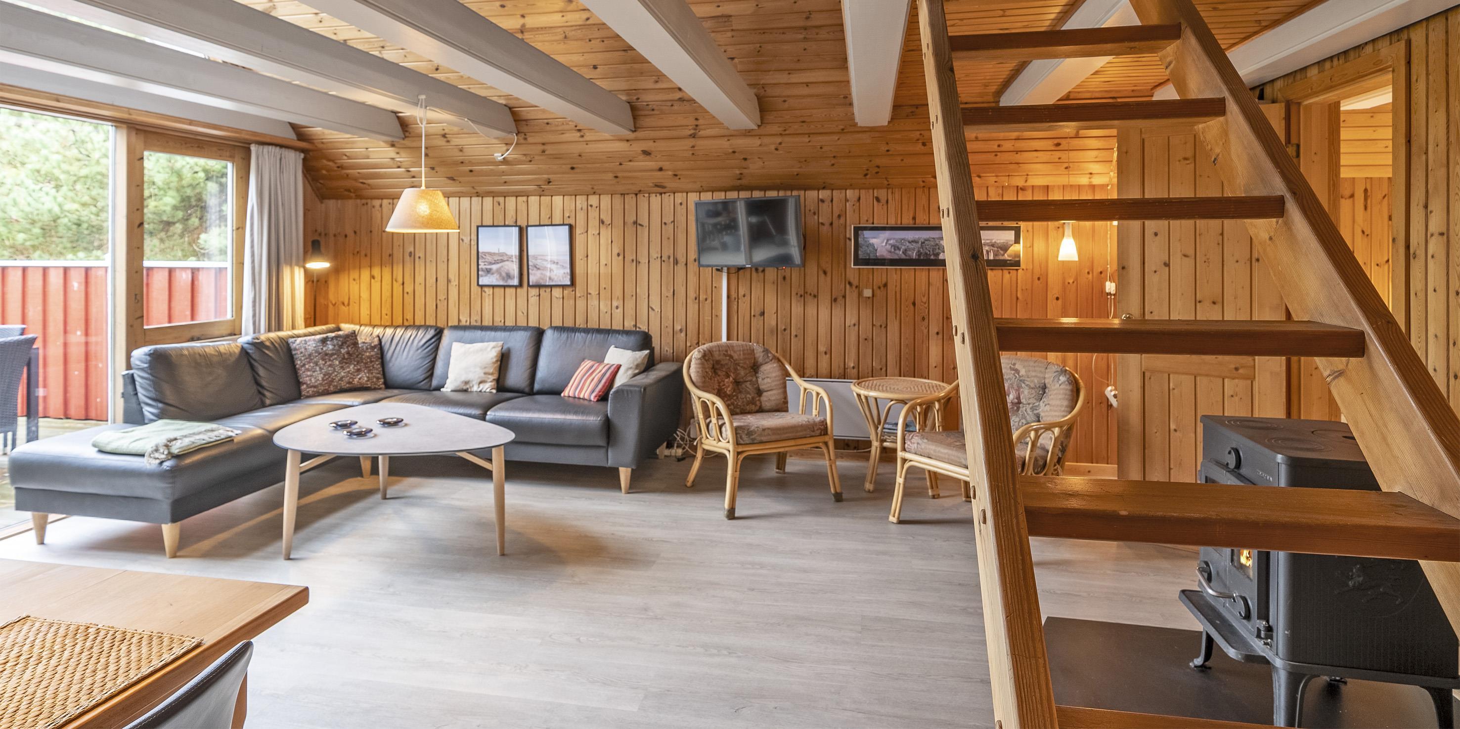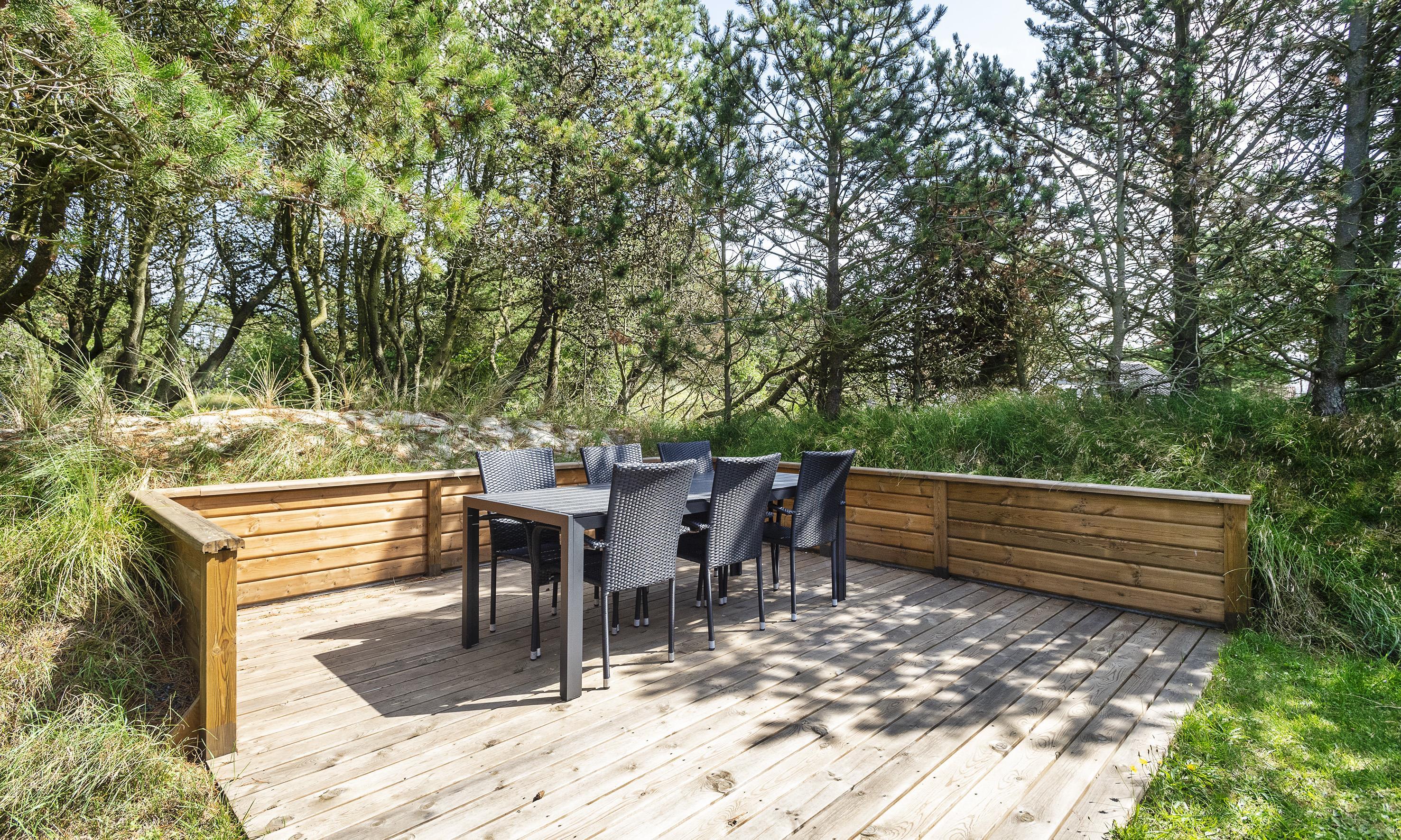 Hyggeligt sommerhus til 6 personer, delvist beliggende i klitterne, ca. 600 meter fra stranden. Køkken med opvaskemaskine. Stue med brændeovn, fjernsyn og parabol (ingen danske programmer). Badeværelse med bruser/wc, sauna og vaskemaskine. 3 soveværelser: DS + DS + DS. Trådløs internetadgang. Terrasse og udebruser. Gynger til de små. Rygning er ikke tilladt. Byggeår 1964, renoveret 1987.