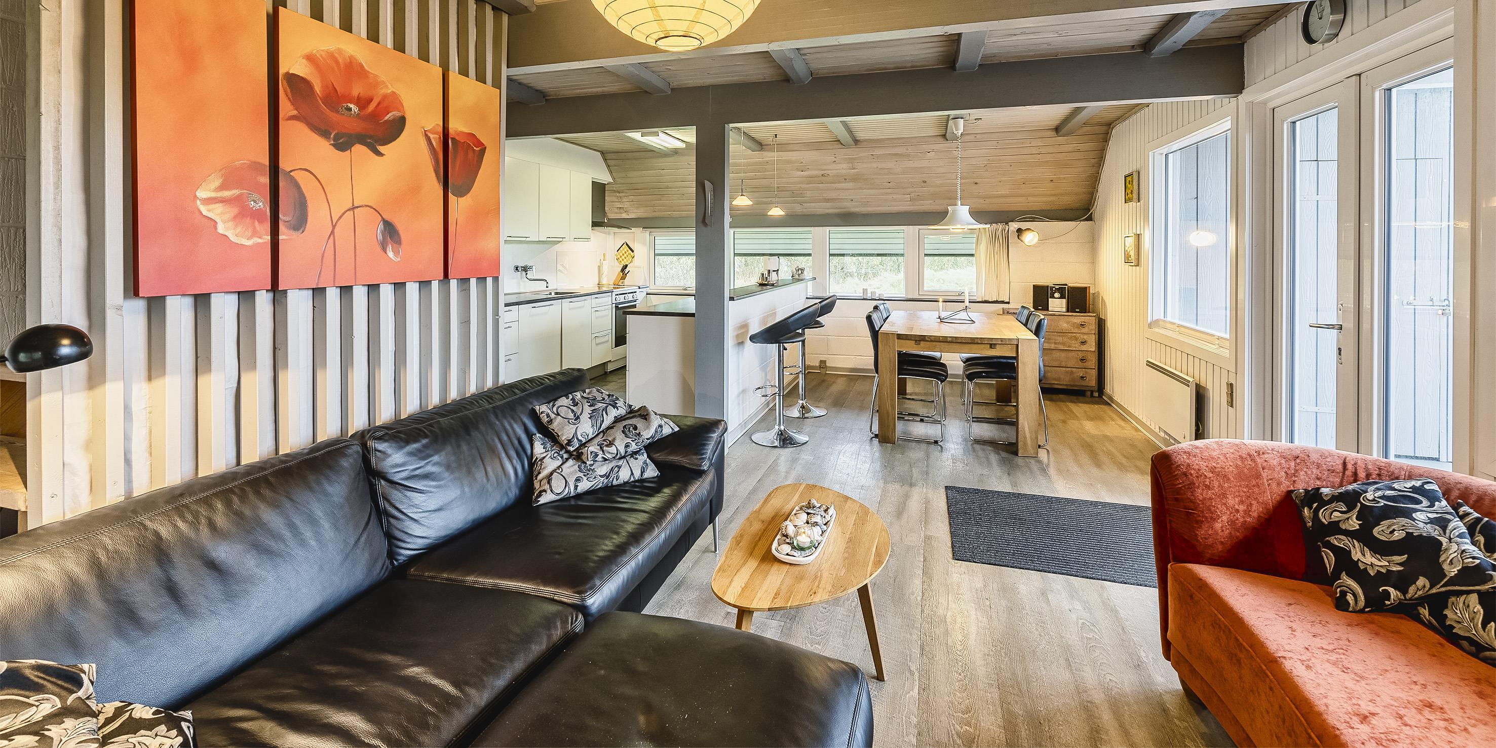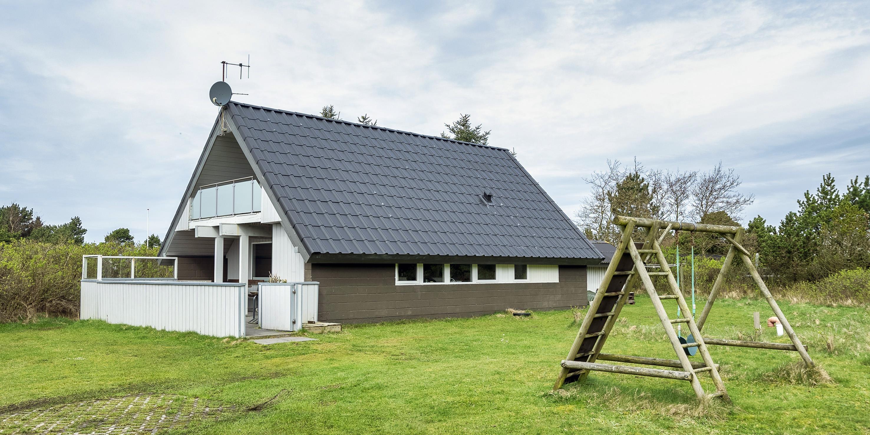 Stort sommerhus i 2 etager til 7 personer, beliggende på dejlig naturgrund, ca. 1.000 meter fra stranden. I stueetagen: stue med brændeovn samt åbent køkken med mikroovn og opvaskemaskine. 4 soveværelser: DS + DS + DS + 2S. 1 soveværelse med 1 dobbeltseng og 1 soveværelse med 1 sovesofa. Badeværelse med bruser/wc, vaskemaskine og tørretumbler. 1. sal: stue med fjernsyn, parabol (ingen danske programmer) og DVD-afspiller. 1 soveværelse med 1 dobbeltseng og 1 soveværelse med 2 enkeltsenge. Lukket terrasse. Sandkasse og gynge. Blokhussauna. Rygning er ikke tilladt. Byggeår 1985, renoveret 2010. Nyt tag i 2024.