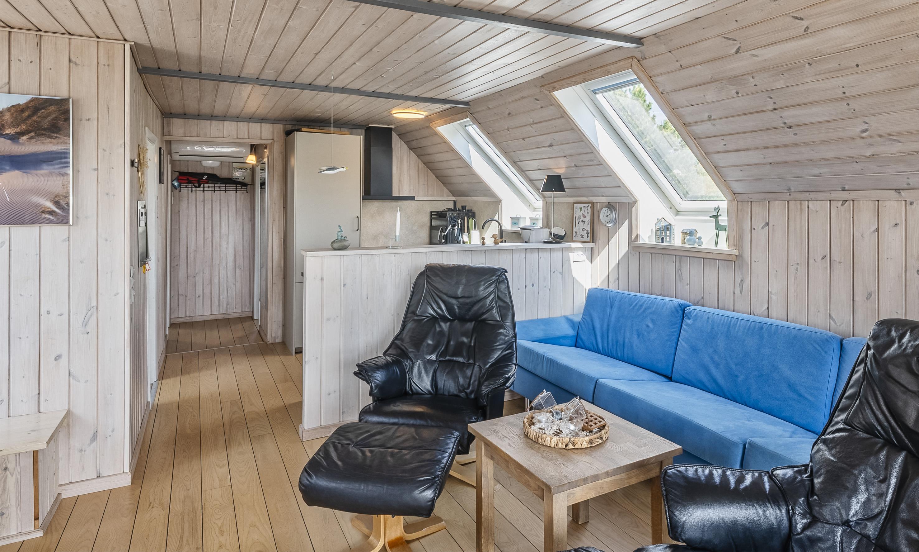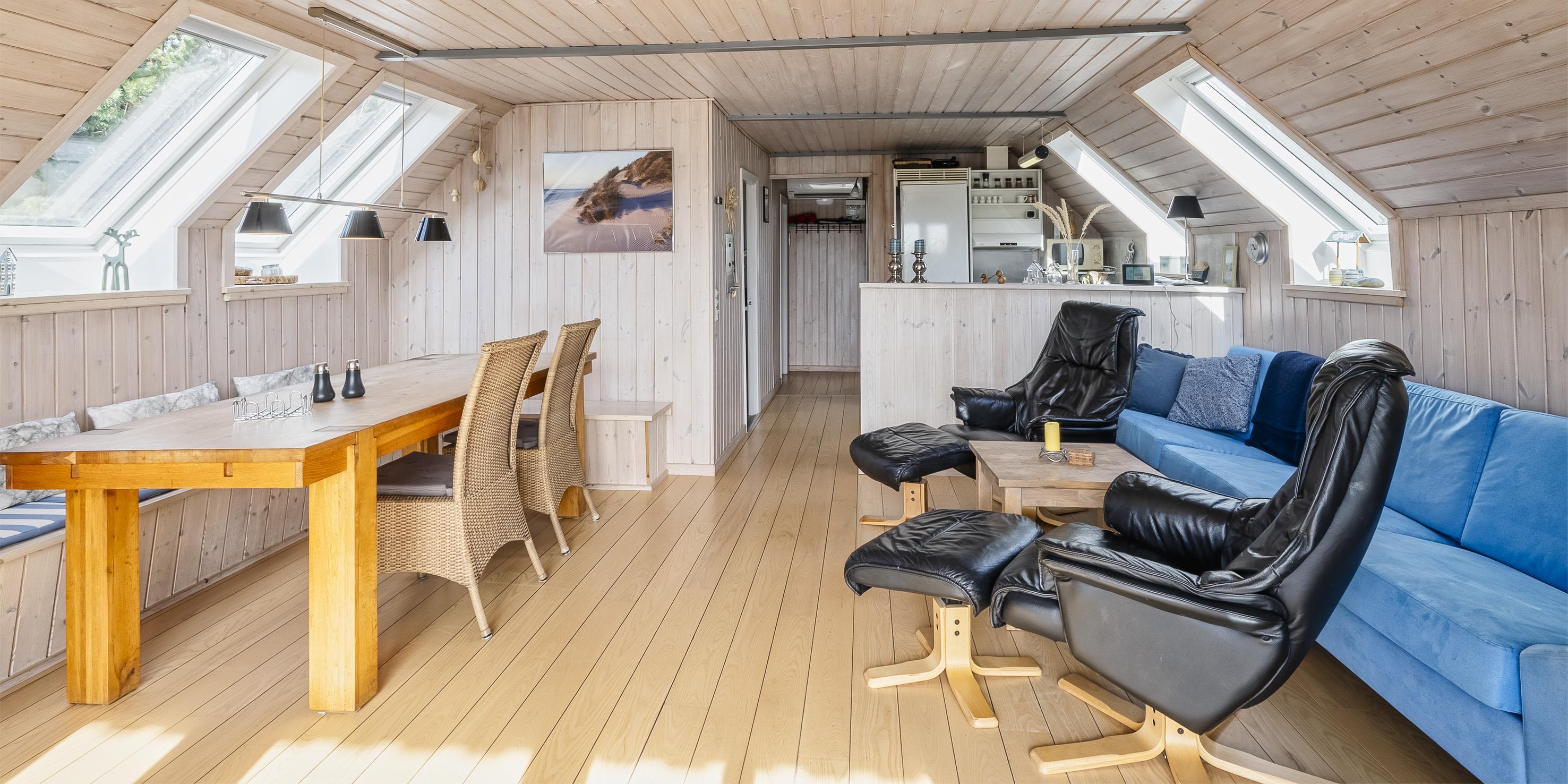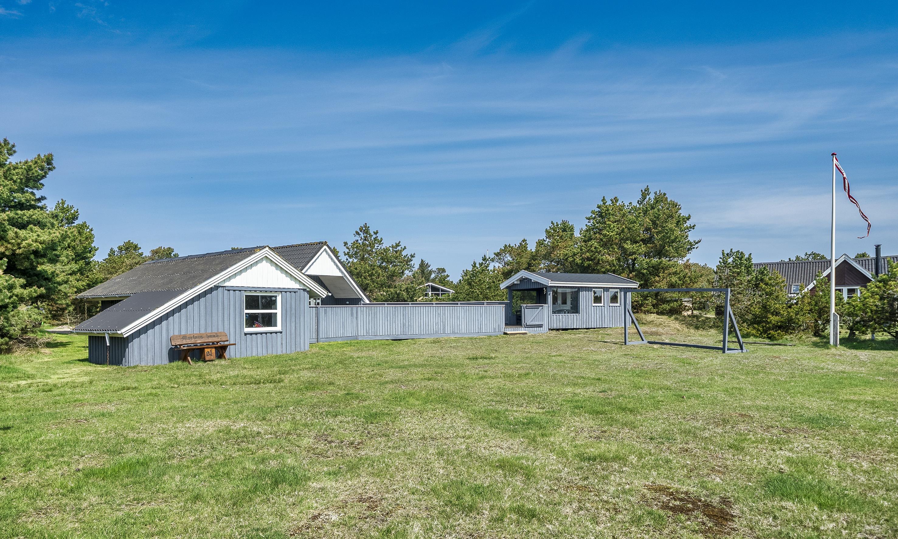 Huset fremstår med indgang over terrassen indtil stuen. Opholdsstuen fremstår med stor spiseplads med kig til brændeovnen. Sofa hygge hjørne med kig til Brændeovnen og Smart-TV, med danske som udenlandske kanaler over yousee-App. U-køkken i åben forbindelse med Opholdsstuen. Køkkenet fremstår med opvaskemaskine, komfur med keramisk kogeplade, mikroovn og køleskab, der forefindes en lille fryser i skuret. Ydermere råder huset over en varmepumpe og trådløs internet. Badeværelset med bruseniche, toilet og vaskearrangement. Vaskemaskine. Tørretumbler. Huset råder over 2 soveværelser: 2S + 4S, 1 soveværelse med 2 enkeltsenge der kan sættes sammen til en dobbeltseng (elevation) og 1 soveværelse med 2 køjesenge (sengene er max 180 cm lange). Rygning er ikke tilladt i huset eller i gæstehuset. Husdyr er ikke tilladt. Huset råder endvidere over et anneks, som ligger i tæt forbindelse med huset tværs over den store lukkede terrasse. Her har børnene mulighed for at lege uden forstyrrelser fra de voksne. De udvendige forhold byder på en fantastisk lukket træterrasse med overdækket veranda samt en stor have, hvor børnene nemt kan udfolde sig på den store græsplæne der indbyder til boldspil. Fra terrassen er der udsigt til ålestrømmen. Der er et skur ved huset med en fryser. Der afregnes ekstra for vand.