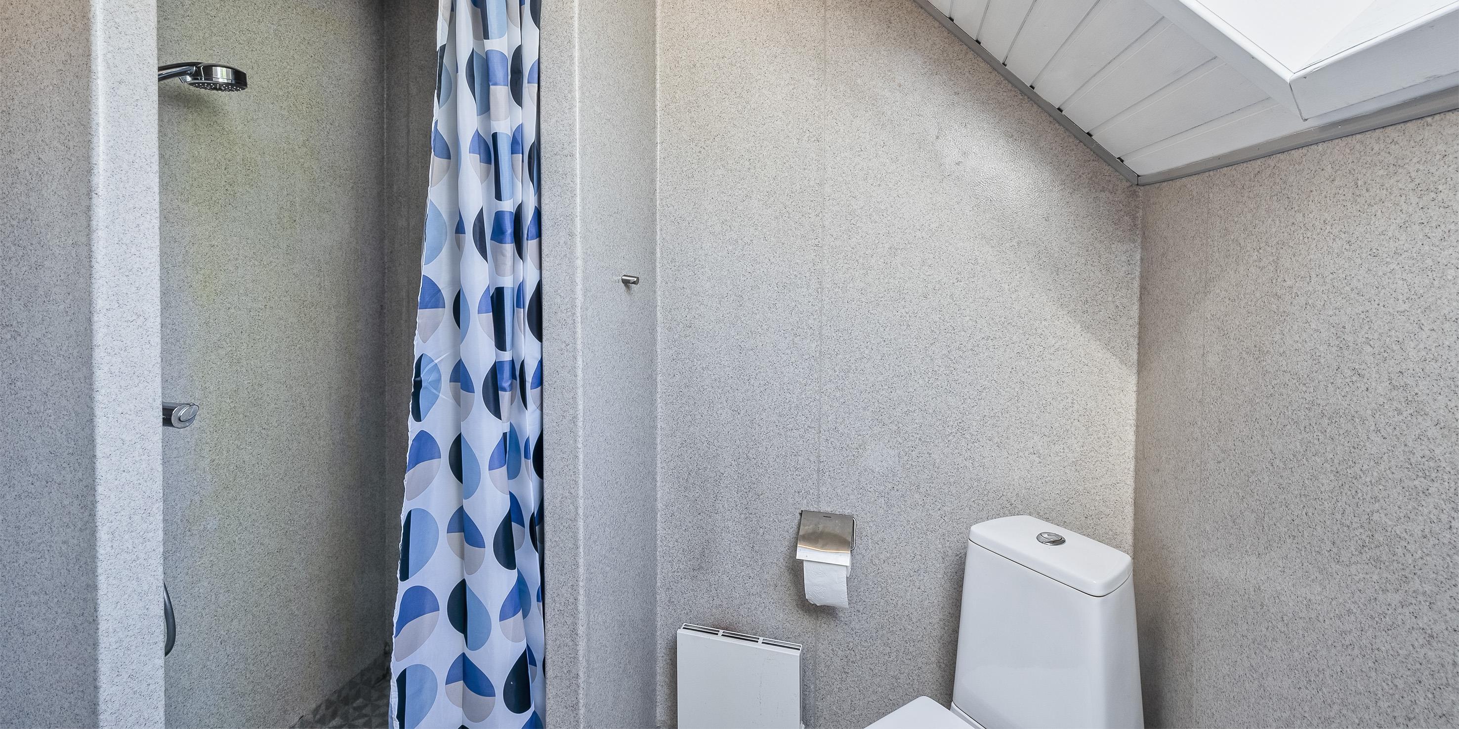 Bad med toilet, bruser og vask
