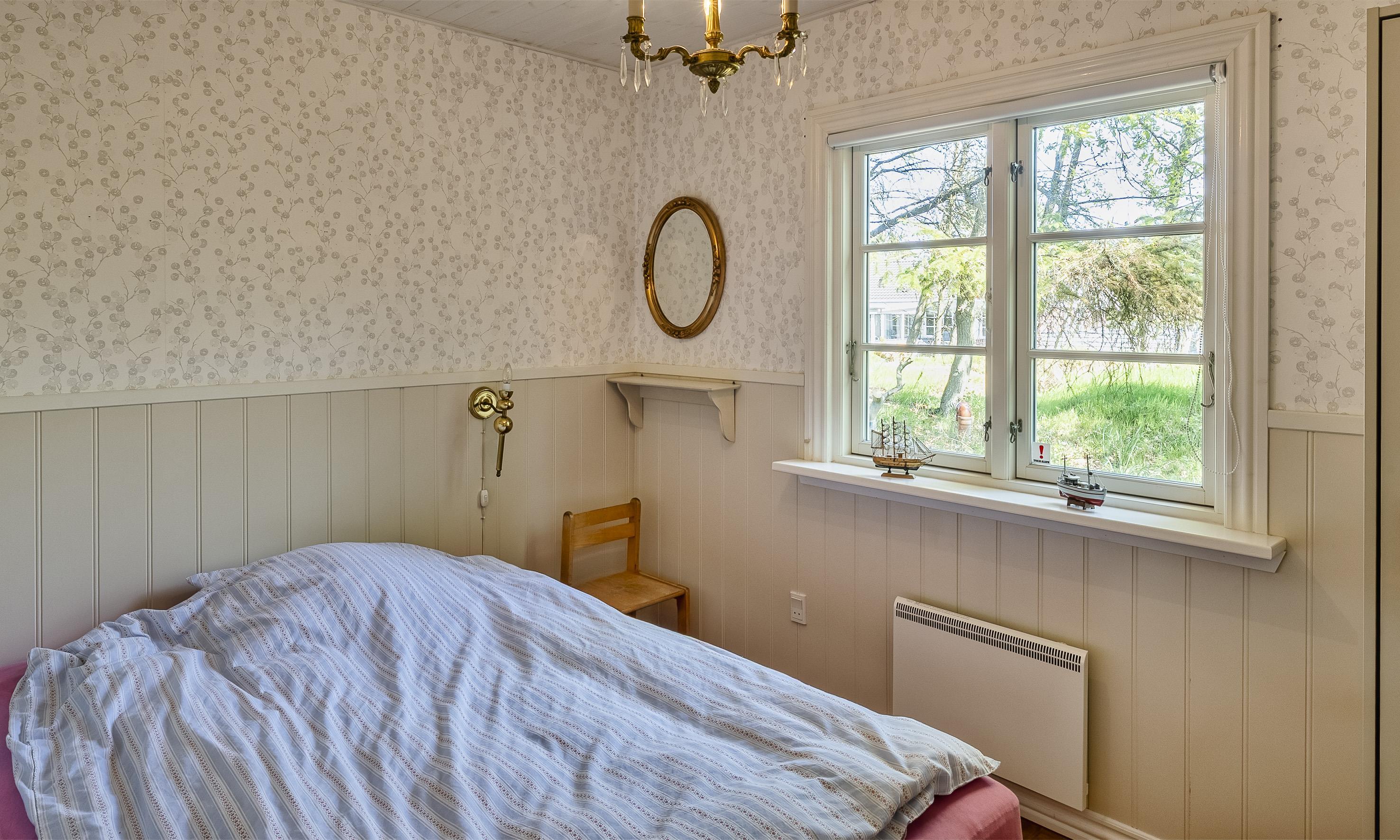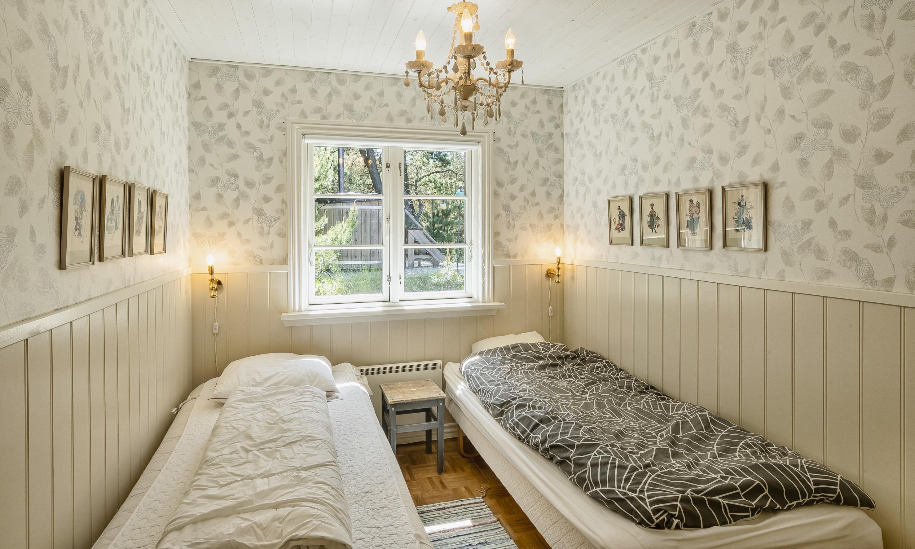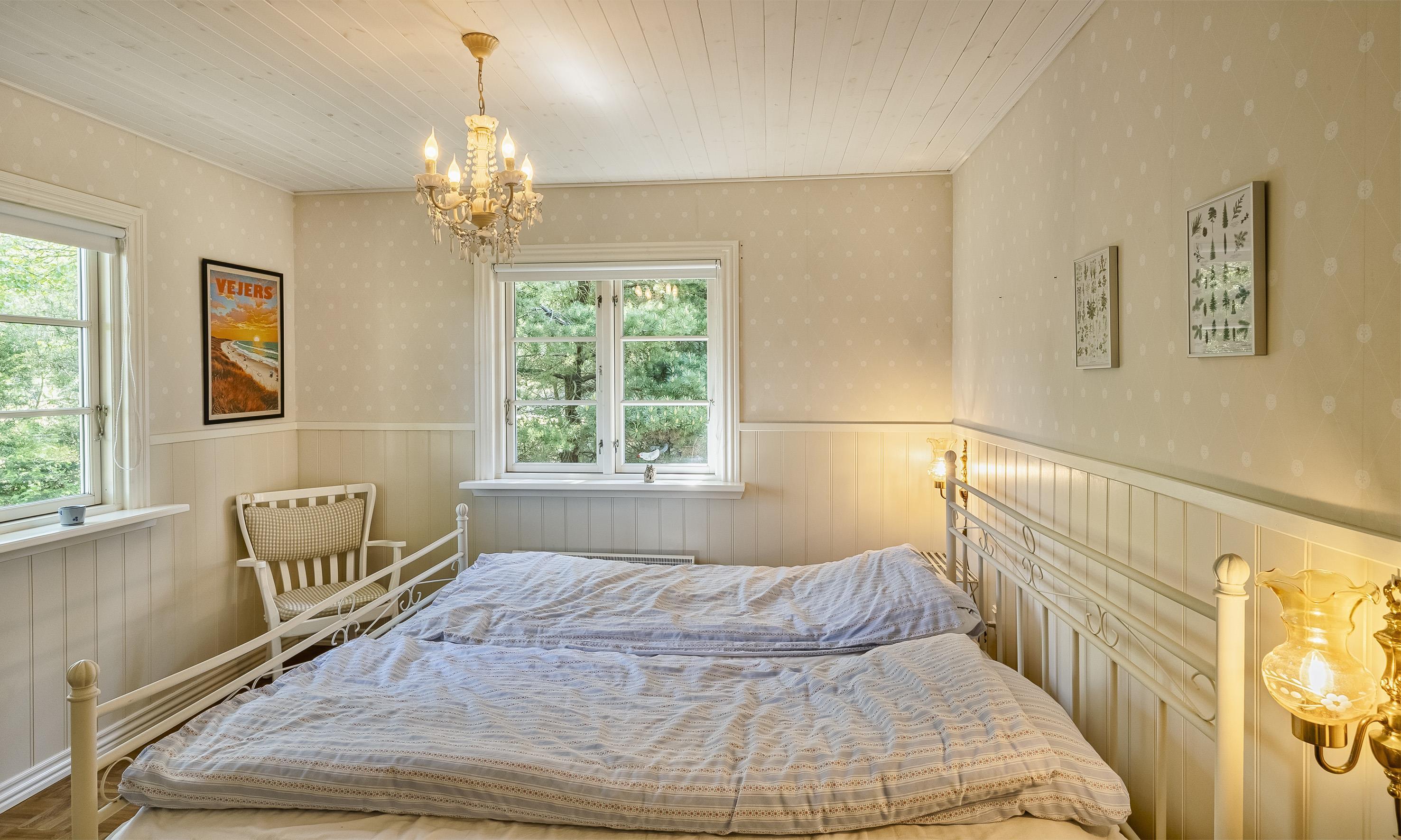 3 soveværelser. 1 med dobbeltseng 180x200 cm. 1 med dobbeltseng 160x200 cm. 1 med 2 enkeltsenge (á 90x200 cm)