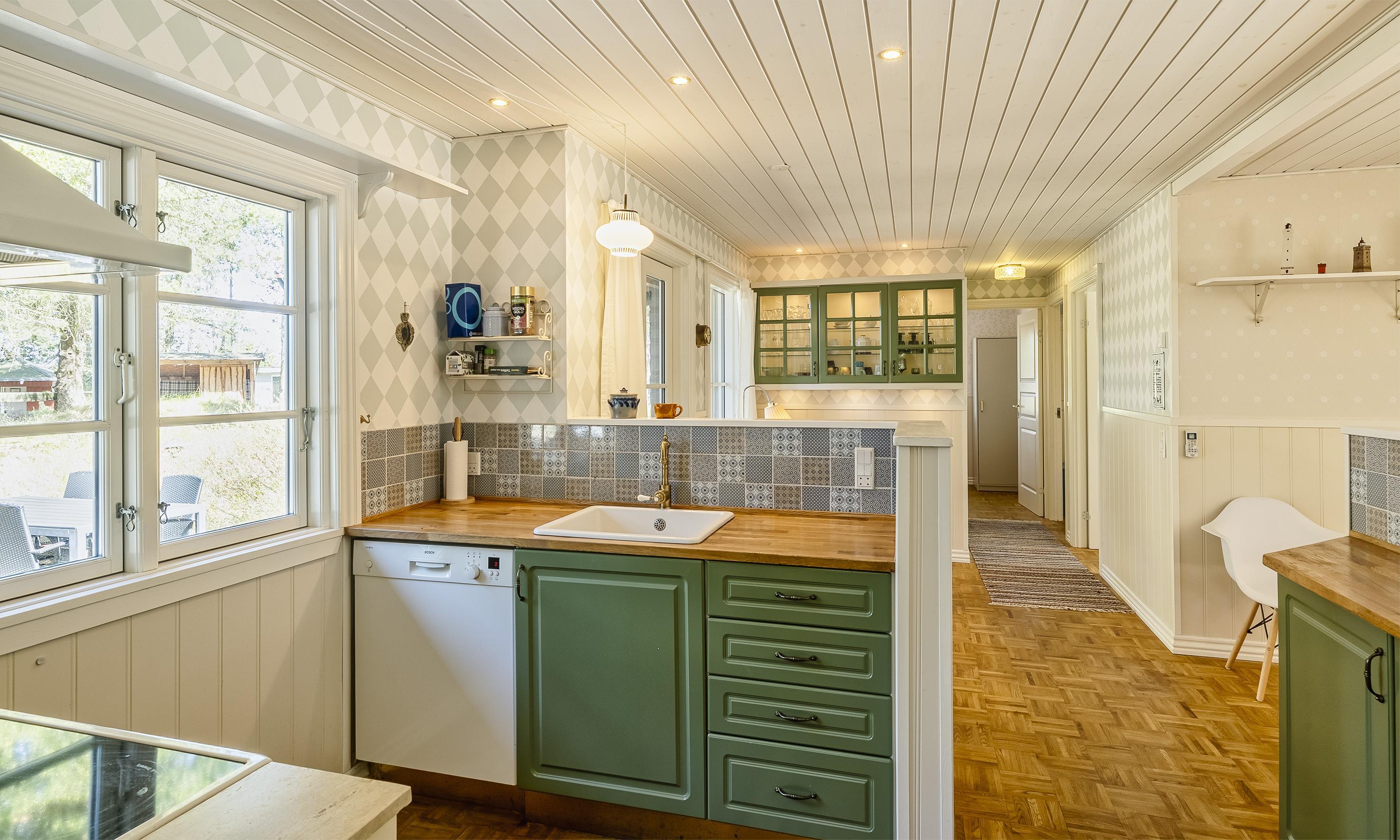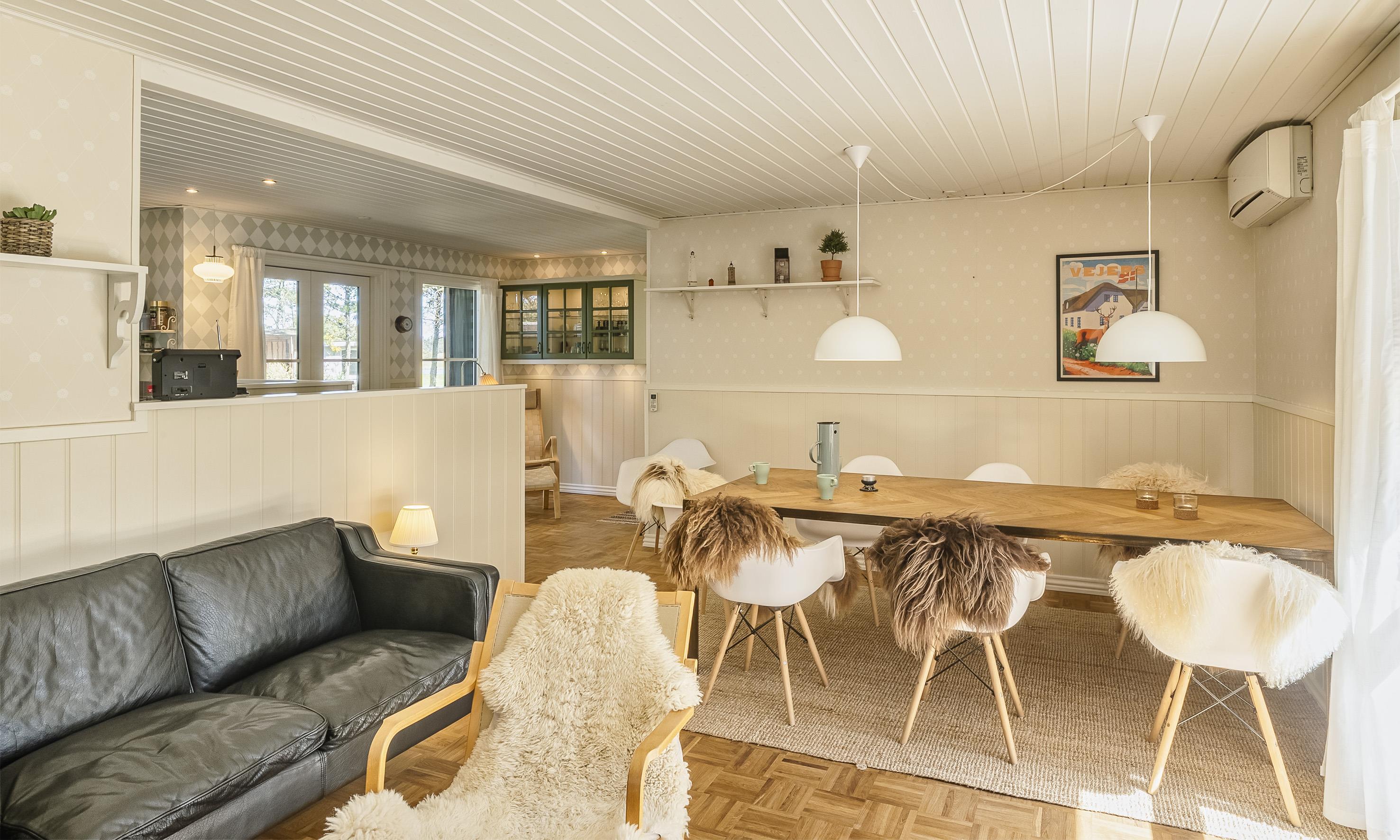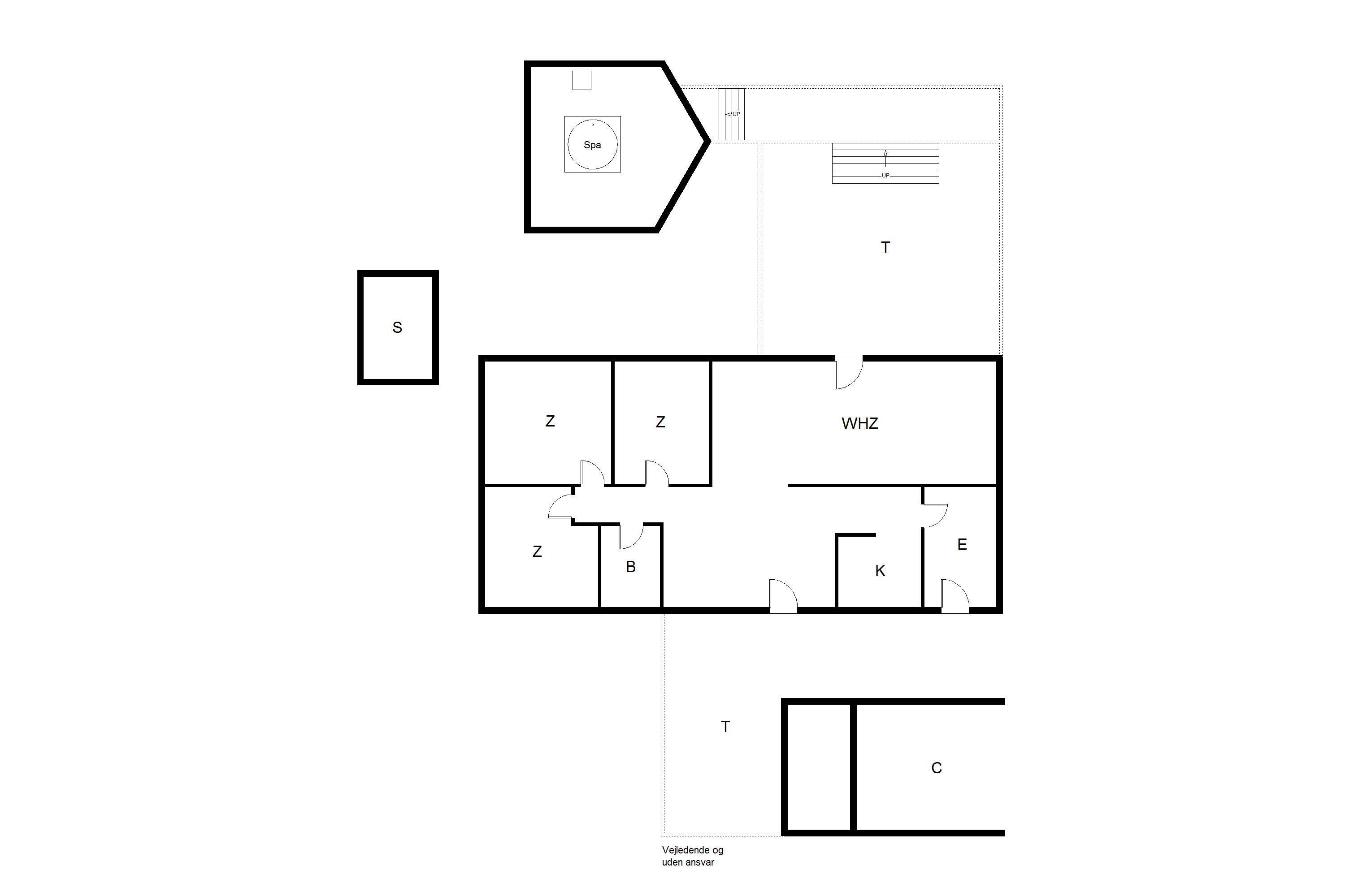 Huset fremstår med indgang/entre med bryggers med vaskemaskine og tørretumbler. Gulvvarme i gangen. Fra entreen kommer man ind til husets skønne køkken-alrum. Køkkenet er renoveret og fremstår i romantisk landkøkkenstil. Her finder man alt hvad hjertet begærer såsom opvaskemaskine, komfur med keramisk kogeplade, mikroovn og køle-/fryseskab. Køkkenet er i åben forbindelse med huset opholdsrum, der fremstår med stor spisebordsplads, hvorfra middagen kan nydes med udsigt til haven. Der er ydermere udgang til en morgenterrasse mod øst og til en vestvendt terrasse fra et lille hyggehjørne i forbindelse med køkkenet. Sofahjørne med Smart-TV, brændeovn og kig ud af den store dobbeltdør til den østvendte terrasse. Varmepumpe. Trådløs internetadgang. Huset råder ydermere over 3 hyggelige soveværelser: DS + DS + 2S. Badeværelse med bruser, wc og skabs arrangement. 2 skønne terrasser. Et heraf er en nyanlagt træterrasse, som er i plan med huset, og hvor der er opgang til et vildmarksbad der opvarmes med brændeovn. (Det tager ca. 3 timer at varme vildmarksbadet op). En vestvendt terrasse der er total ugeneret og med god læ. Utrolig spændende naturgrund med rigt dyreliv omkranset med træer og udlagt med flere hyggekroge. En luksus udesauna med et stort glasparti hvorfra søen ved Jafdalvej kan observeres. Der forefindes en udvendig bruser med koldt vand.