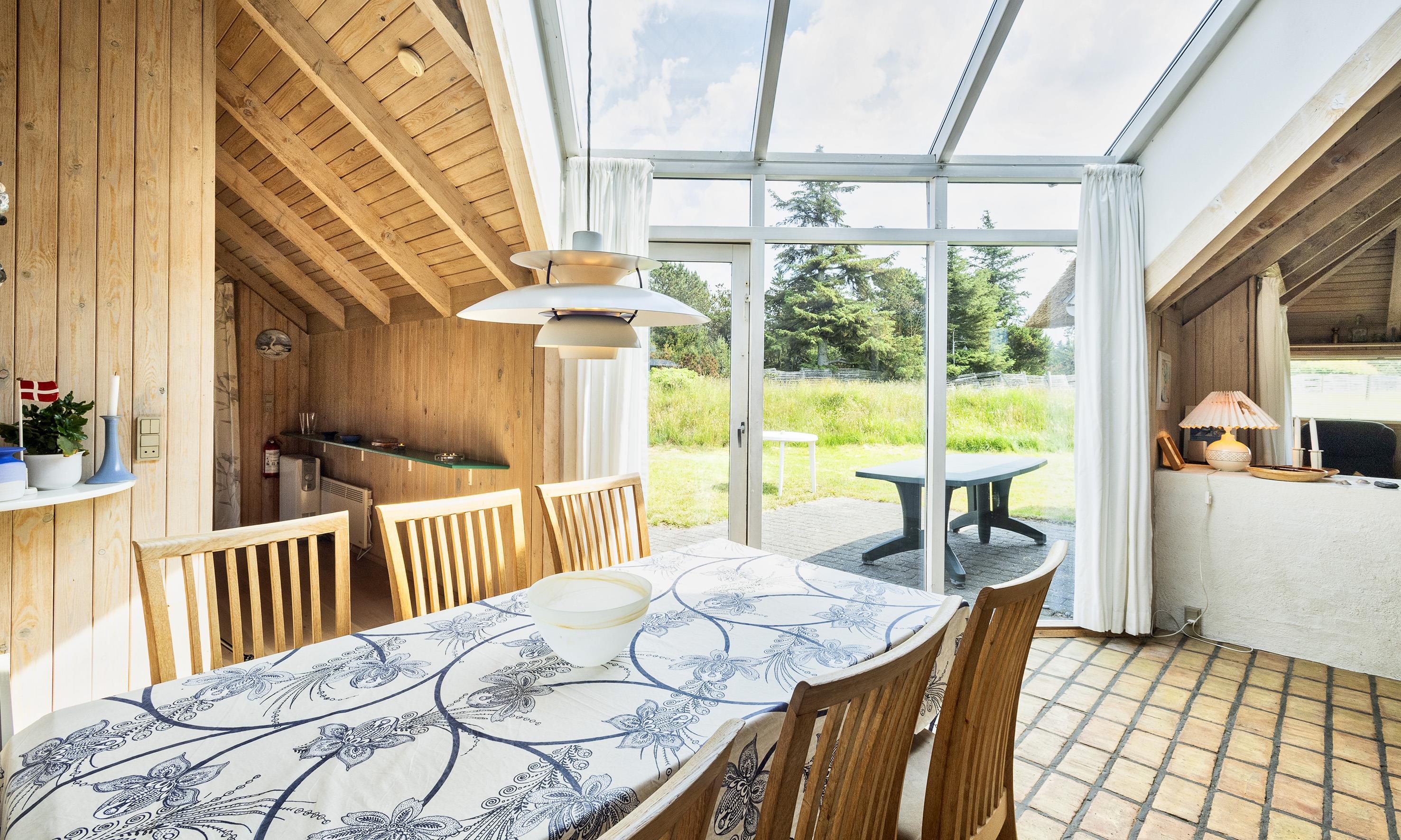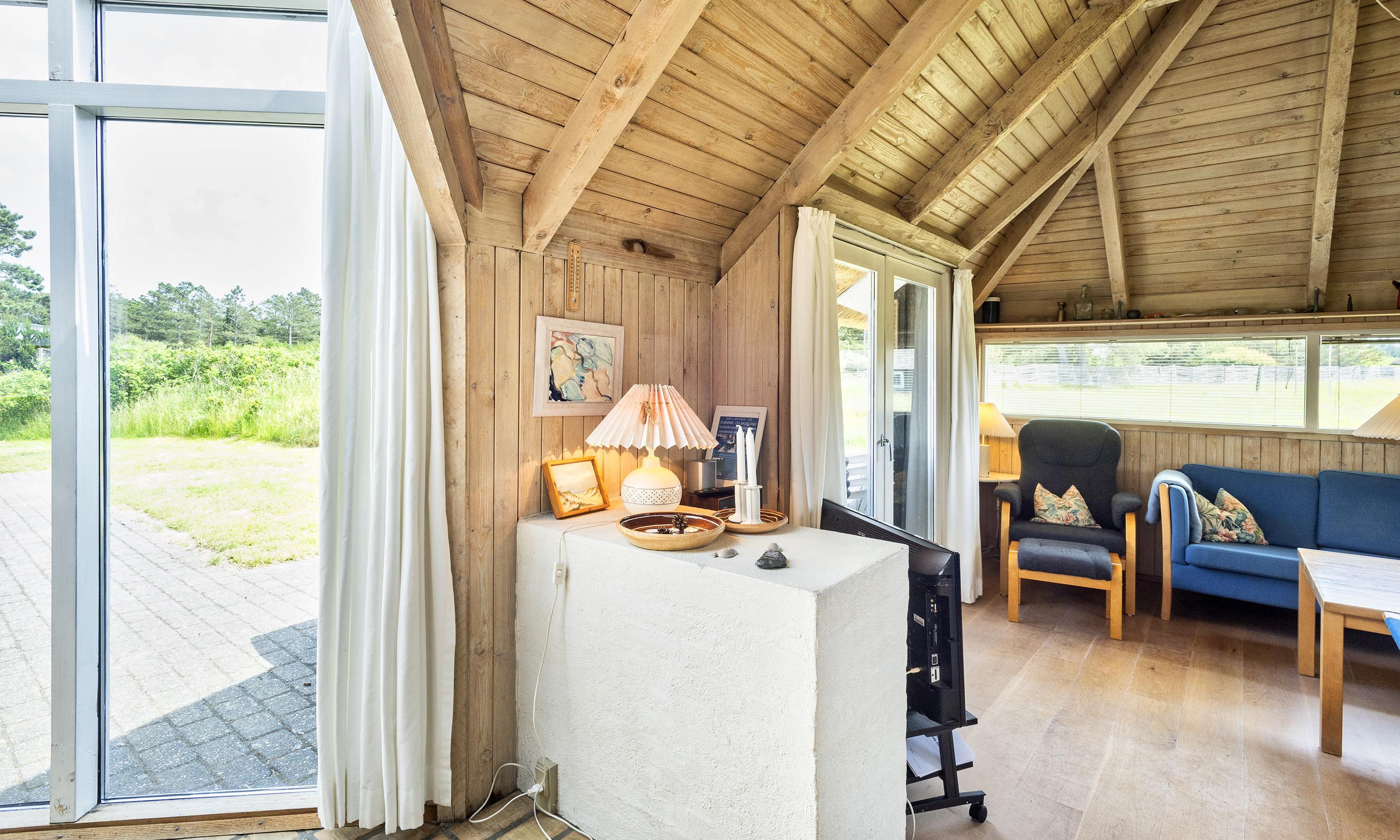 Nydeligt sommerhus til 8 personer, ca. 1.900 meter fra stranden. Stue med brændeovn, fjernsyn og parabol (ingen danske programmer) men chromecast. Køkken med opvaskemaskine og mikroovn, køleskab med lille fryserfag. Badeværelse med bruser/wc og sauna. Vaskemaskine. 4 soveværelser: DS + DS + 2S + 2S. 2 soveværelser med hver 1 dobbeltseng og 2 soveværelser med hver 2 enkeltsenge. Varmepumpe. Terrasse. Trådløs internetadgang. Adgang til Oksbøl Badeland 2026. Rygning er ikke tilladt. Byggeår 1988.