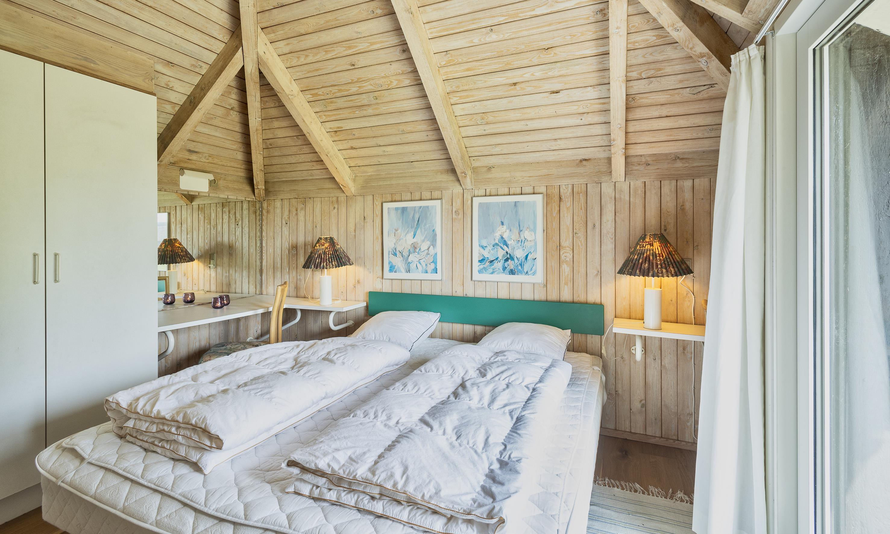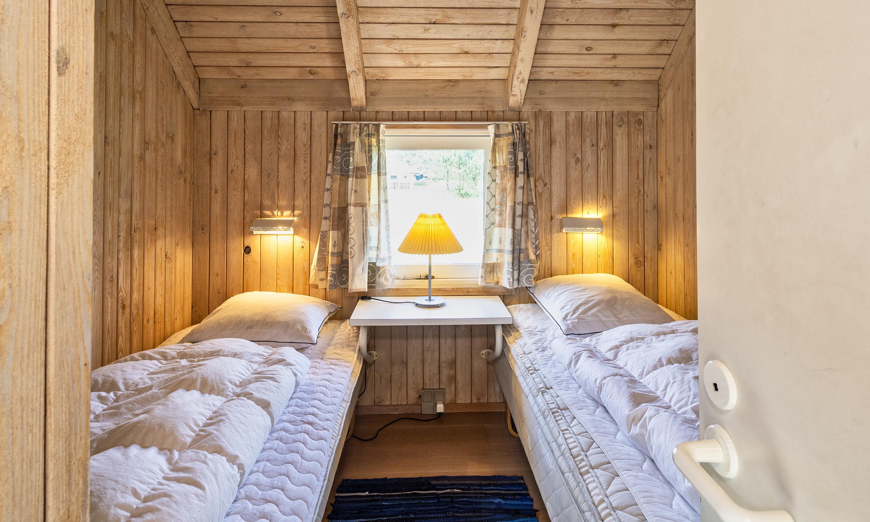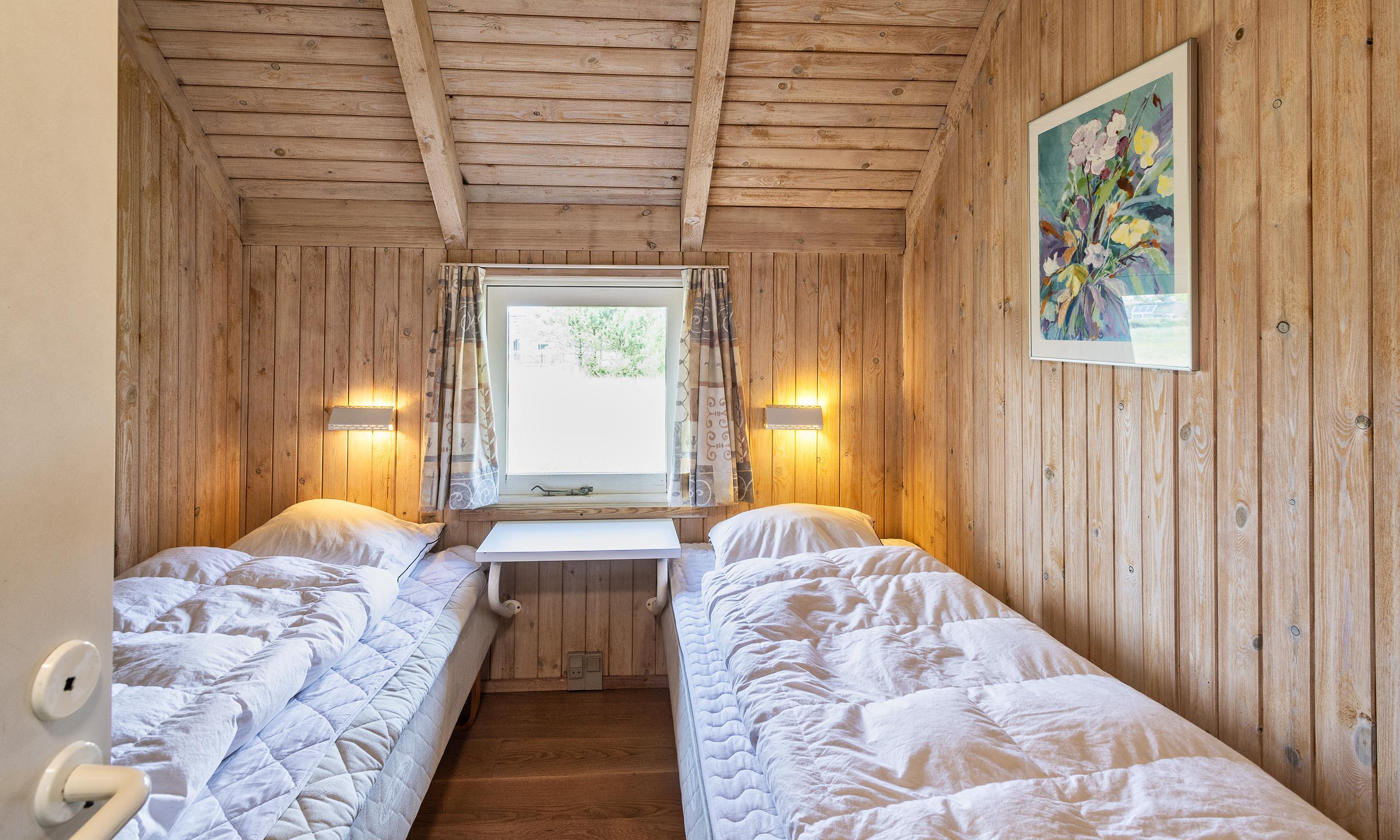 4 soveværelser. 2 med dobbeltseng 180x200 cm. 2 med 2 enkeltsenge (á 90x200 cm)