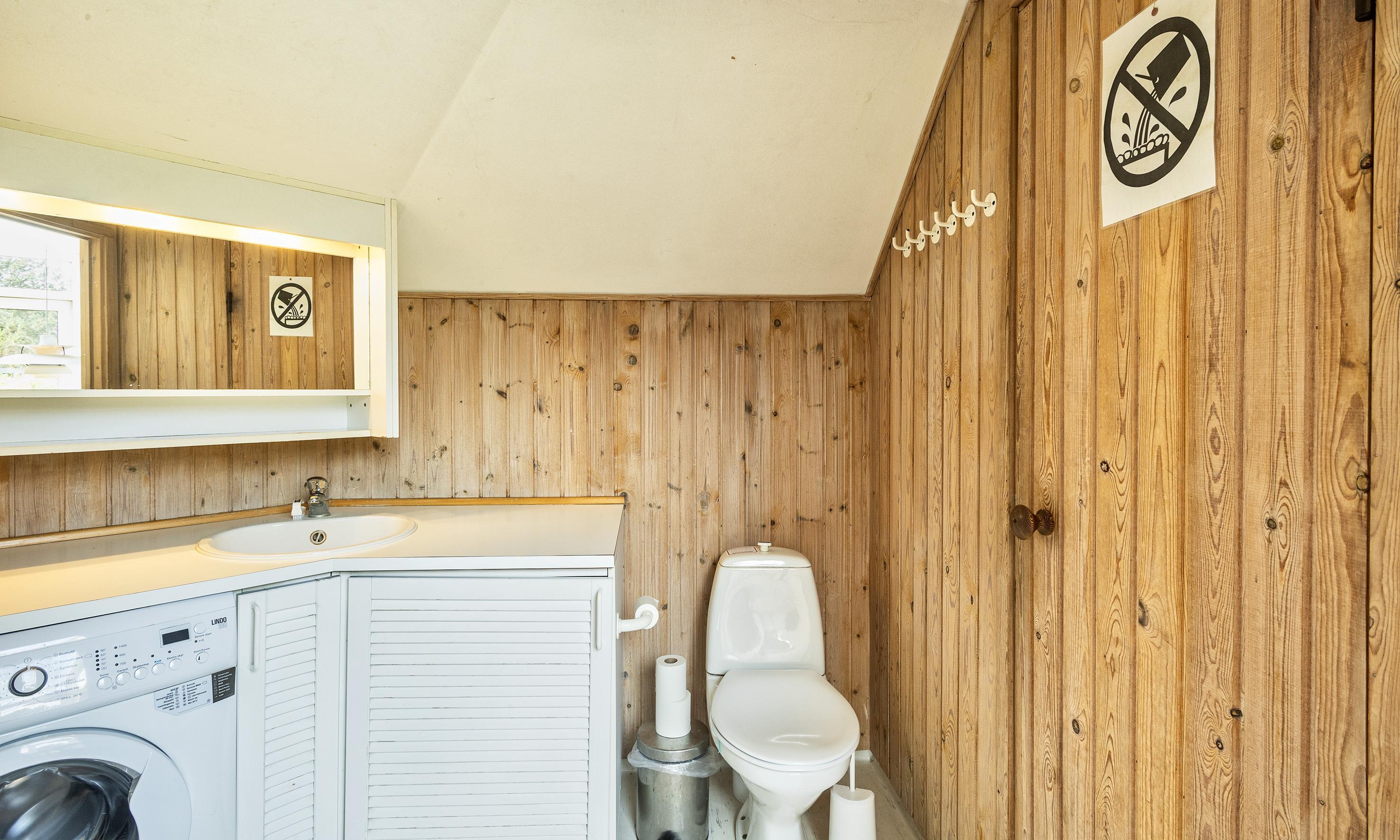 Bad med toilet, bruser og vask