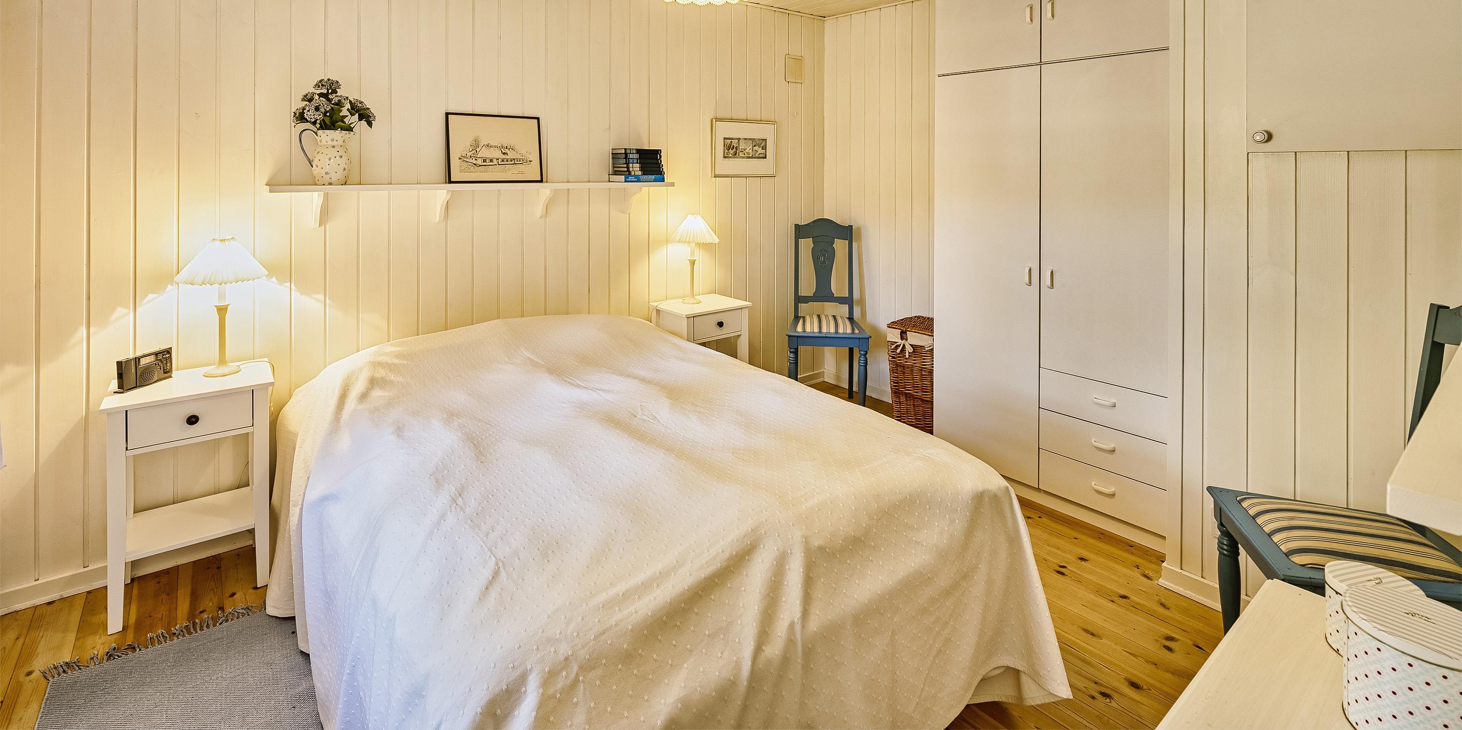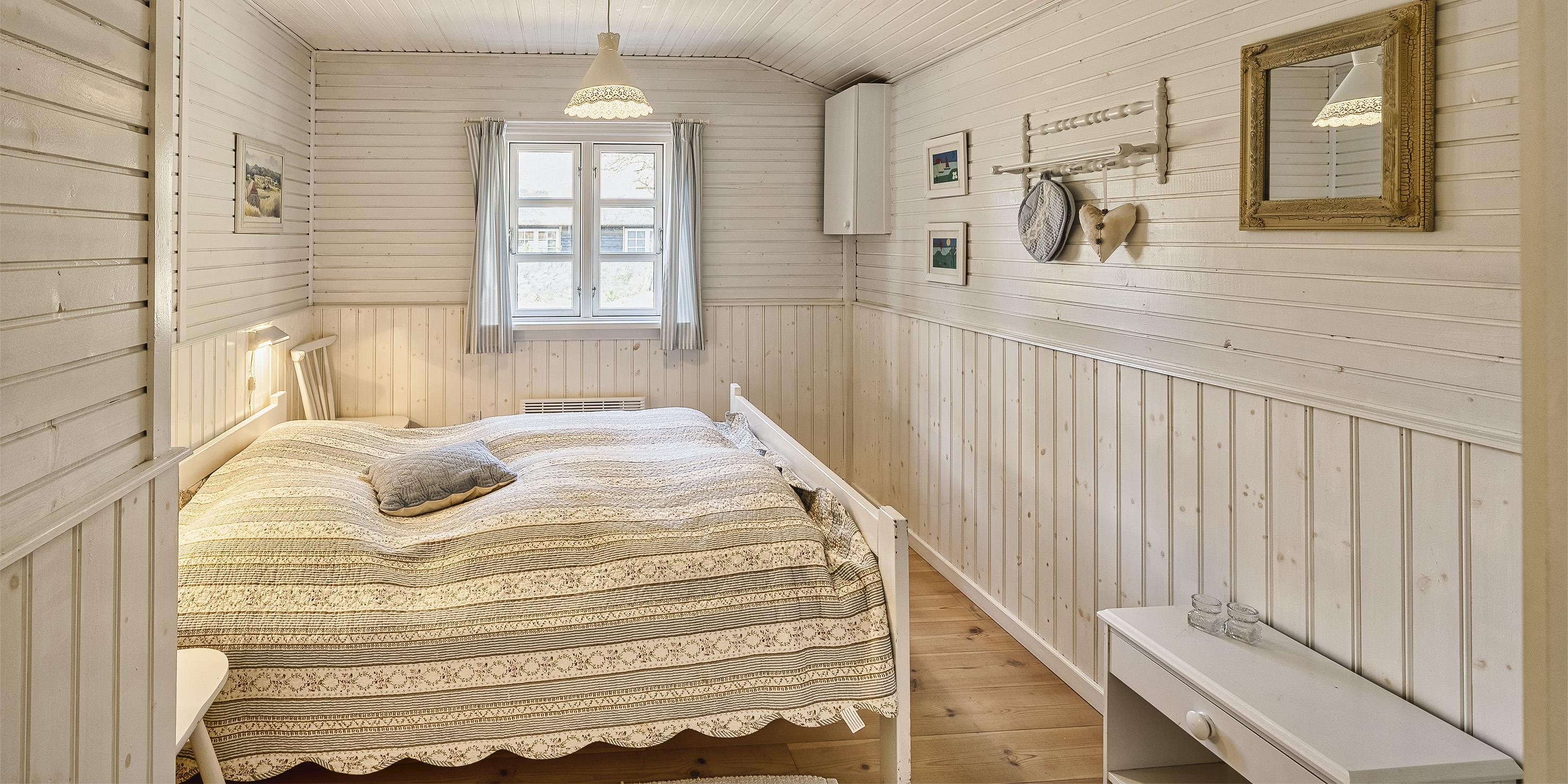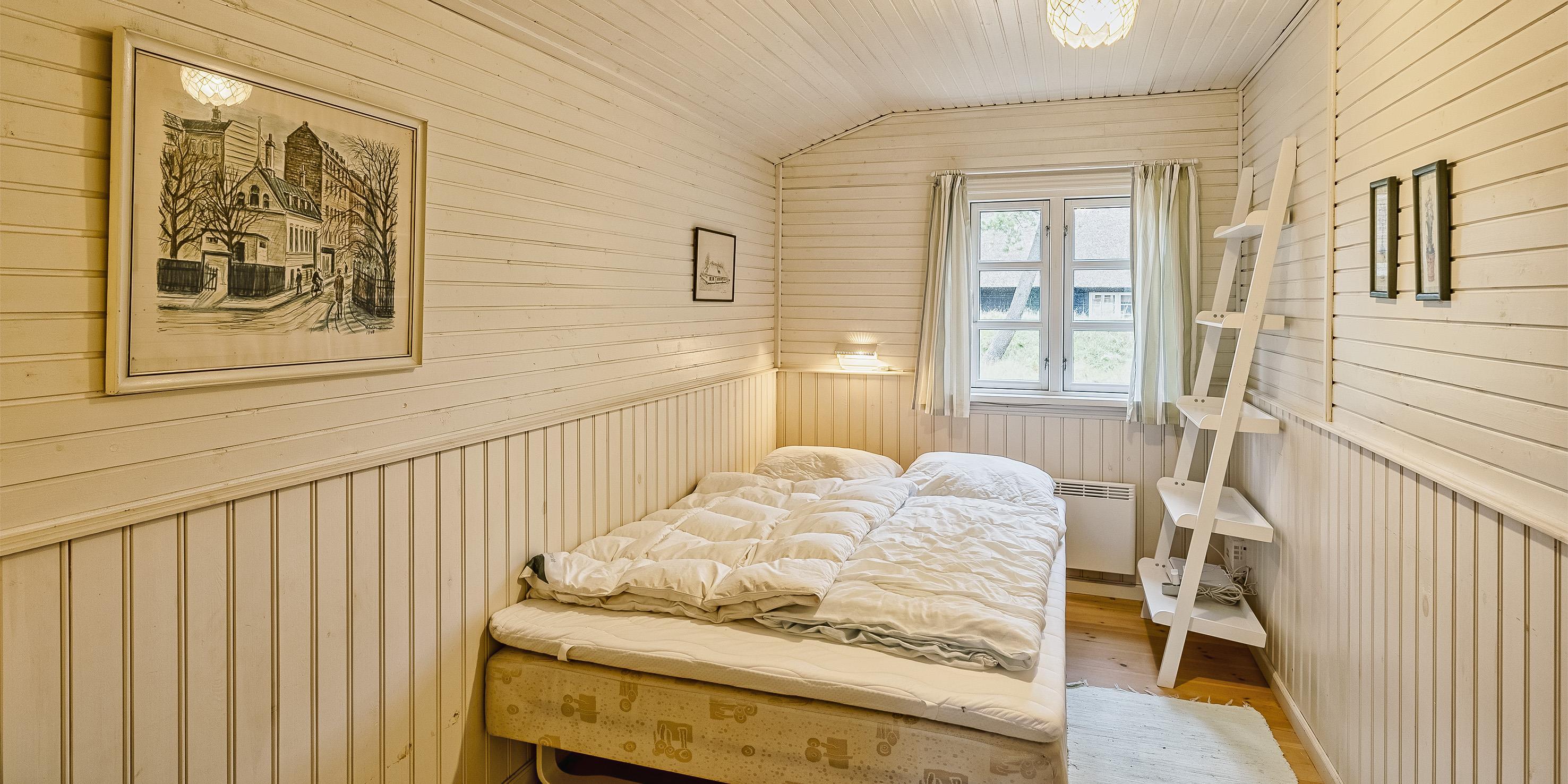 3 soveværelser. 1 med dobbeltseng 180x200 cm. 1 med smal dobbeltseng 160x200 cm. 1 med smal dobbeltseng 140x200 cm.