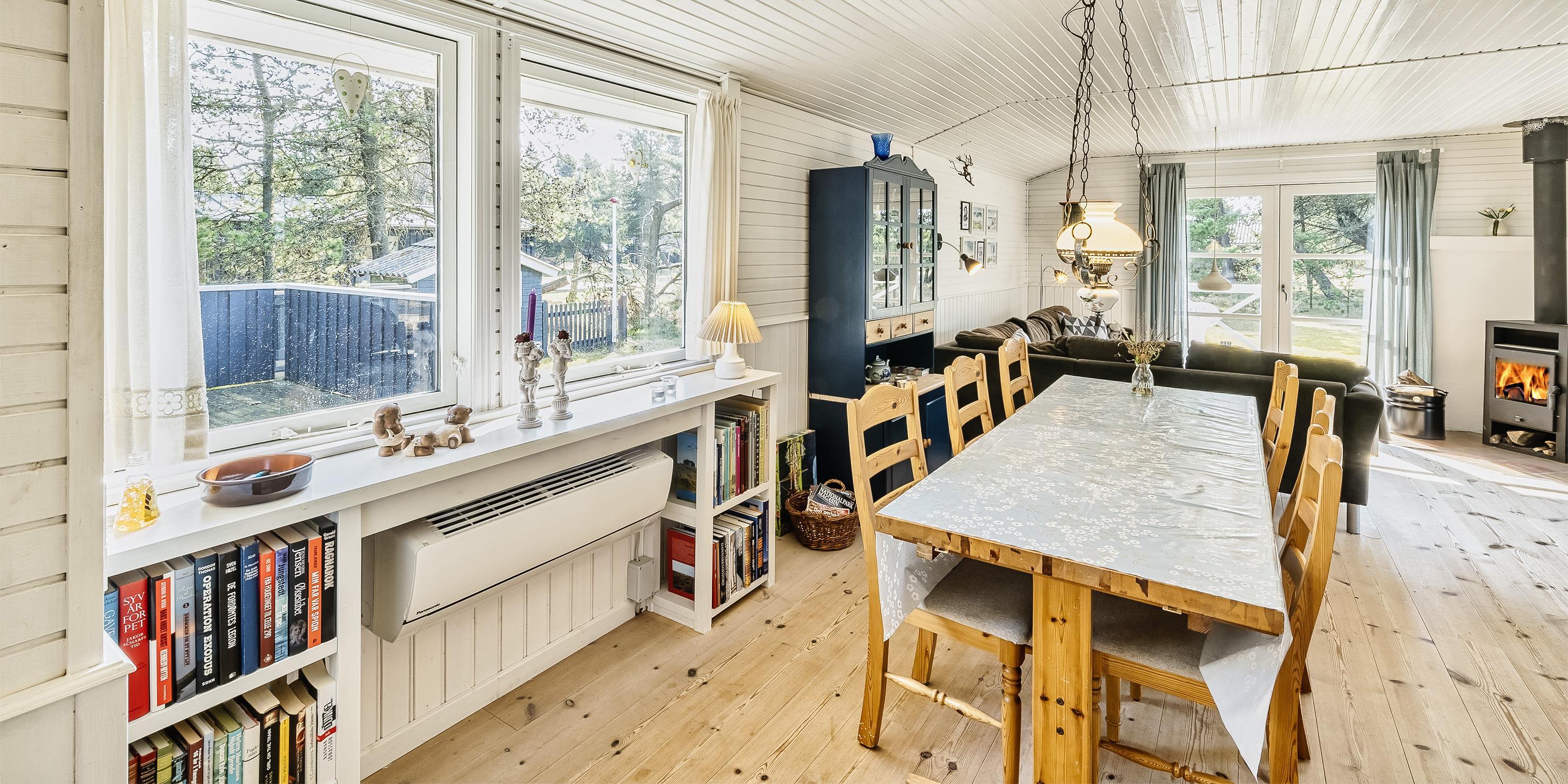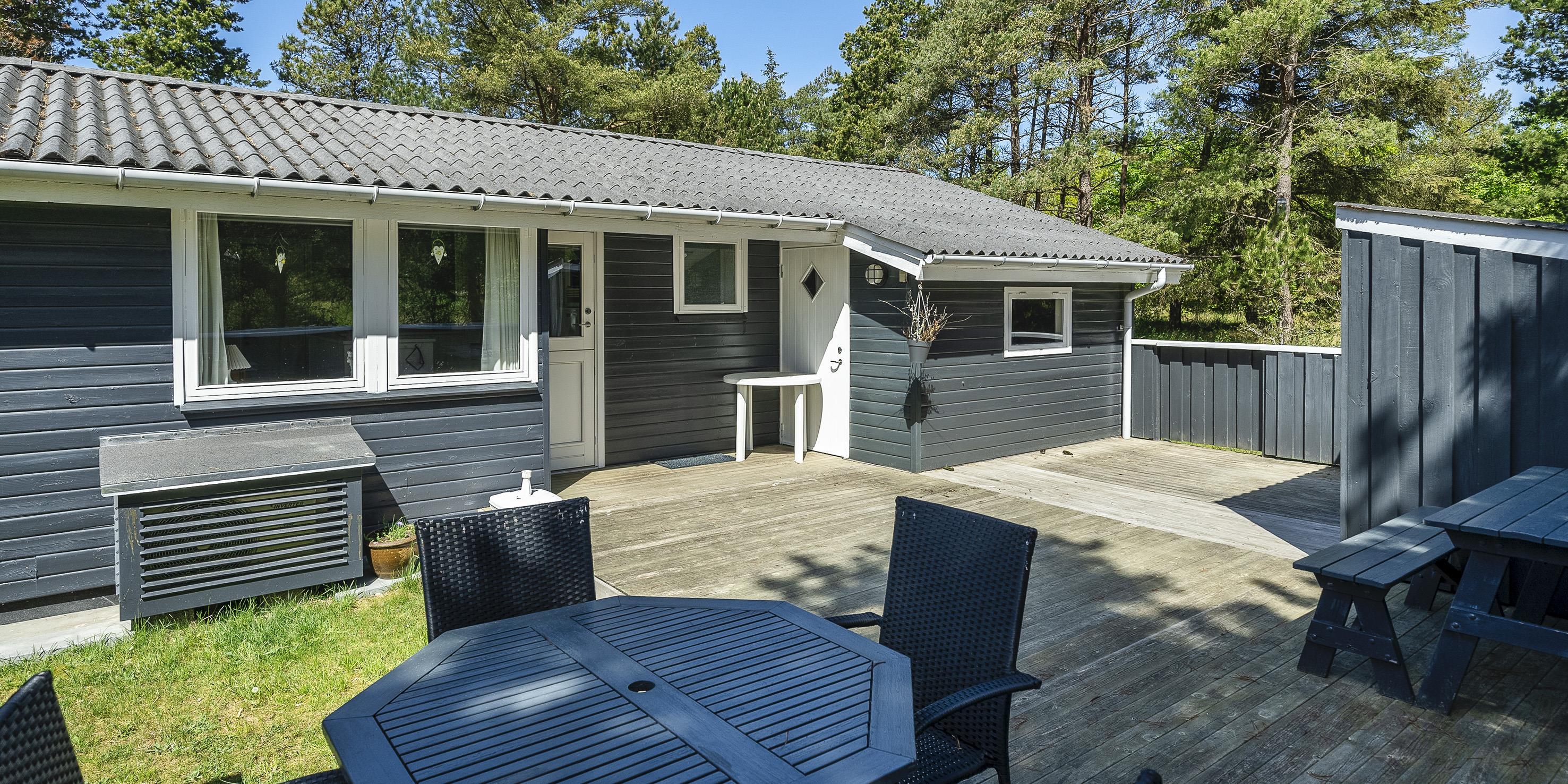 Hyggeligt sommerhus til 4-6 personer, ca. 2 km fra stranden. Stue med brændeovn, fjernsyn og parabol (Stofa sommerhuspakke) samt køkken med opvaskemaskine og mikroovn og køleskab. Badeværelse med bruser/wc. 3 soveværelser: DS + DS + DS. 3 soveværelser med hver 1 dobbeltseng. Vaskemaskine. Trådløs internetforbindelse. Terrasse. Sandkasse, gynge og legehus. Der er tilladt 2 husdyr. Byggeår 1968.