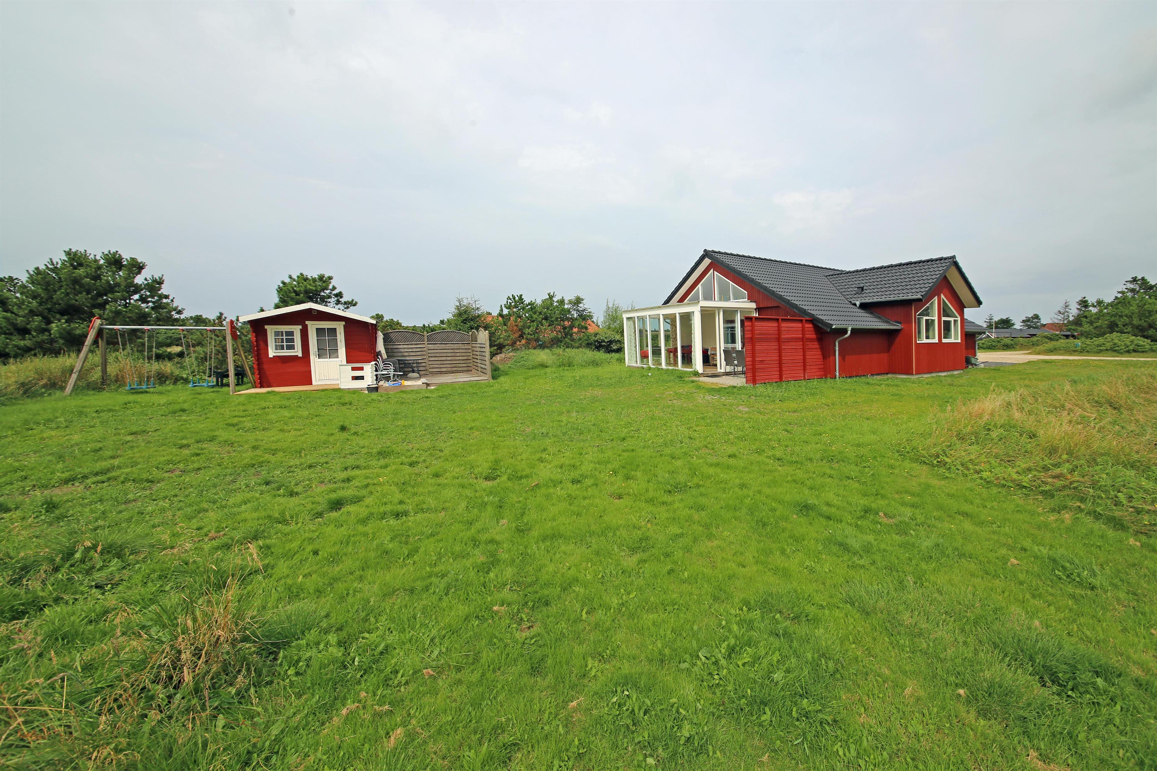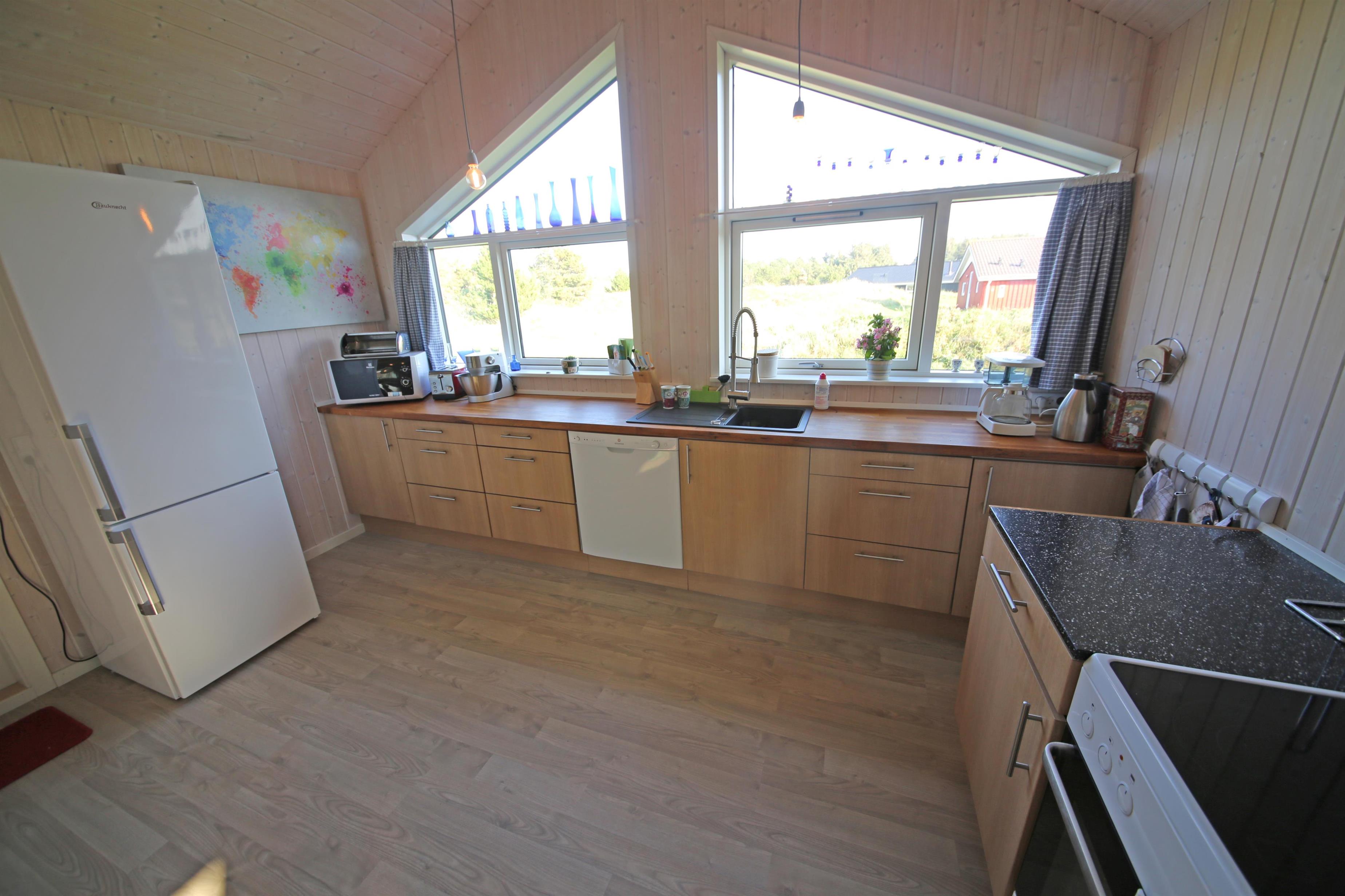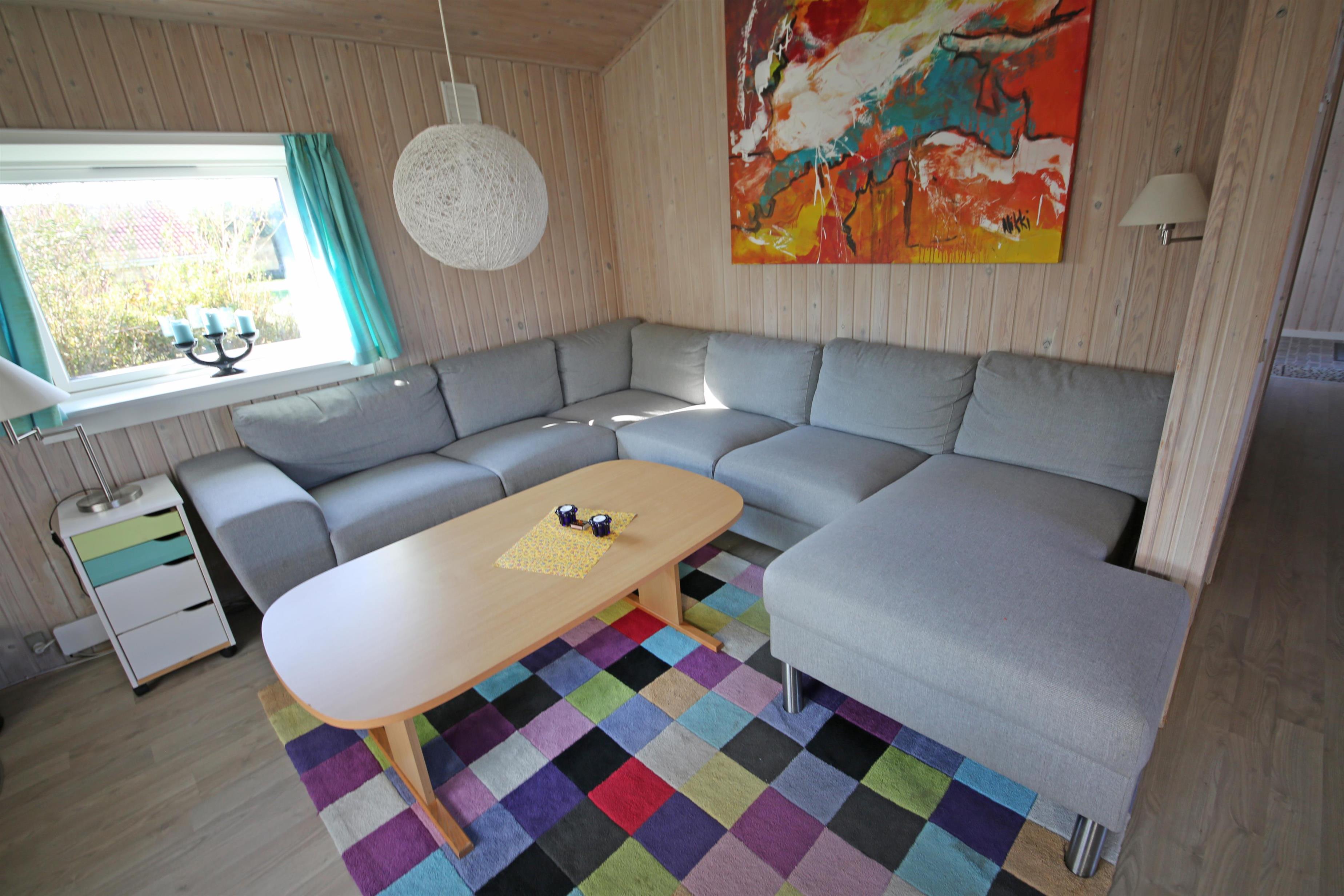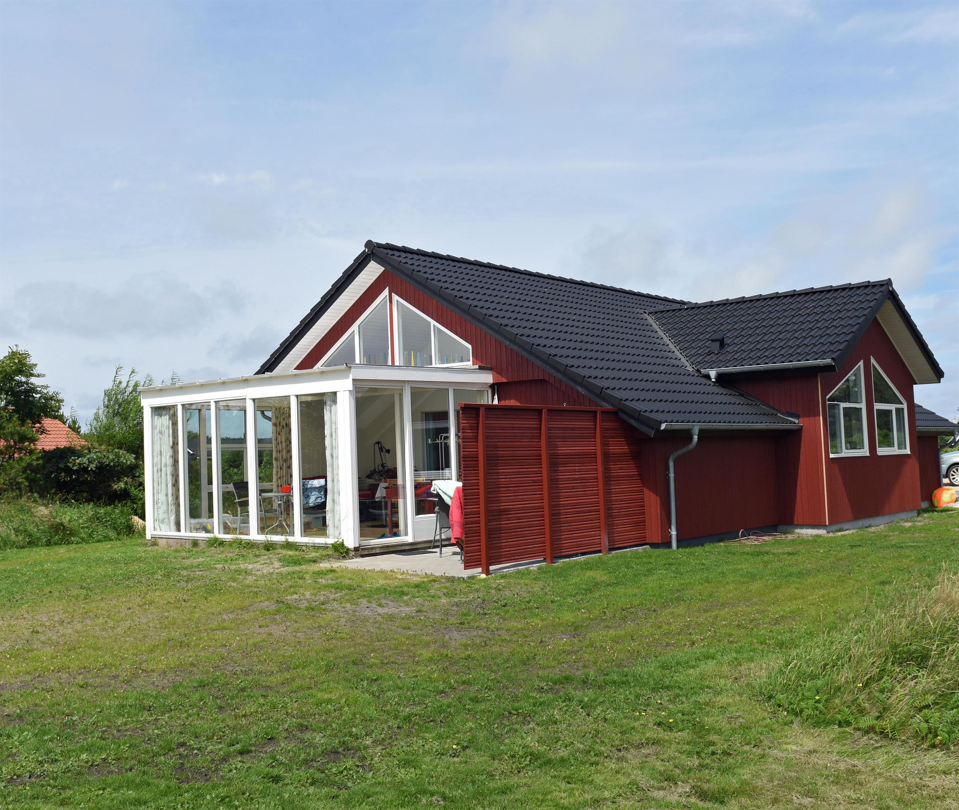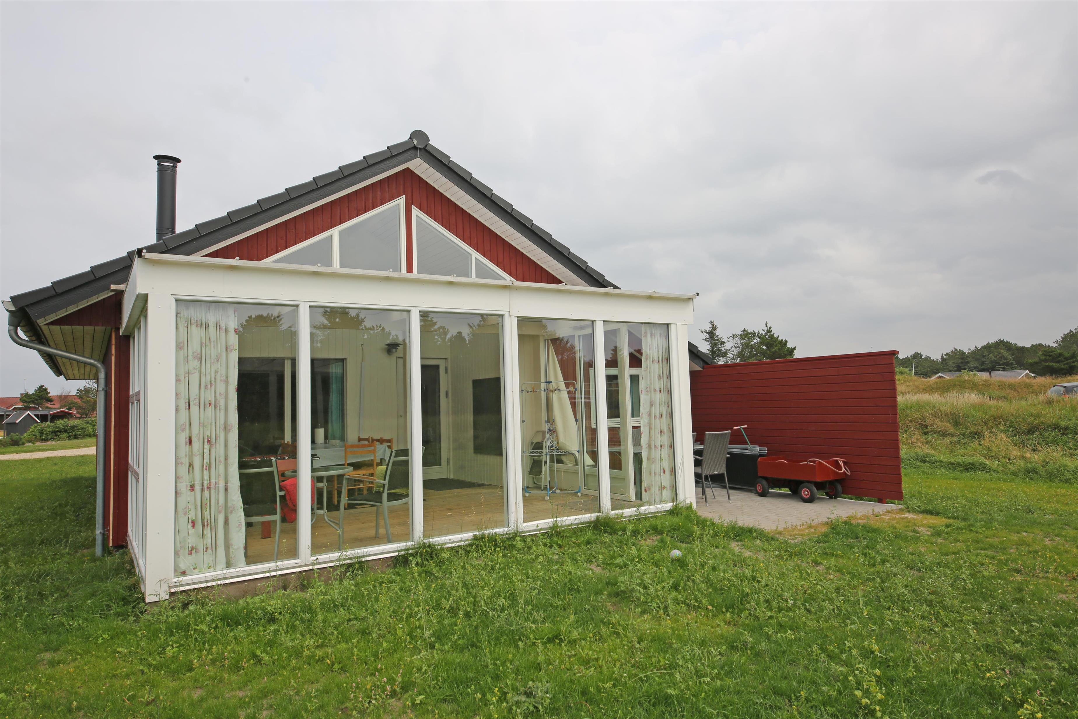 Hyggeligt sommerhus til 4 personer, ca. 1.000 meter fra stranden. Stor rummelig entre. Åben stue med brændeovn, fjernsyn med Stofa sommerhuspakken og trådløs internet, udgang til udestue. Nyt åbent køkken med opvaskemaskine, mikrobølgeovn og køle-/fryseskab. Viktualierum. Badeværelse med bruser/wc. Vaskemaskine. 2 soveværelser DS + 2S. 1 soveværelse med 1 dobbeltseng og 1 soveværelse med 2 enkeltsenge. To terrasser samt overdækket indgangsparti med mulighed for henstilling af cykler. Sandkasse og gynger. Rygning er ikke tilladt. Byggeår 1990, renoveret 2015. Elbiler kan oplades ved huset.