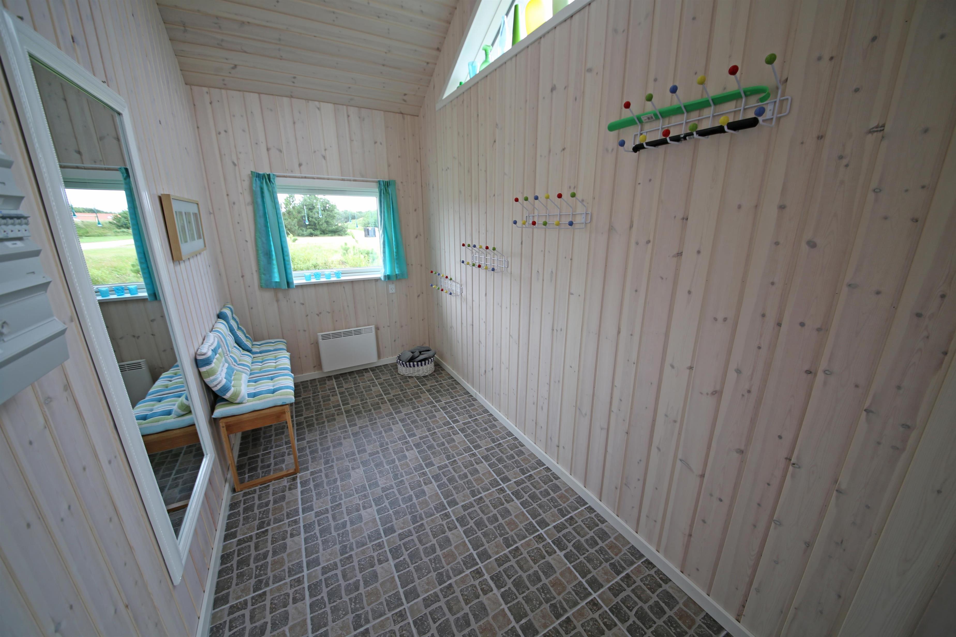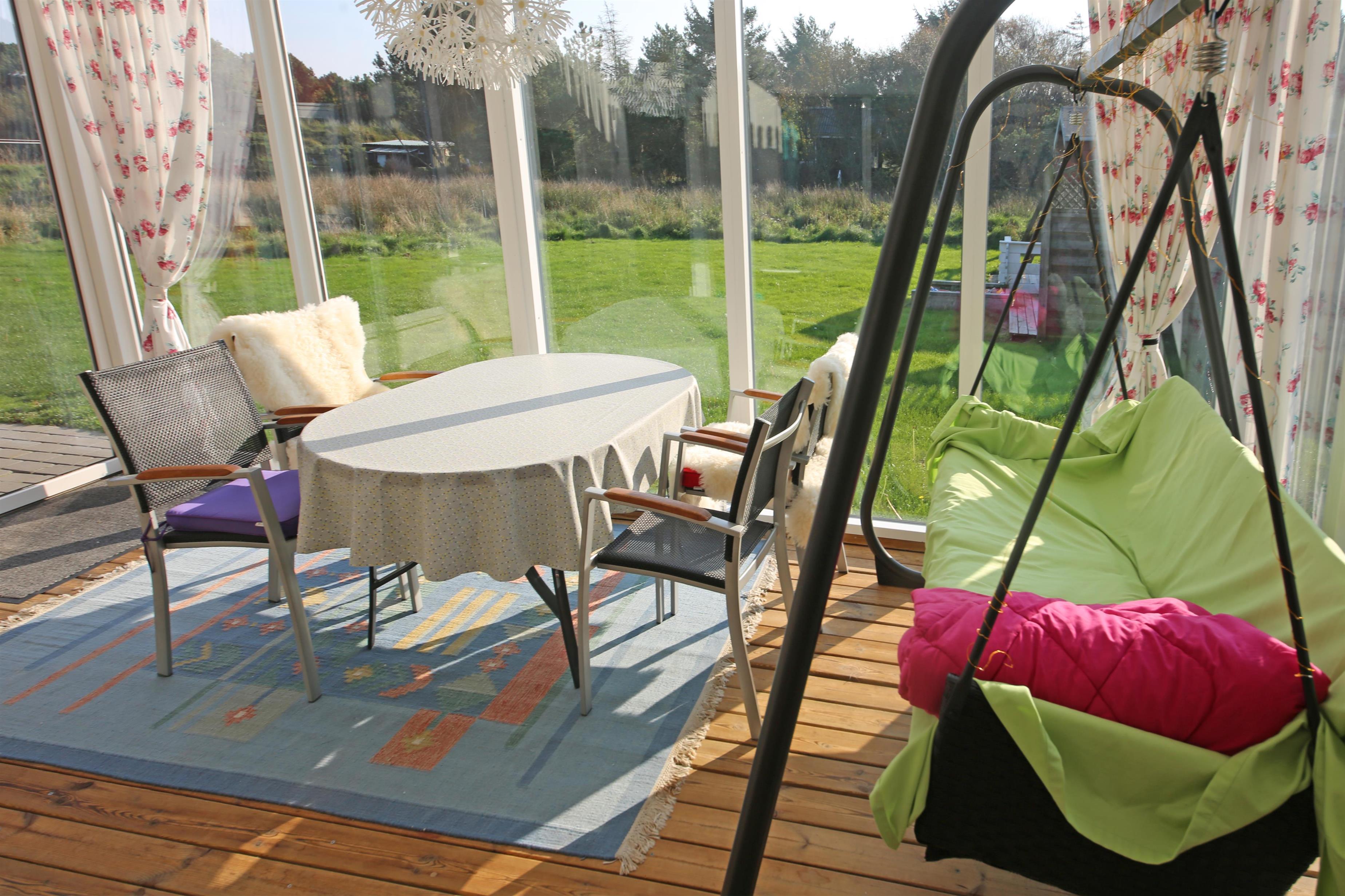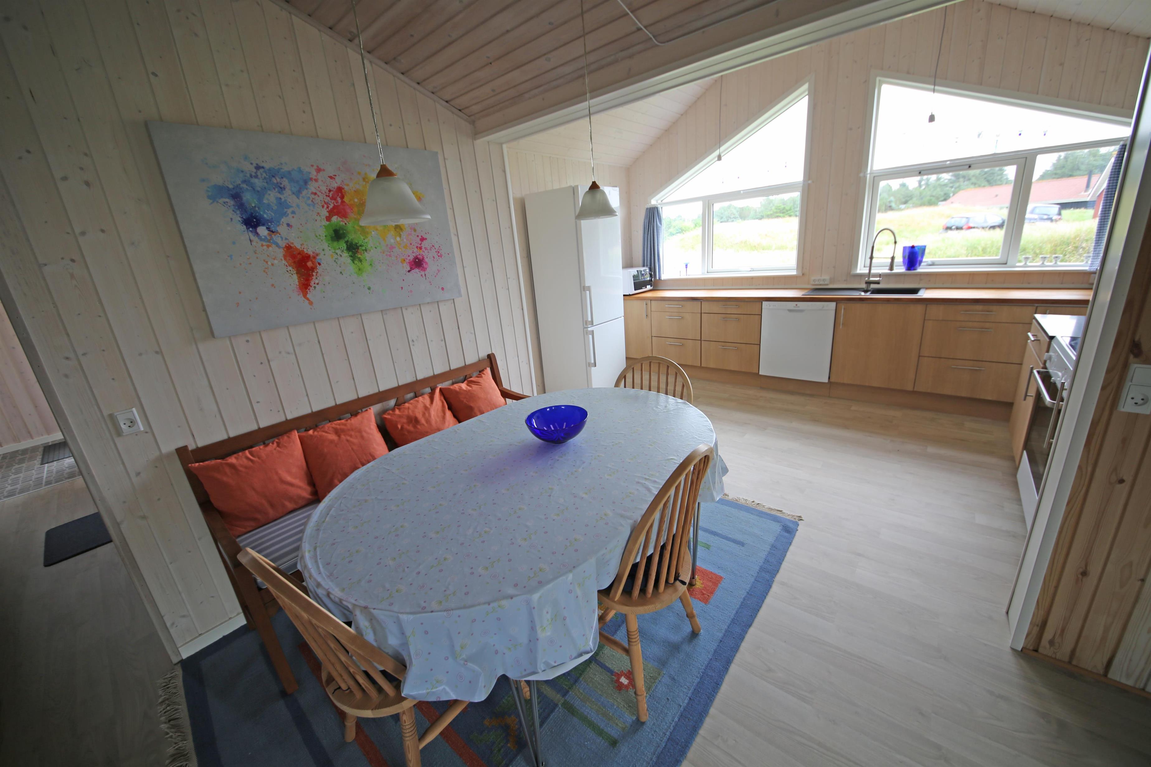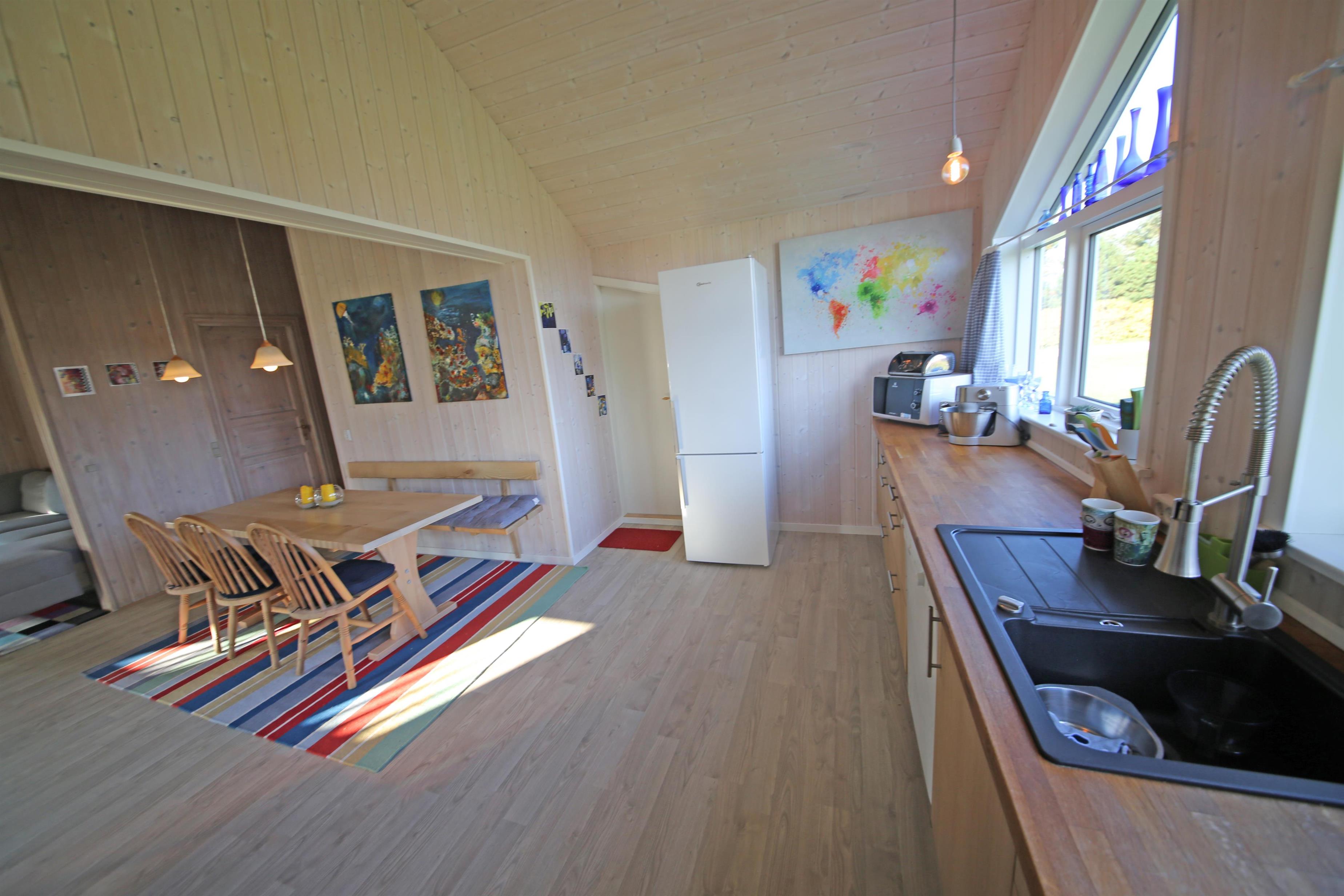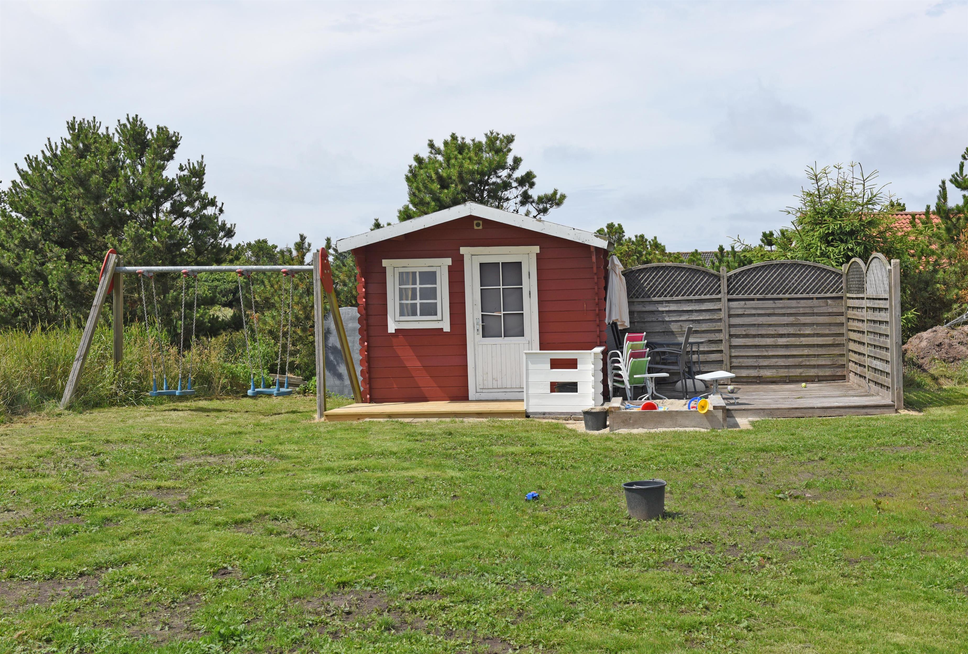 Hyggeligt sommerhus til 4 personer, ca. 1.000 meter fra stranden. Stor rummelig entre. Åben stue med brændeovn, fjernsyn med Stofa sommerhuspakken og trådløs internet, udgang til udestue. Nyt åbent køkken med opvaskemaskine, mikrobølgeovn og køle-/fryseskab. Viktualierum. Badeværelse med bruser/wc. Vaskemaskine. 2 soveværelser DS + 2S. 1 soveværelse med 1 dobbeltseng og 1 soveværelse med 2 enkeltsenge. To terrasser samt overdækket indgangsparti med mulighed for henstilling af cykler. Sandkasse og gynger. Rygning er ikke tilladt. Byggeår 1990, renoveret 2015. Elbiler kan oplades ved huset.