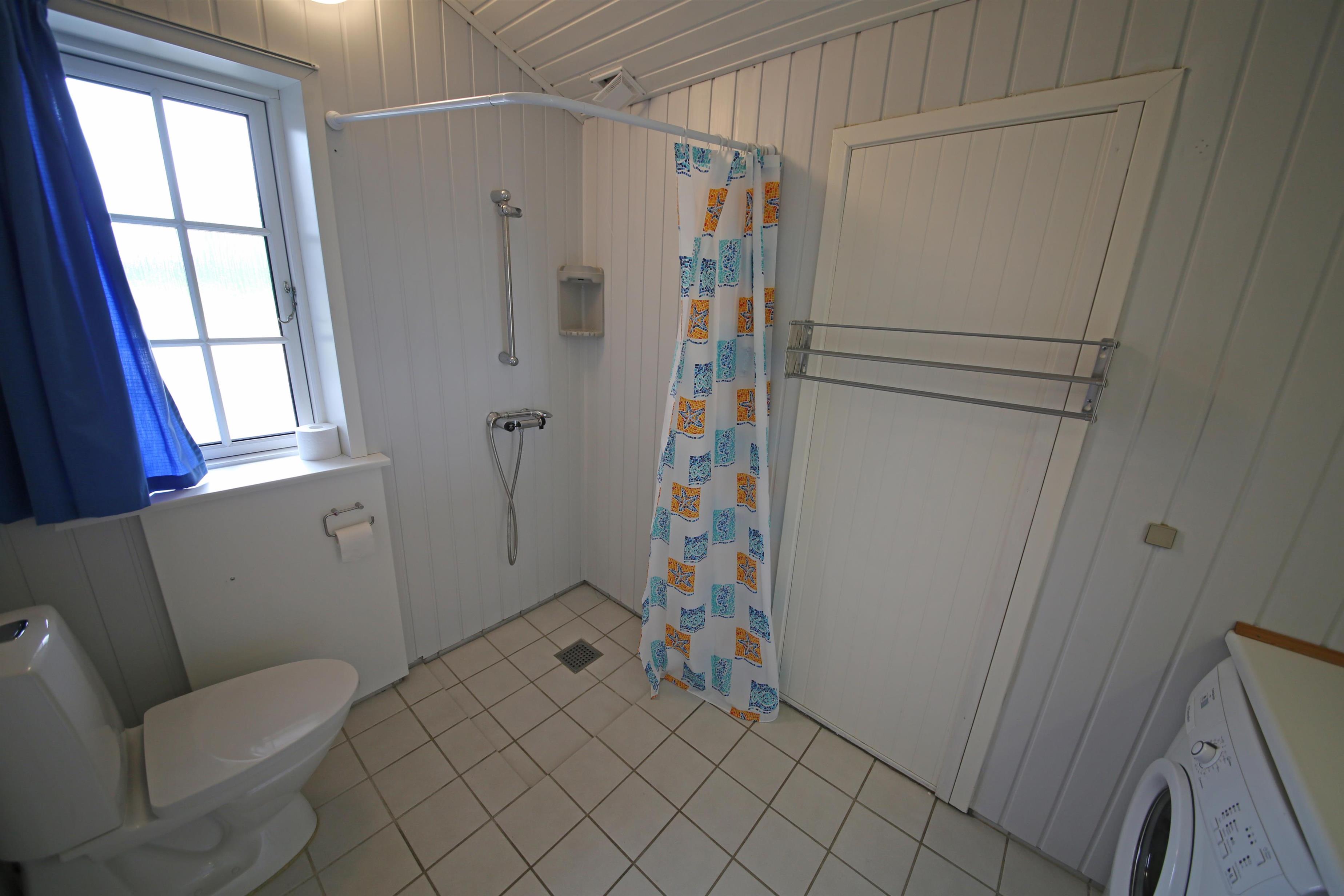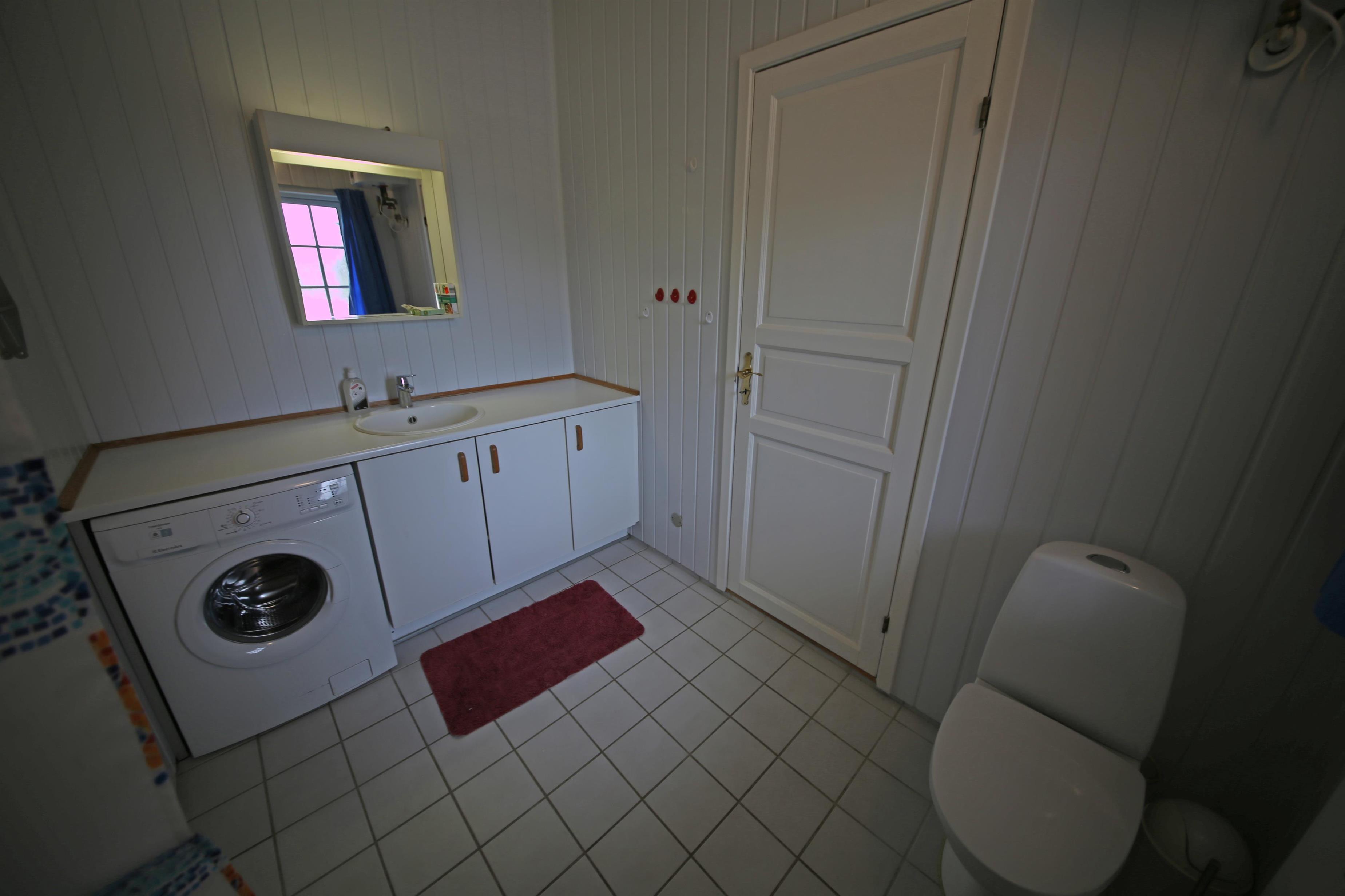 Bad med toilet, bruser og vask