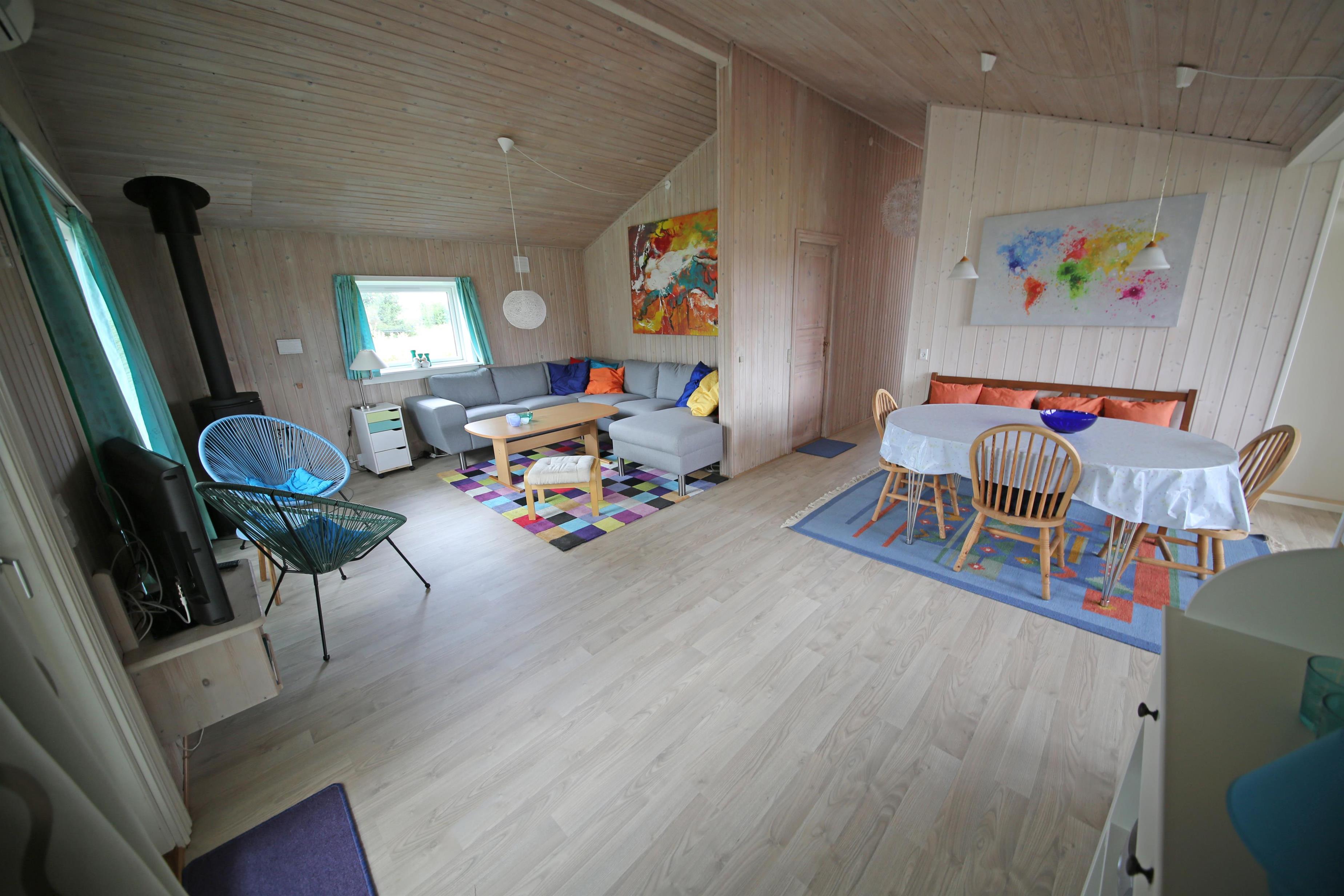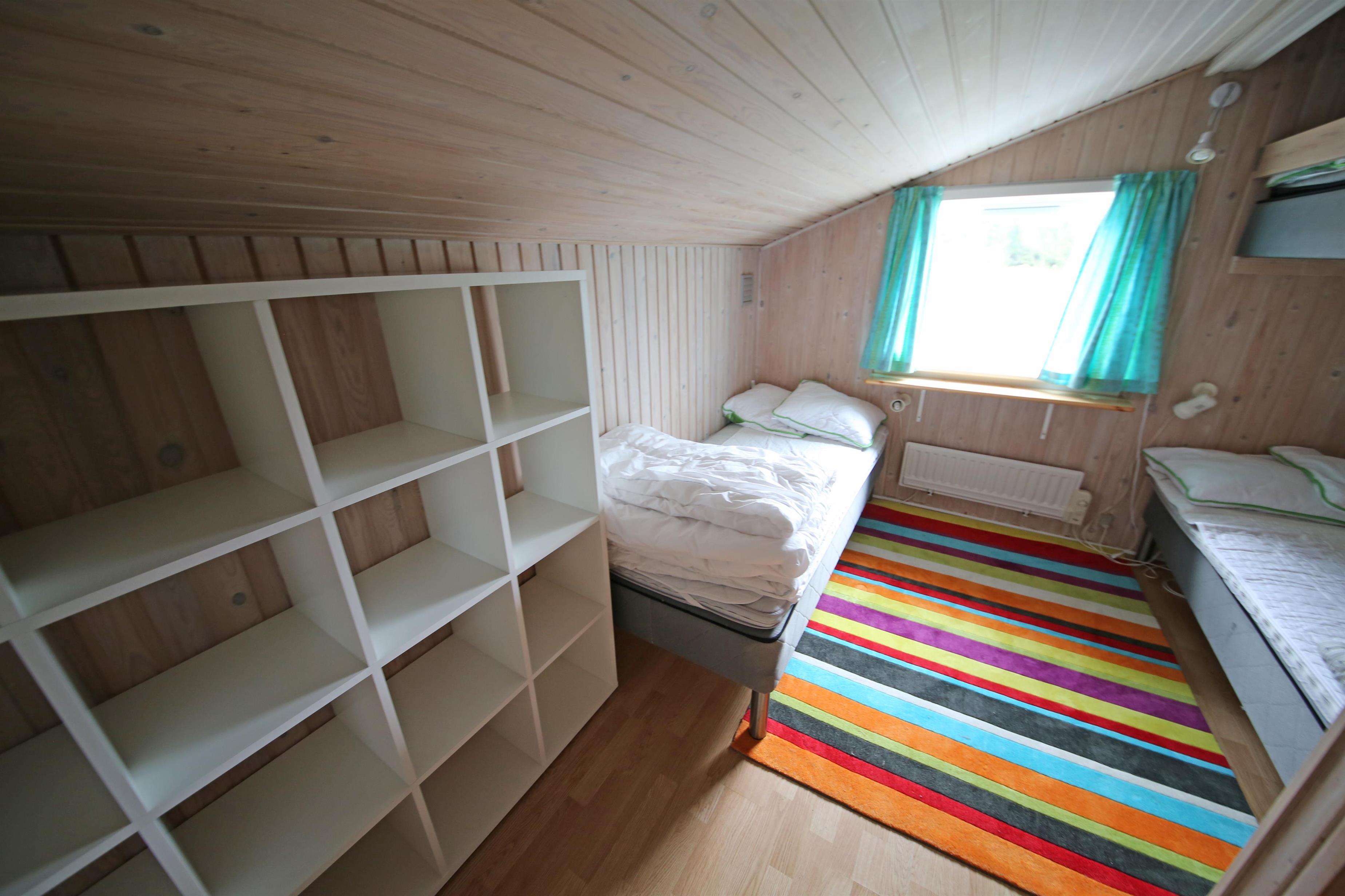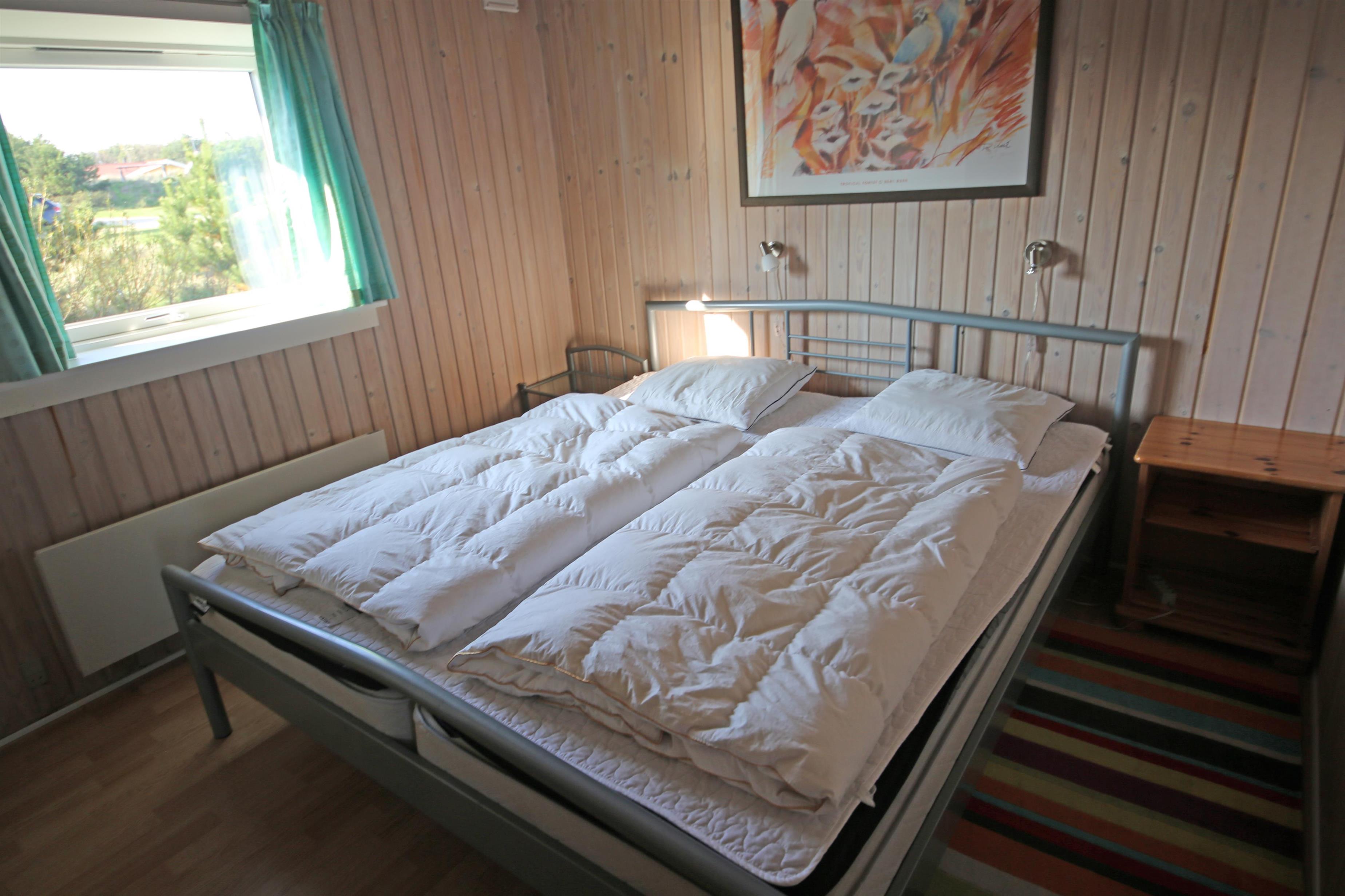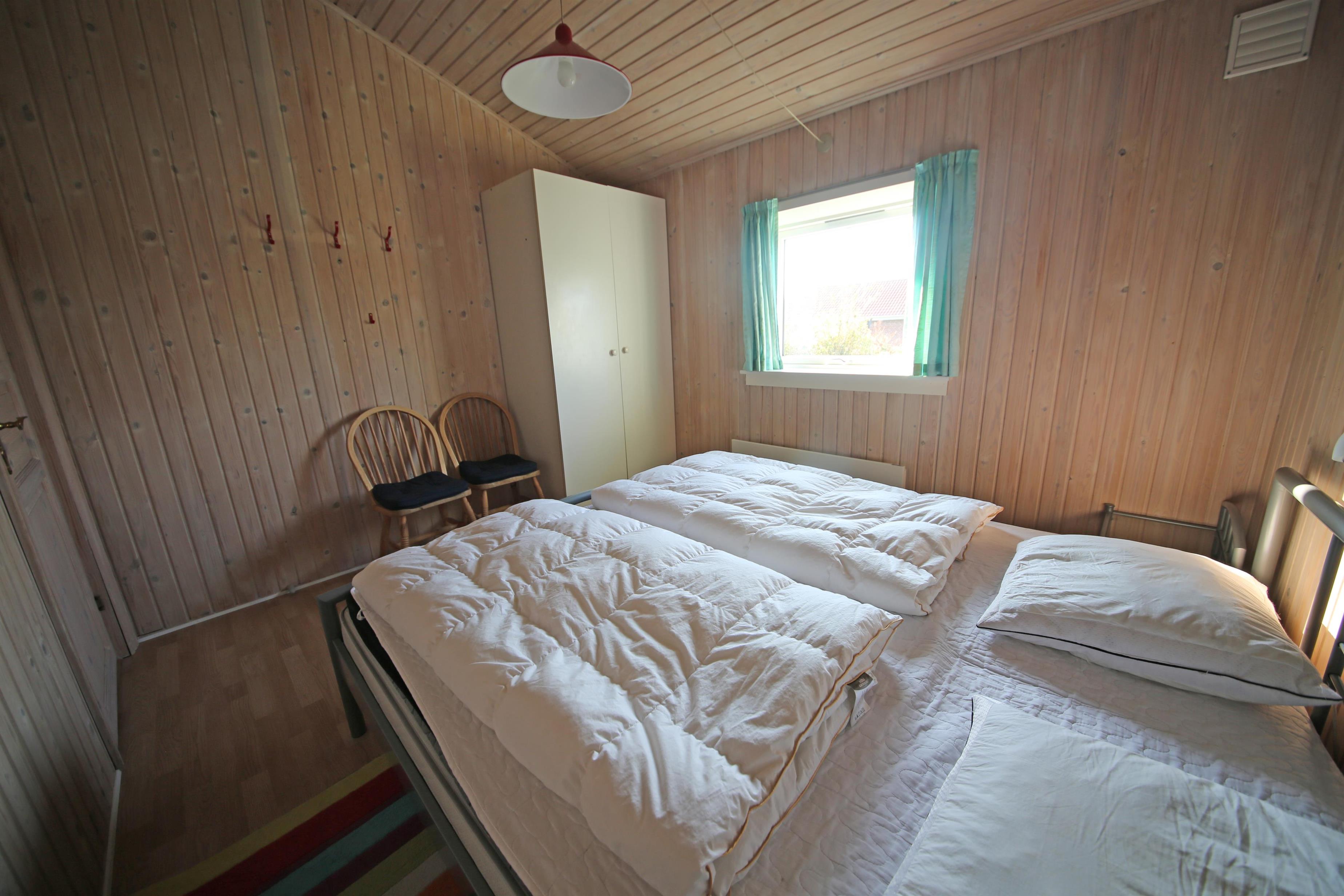 2 soveværelser. 1 med dobbeltseng 180x200 cm. 1 med 2 enkeltsenge (á 90x200 cm)