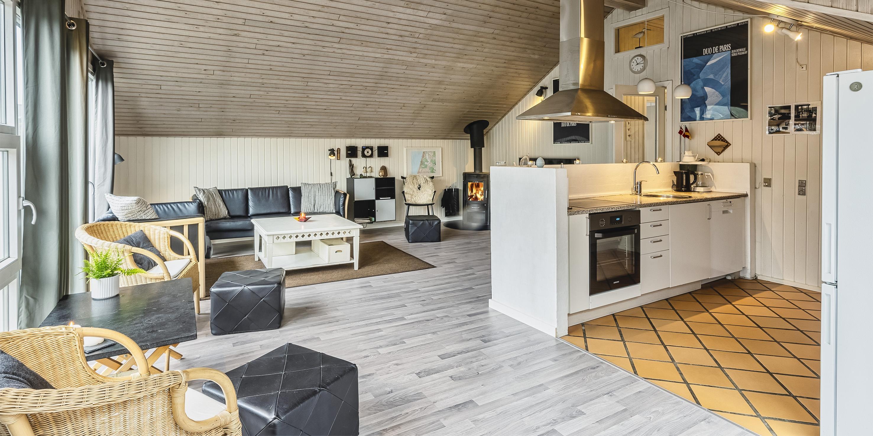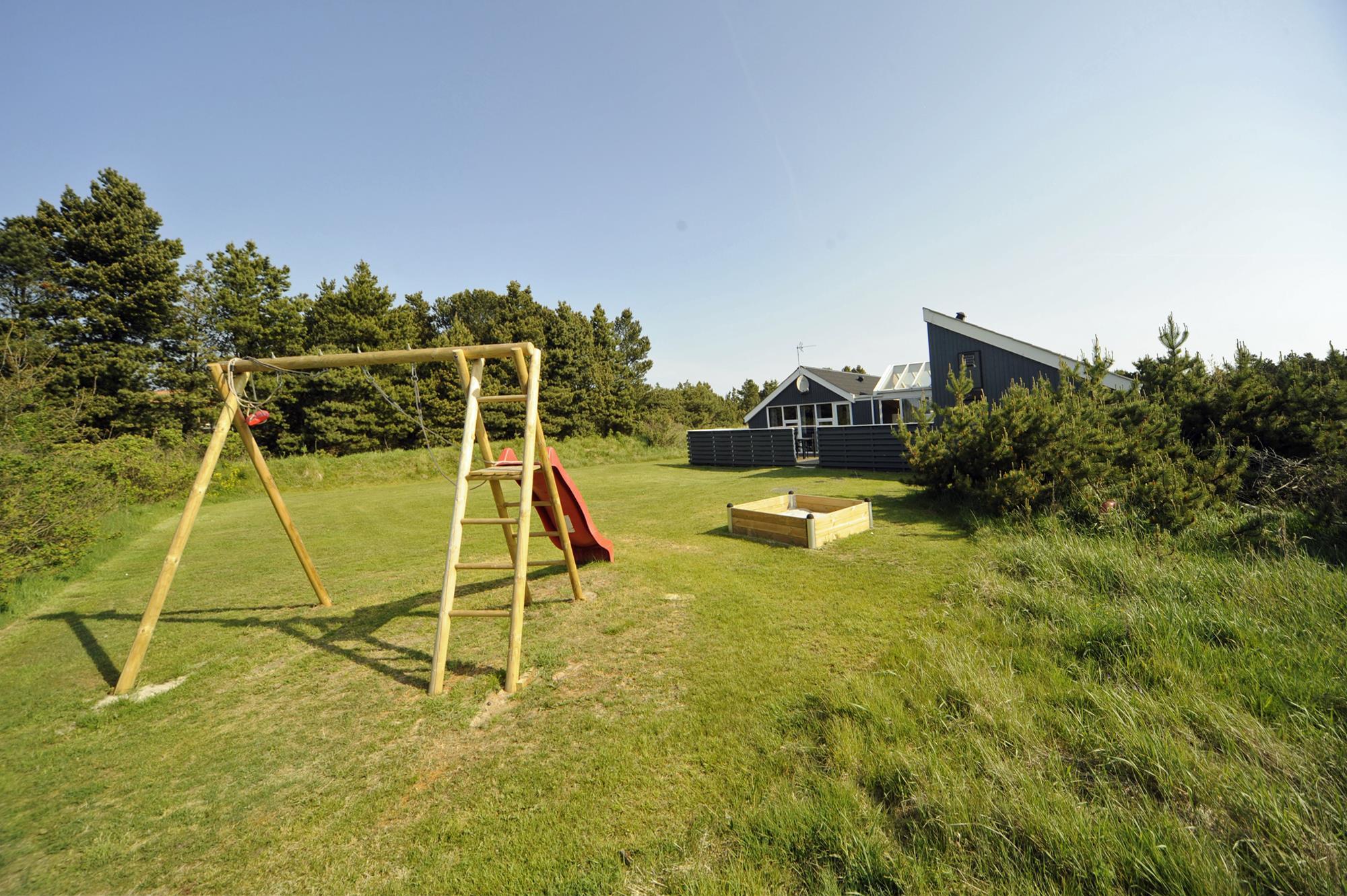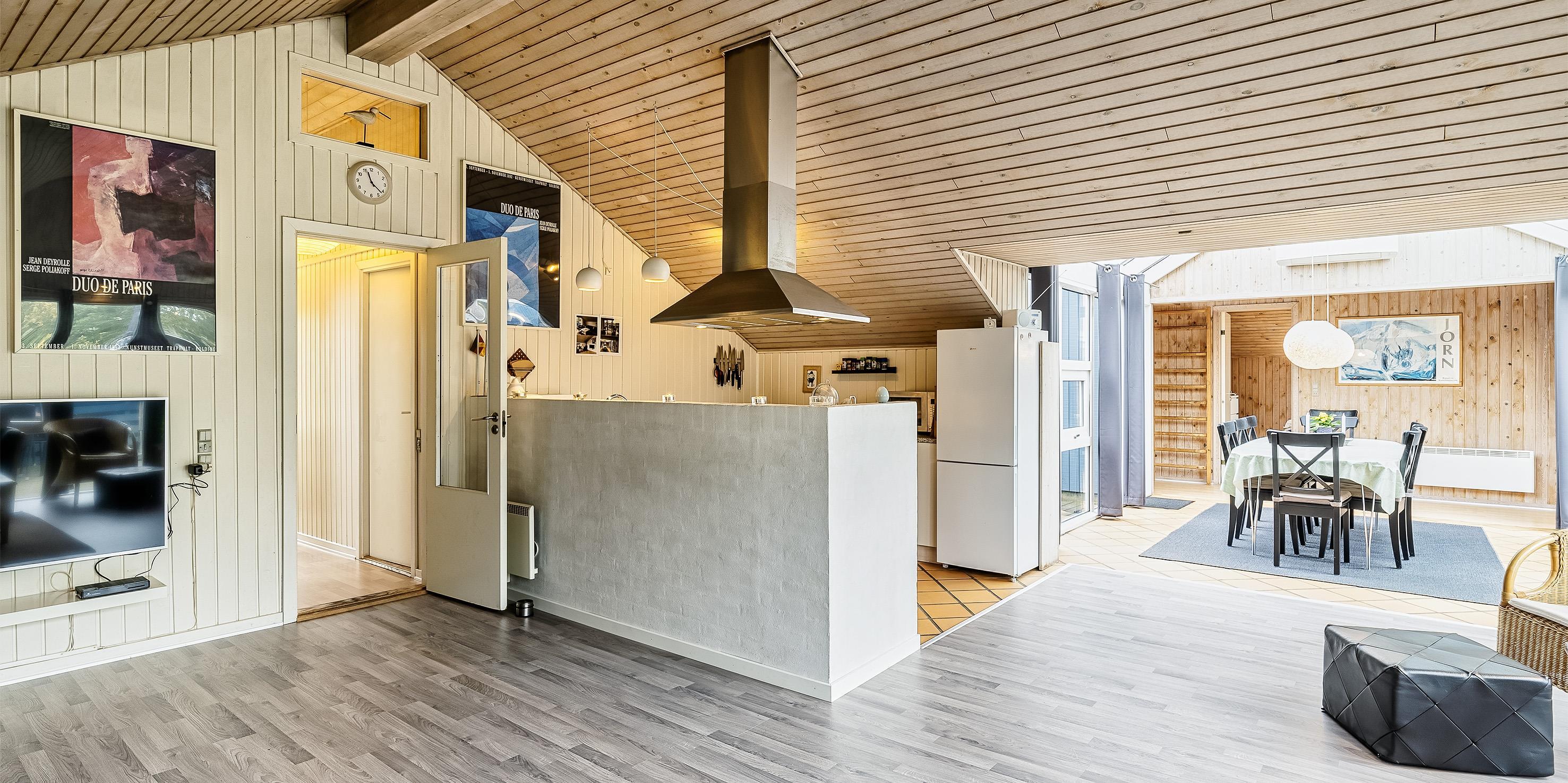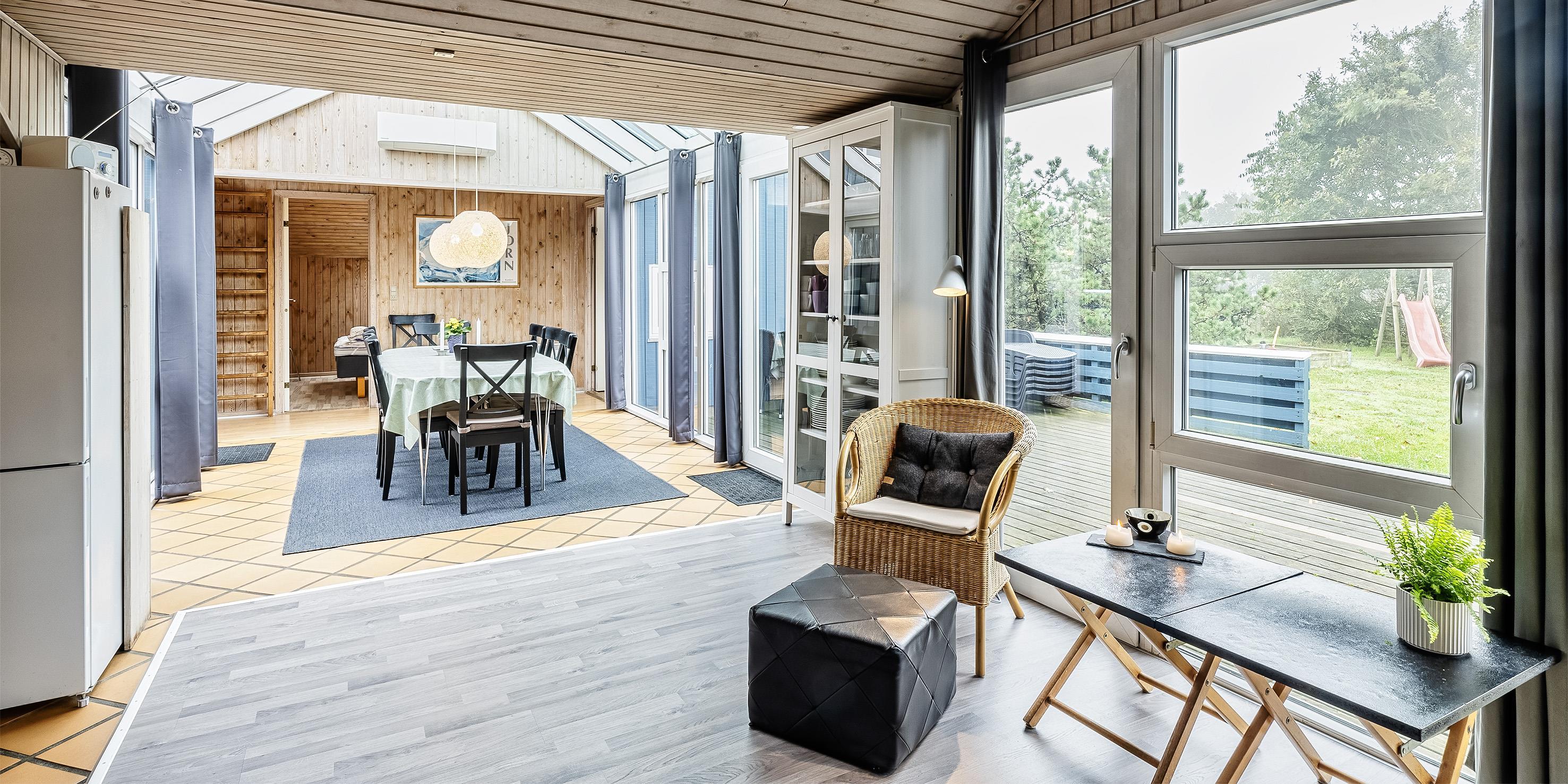 Smagfuldt og velindrettet sommerhus til 9 personer, ca. 1.200 meter fra stranden. Stue med brændeovn, fjernsyn med DR-programmerne og parabol. Åbent køkken med opvaskemaskine, mikroovn og lille fryser. 5 soveværelser: DS + DS + DS + 2S + S. 2 badeværelser med bruser/wc, heraf det ene med standvandsspa og sauna. Vaskemaskine og tørretumbler. Chromecast. Trådløs Internetadgang. Delvis lukket terrasse, gynge og sandkasse. Byggeår 1974, renoveret 2004.